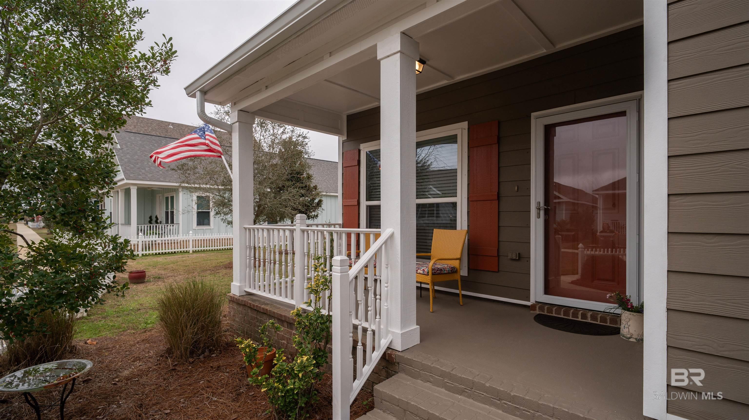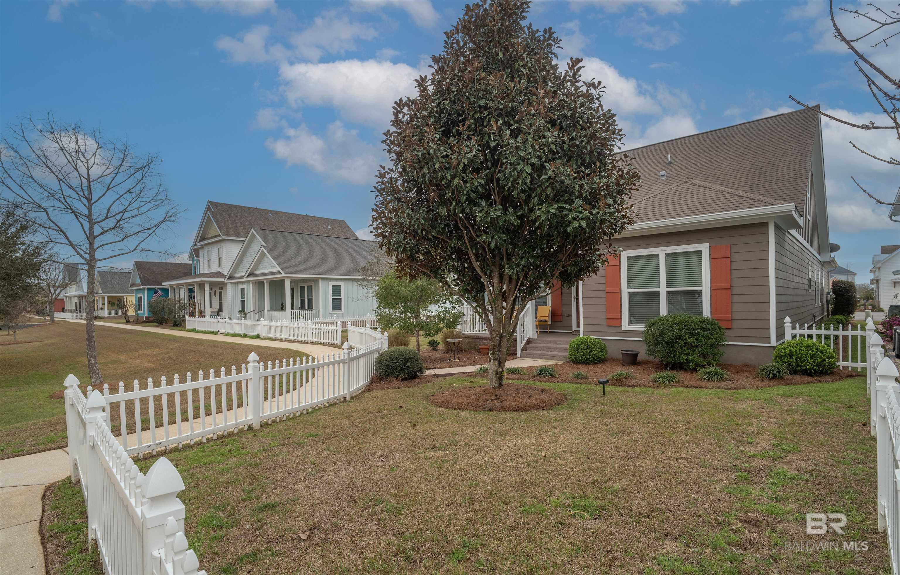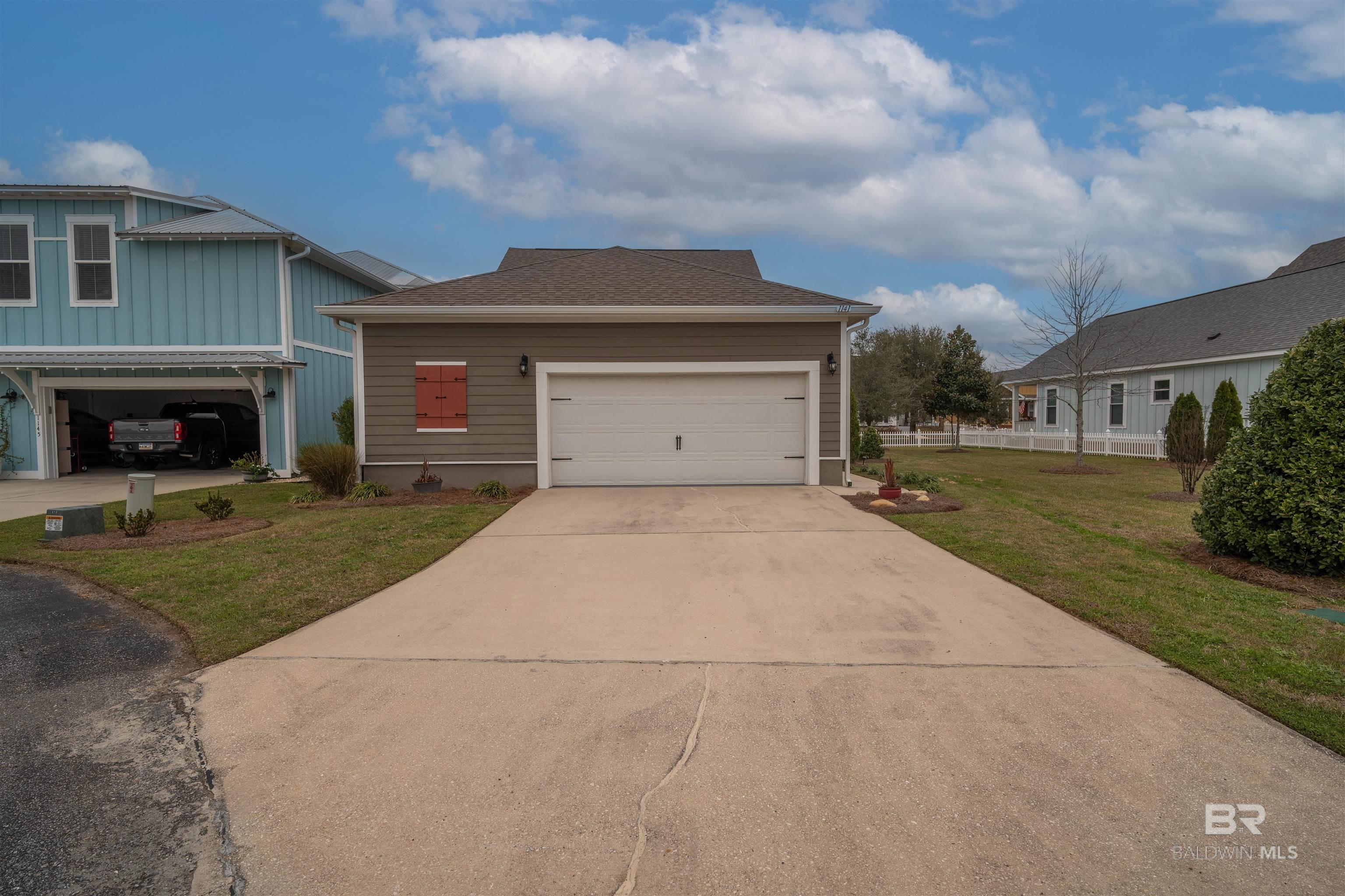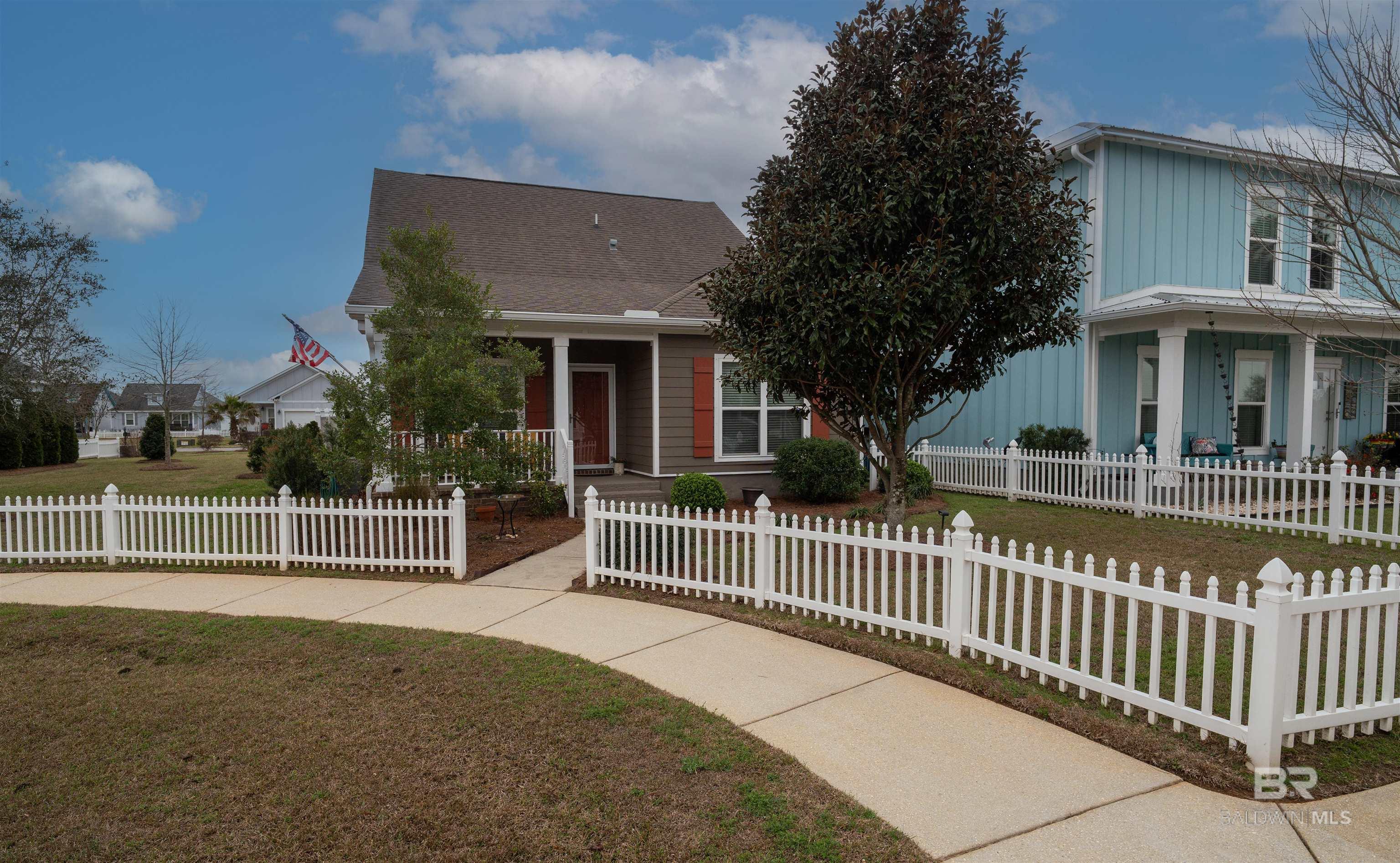 Welcome home to this adorable GOLD FORTIFIED cottage on a spacious double lot in the gated community of Cottages on the Greene. Relax on the front or side porch while taking in the charm of the manicured yard and mature landscaping. Step inside to discover open-concept living, dining, and kitchen areas designed for easy, comfortable living. The primary suite with ensuite and a guest bedroom with a full bath are conveniently located on the main level, while two additional bedrooms and a full bath upstairs provide space and privacy for everyone. Recent updates include 2 HVAC units (2022) and Irrigation System (2025). You’ll love the community amenities, including a lake, pool, clubhouse, and exercise room. Conveniently located close to shopping and dining, and less than 30 minutes from the sugar-white beaches of Gulf Shores, Alabama, this cottage is the perfect place to call HOME! Buyer to verify all information during due diligence.