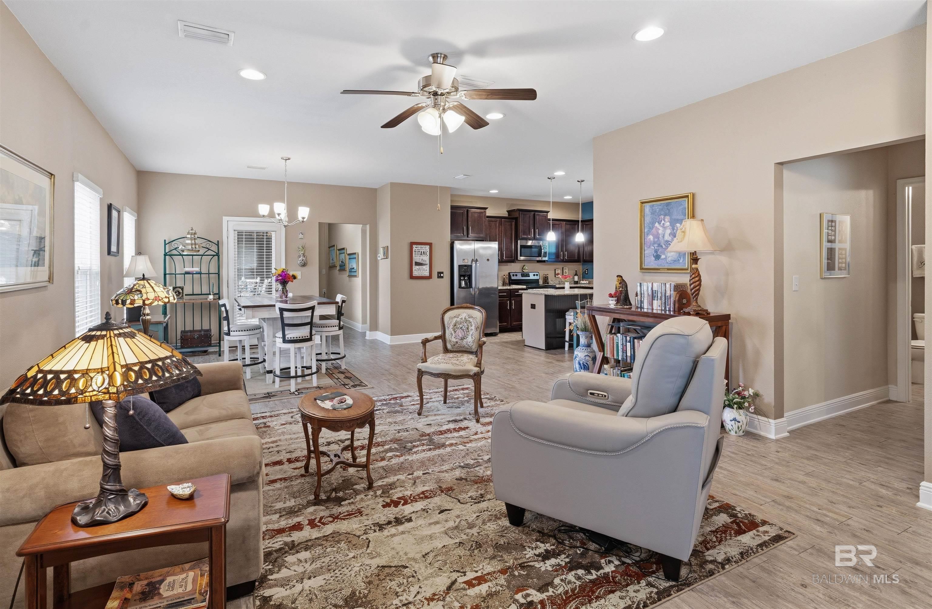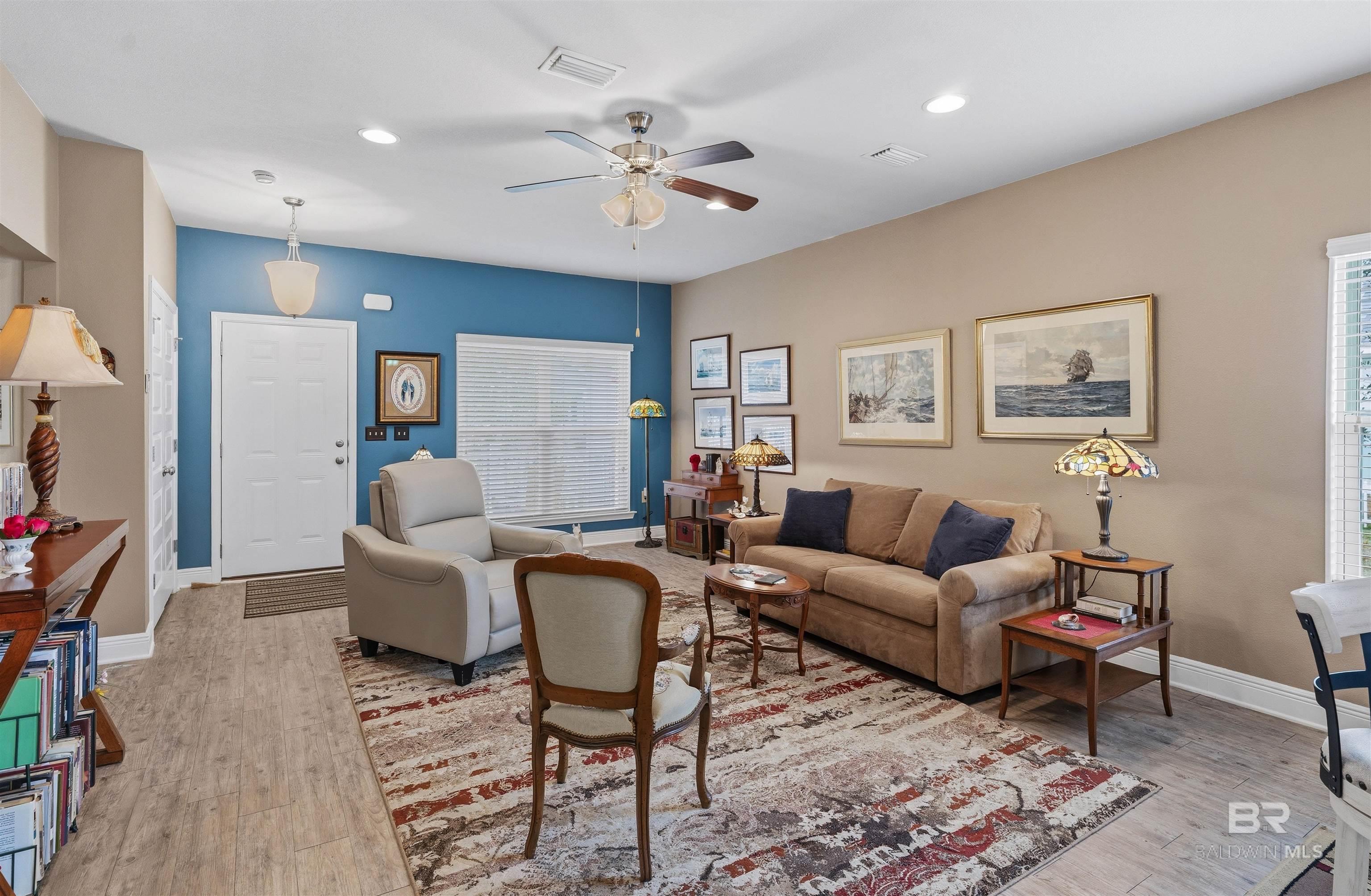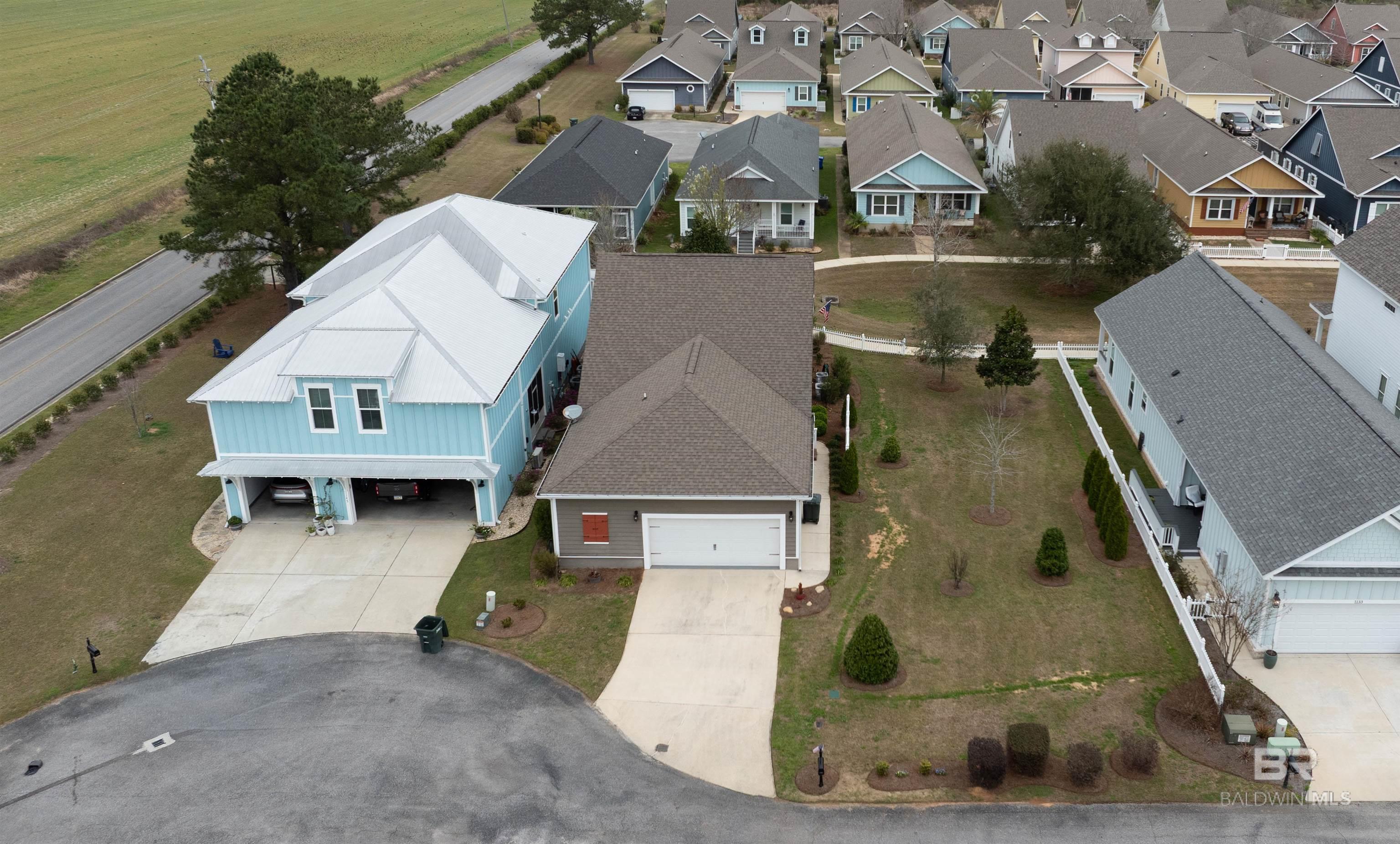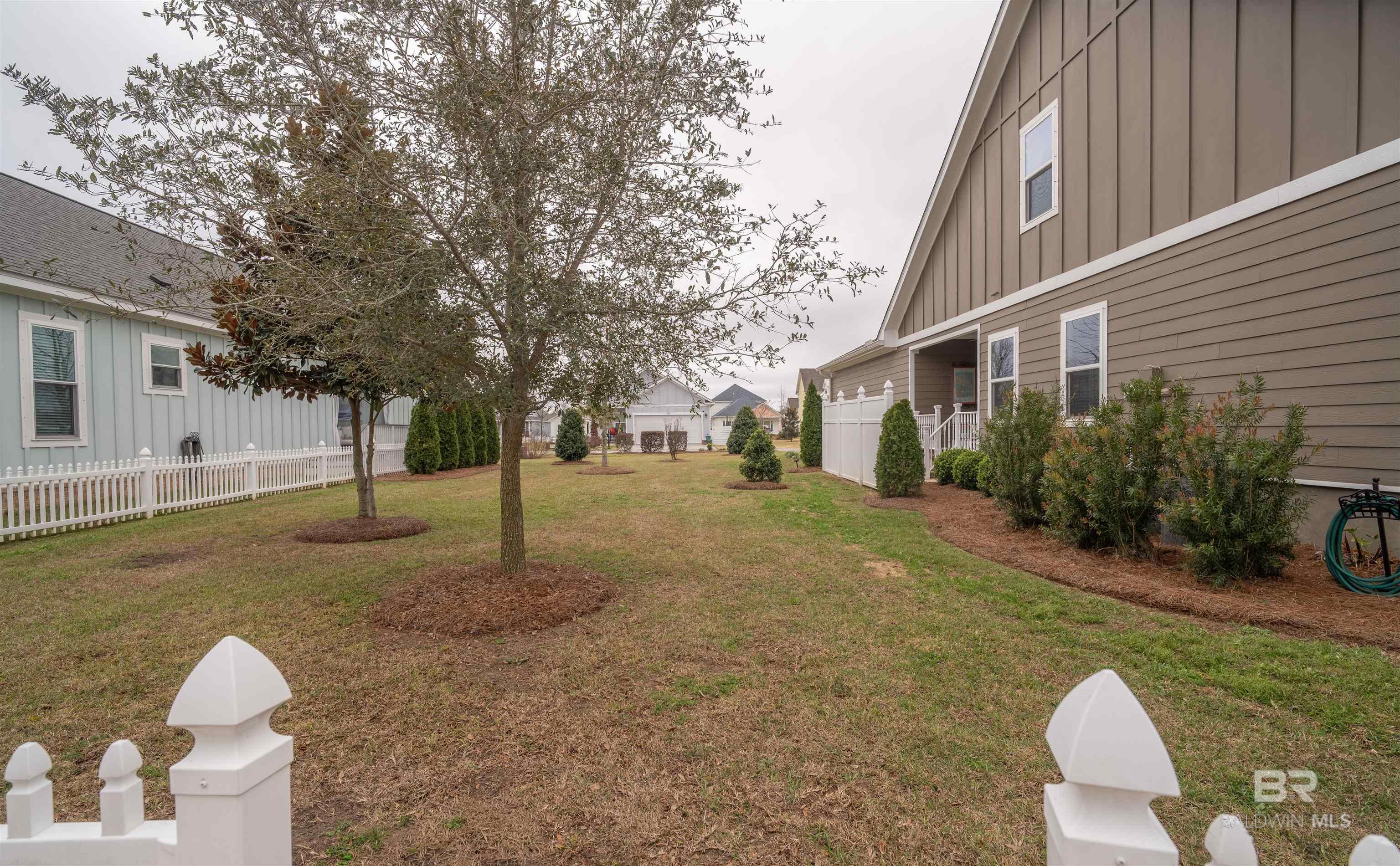 Welcome home to this adorable GOLD FORTIFIED cottage on a spacious double lot in the gated community of Cottages on the Greene. Relax on the front or side porch while taking in the charm of the manicured yard and mature landscaping. Step inside to discover open-concept living, dining, and kitchen areas designed for easy, comfortable living. The primary suite with ensuite and a guest bedroom with a full bath are conveniently located on the main level, while two additional bedrooms and a full bath upstairs provide space and privacy for everyone. Recent updates include 2 HVAC units (2022) and Irrigation System (2025). You’ll love the community amenities, including a lake, pool, clubhouse, and exercise room. Conveniently located close to shopping and dining, and less than 30 minutes from the sugar-white beaches of Gulf Shores, Alabama, this cottage is the perfect place to call HOME! Buyer to verify all information during due diligence.