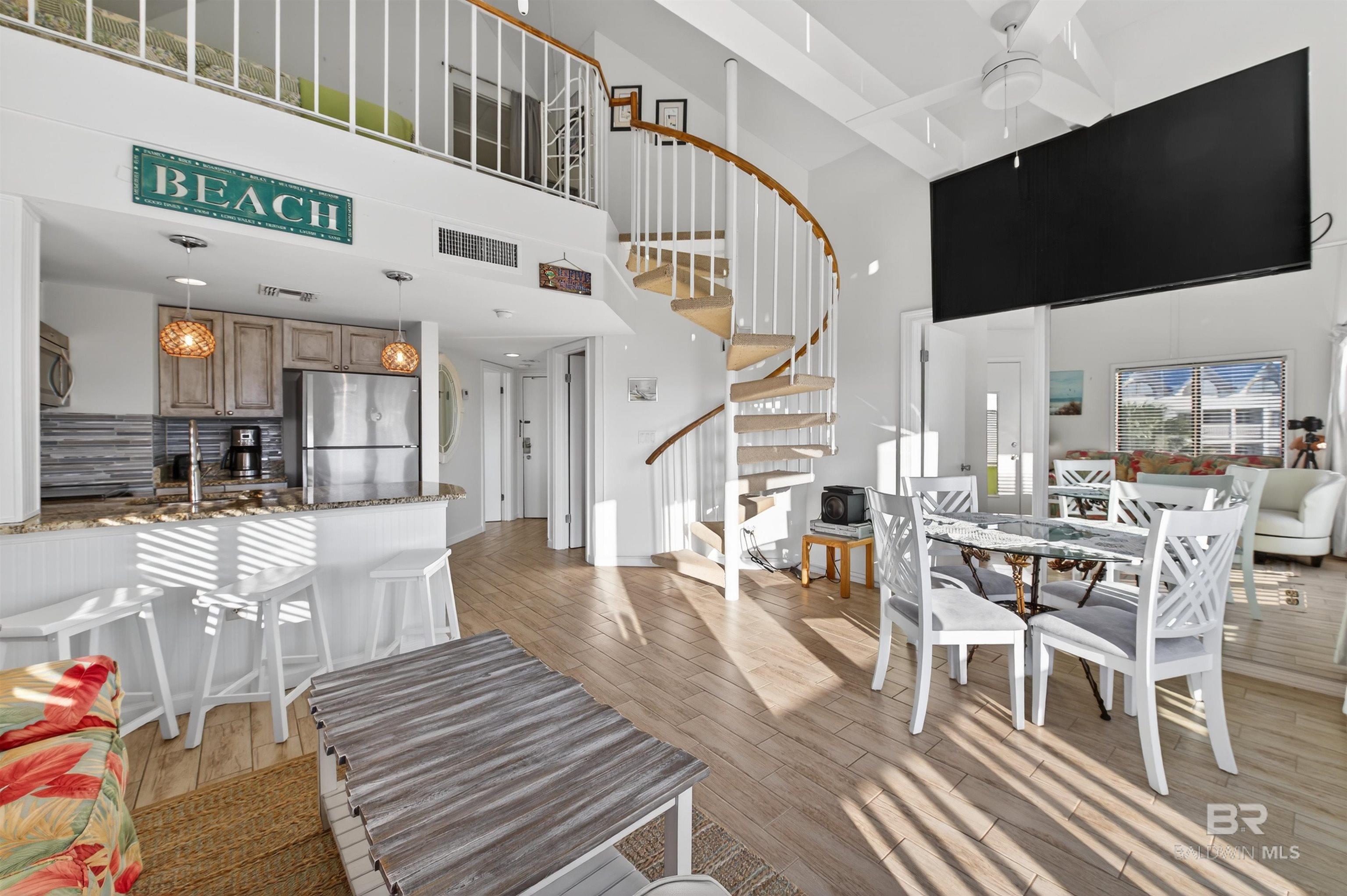 Discover easy coastal living in this beautifully maintained 2 bedroom, 2 bath loft unit at the Resort Conference Center in Gulf Shores Plantation on scenic Fort Morgan. Perfectly positioned to capture views of the pools, courtyard, and glimpses of the Gulf, this light-filled condo offers the ideal blend of personal enjoyment and strong investment potential.Step inside to an open-concept living, dining, and kitchen area designed for comfort and functionality. Updated with low-maintenance LVP flooring, fresh finishes, and modern appliances, the space is turnkey and rental-ready. The loft provides additional sleeping space, making this layout ideal for maximizing occupancy and accommodating family and guests. Enjoy morning coffee on your private balcony as the sun rises over the Gulf, and unwind in the evenings with coastal breezes and colorful sunsets.Located just steps from the boardwalk leading to Fort Morgan’s uncrowded white-sand beaches, this unit offers true resort-style living. Owners and guests enjoy access to multiple outdoor pools, an indoor pool, hot tubs, sauna, fitness center, tennis and basketball courts, sand volleyball, and grilling areas. On-site dining options and coffee shops add convenience, while Kiva Dunes Golf Course next door provides one of Alabama’s premier coastal golf experiences.Whether you’re seeking an income-producing property, a second home, or a combination of both, this loft-style 2/2 delivers versatility, location, and value in one of the Gulf Coast’s most peaceful beachfront settings. Fully furnished and ready to enjoy or place into your rental program immediately. Buyer to verify all information during due diligence.