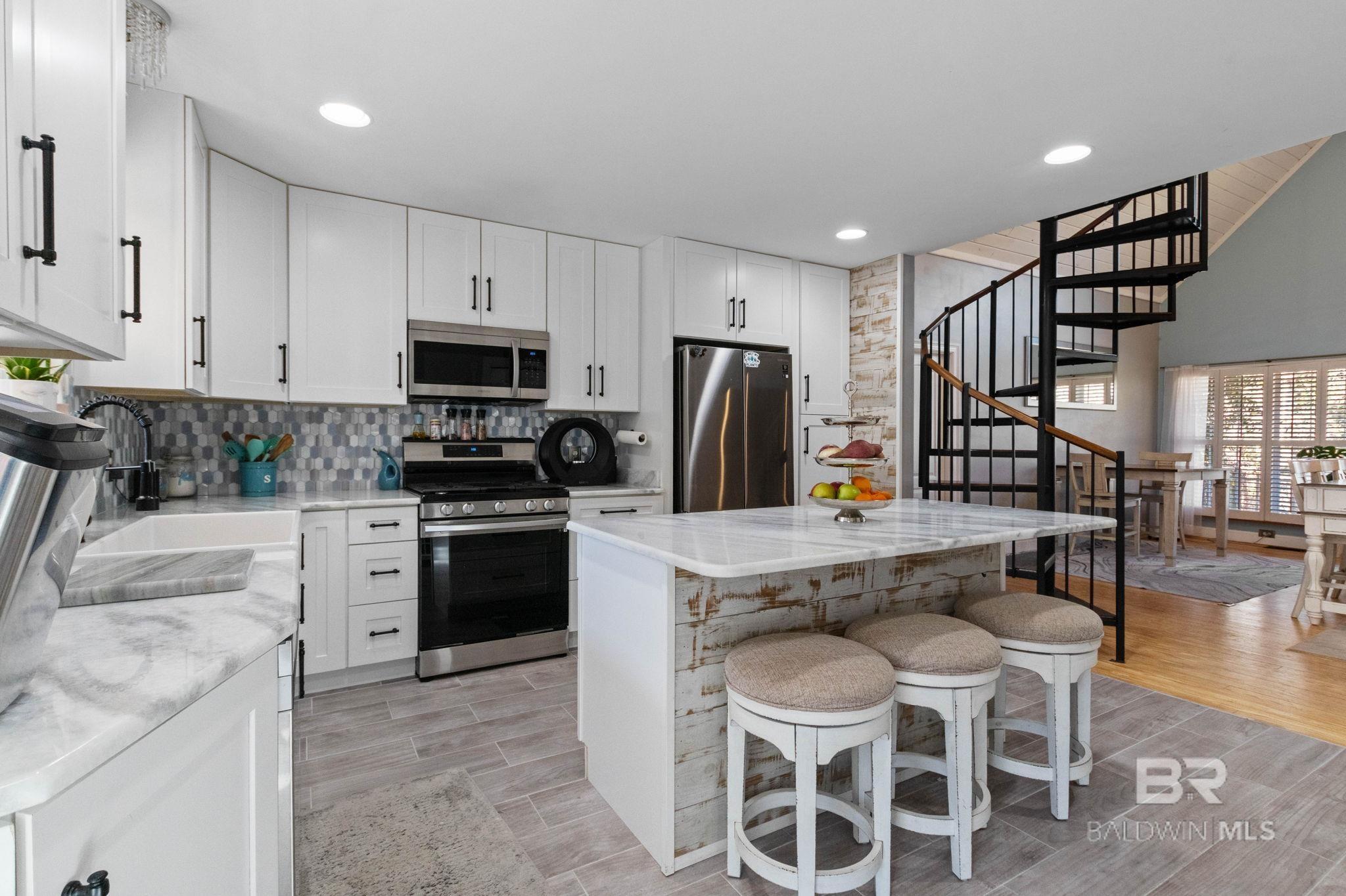 Experience the perfect blend of rustic charm and modern luxury in this stunning, fully renovated retreat situated on nearly two private acres along the serene banks of Sandy Creek. The heart of the home features an open floor plan highlighted by soaring tongue-and-groove cedar ceilings, rich wood floors, and a signature spiral staircase leading to a versatile loft space. You will love the completely updated kitchen, now featuring premium gas appliances and stylish finishes that seamlessly integrate with the home's natural aesthetic.Designed for comfort and efficiency, the residence boasts a split floor plan for maximum privacy, including a spacious primary suite with its own private deck overlooking the water. The primary bath offers a spa-like experience with a separate shower and soaking tub. Practical upgrades abound, including a durable metal roof and a tankless water heater. Whether you’re enjoying the view from the deck or exploring your expansive creek-front lot, this home offers a rare, turn-key sanctuary in a truly picturesque setting. Adjacent lot FSBO. Tour Today! Buyer to verify all information during due diligence.
