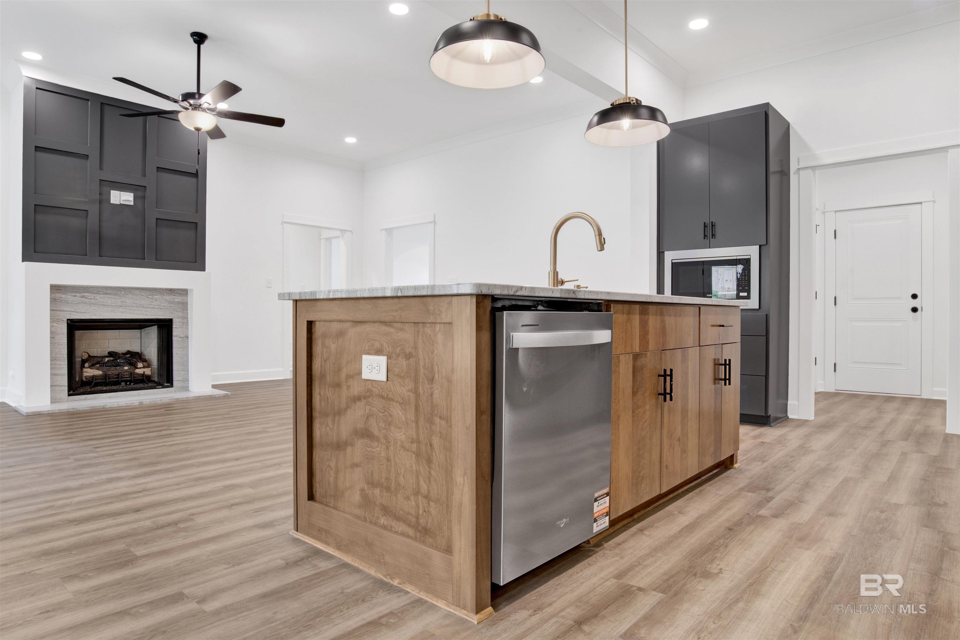 NEW CONSTRUCTION Step through the front door and into a welcoming foyer that sets the tone for the thoughtful design throughout this brand-new Monroe 1 floor plan by Prime Design Homes, located in the desirable Cross Creek Gates community. Built Gold Fortified and energy-efficient. Off the foyer, a dedicated office offers the perfect spot for working from home, studying, or having a quiet place to focus. Underfoot, LVP flooring in an on-trend neutral tone carries you forward into the heart of the home where the living room invites you to relax around a gas fireplace with a granite surround, topped with a striking accent wall that gives the space just the right amount of character. Off to the right side of the living room, two comfortable bedrooms share a bathroom featuring a double sink vanity with granite countertops, giving everyone a little extra elbow room during busy mornings.From the living area, the home opens into a kitchen that's designed to impress. A granite-topped island with an undermount sink and champagne bronze faucet, surrounded by peppercorn-toned cabinetry, a crisp white subway tile backsplash, stainless appliances, and eye-catching lighting that keeps the look current and polished. The dining area steals the show with a dramatic black and gold chandelier. Nearby you'll find a pantry, utility room, and a convenient half bath for guests, all thoughtfully placed just off the kitchen. Tucked privately on its own side of the home, the primary bedroom leads to an oversized custom closet and an ensuite bath that truly stands out, complete with a glass-enclosed tiled shower, freestanding soaking tub, and a double vanity with granite countertops and beautiful fixtures. Step out back and unwind under the spacious covered porch, where a ceiling fan keeps the air moving and custom design details continue overhead. The backyard has been upgraded with new privacy fencing. $5,000 builder incentive with preferred lender. Buyer to verify all information during d