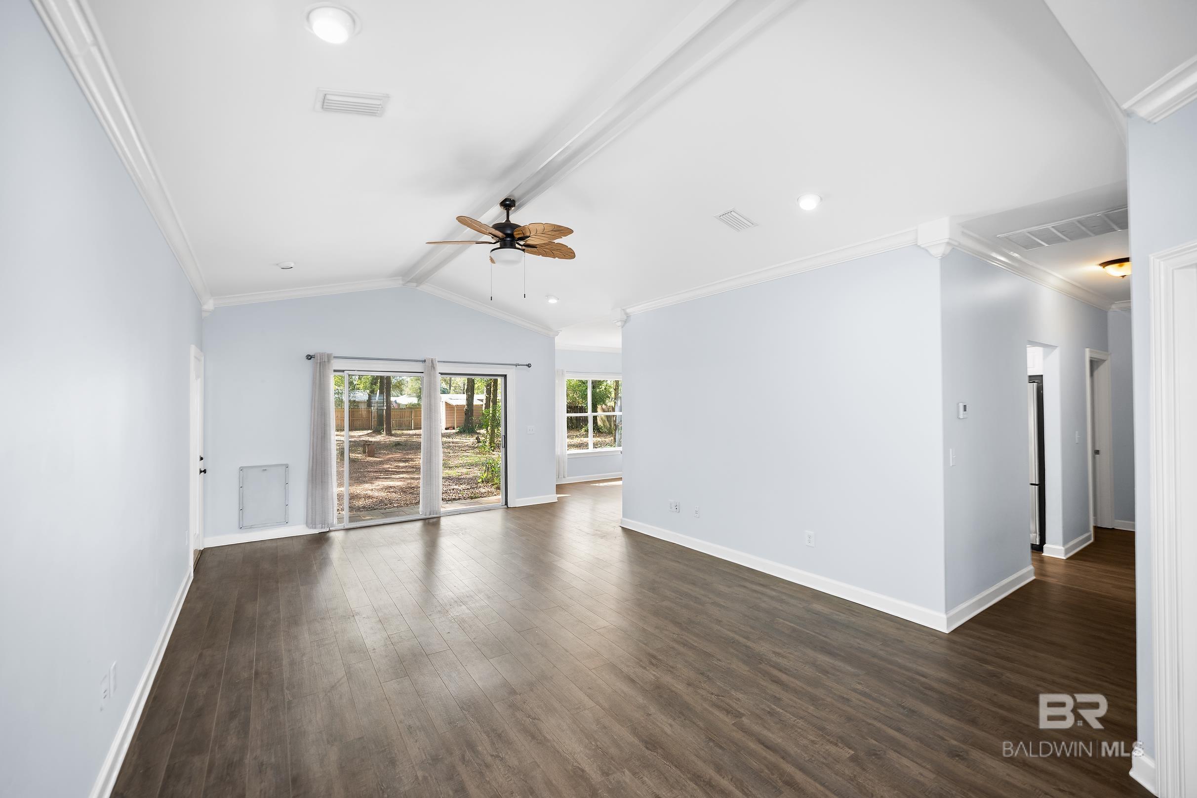 No HOA fees! Enjoy coastal living with convenient water access in this well-maintained 3BR/2BA home located on a cul-de-sac just off County Road 8 in Gulf Shores. Situated directly across from the Bon Secour River and approximately 6.8 miles from the Gulf beaches, the property includes deeded water access—ideal for kayaking, paddleboarding, and fishing nearby. Set on a spacious 0.46-acre fenced lot, the home features a shaded backyard, screened porch with doggie door, gutters, and a large storage shed. Interior features include high ceilings with crown molding, a dedicated office area, and approximately 2,400 square feet under roof. The fortified roof adds durability and potential insurance benefits. Major improvements completed within the last five years include the HVAC system, roof, flooring, fencing, grinder system, and storage shed. Conveniently located near Gulf Shores and Foley amenities, shopping, dining, and outdoor recreation, including the trail systems of Gulf State Park. A new high school is scheduled to open nearby in Fall 2026. Additionally, Gulf Shores residents may be eligible for city beach parking passes. Schedule your showing today to see all this property has to offer. Buyer to verify all information during due diligence.