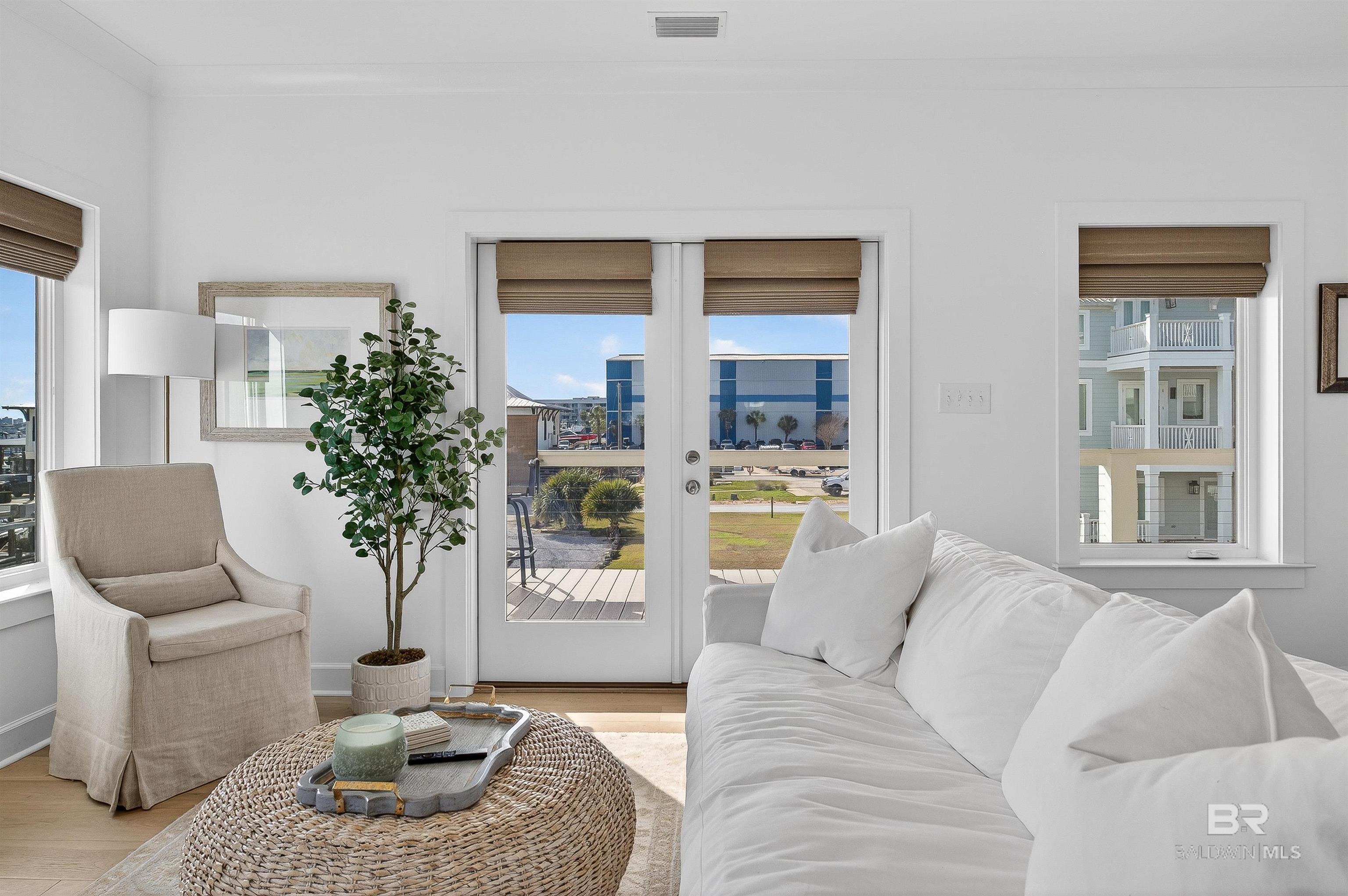 Welcome to this stunning newly built, Gold Fortified, 5-bedroom, 3.5-bath home completed in 2025, located on arguably the best lot in the Courtyard of Orinoco Cove along the popular waterway of Terry Cove. One of the standout features is the deeded BOATSLIP/LIFT (#33) being the closest slip to the home, allowing you to step outside and be at your boat in seconds! This beautifully designed home has breathtaking WATER VIEWS from EVERY ROOM and boasts 4,320 square feet under roof, including 1,080 square feet of outdoor patio and balcony space to enjoy the scenic waterfront setting from all three levels! Inside, the home showcases elevated finishes and thoughtful design, including quartz countertops, stainless steel appliances, and a convenient in-island microwave. The spacious kitchen is ideal for entertaining, complete with a built-in bar and an attached dining table extending from the island, creating multiple gathering spaces for family and guests. The enclosed garage accommodates up to four vehicles and provides ample storage with room for golf carts, fishing gear, & beach equipment. On the main level, you’ll find one of the primary bedrooms with an oversized walk-in shower, along with a guest bedroom featuring two sets of built-in bunks. A convenient half bath is also located on this level. Upstairs features the second primary suite with built-in bunk beds, large garden tub, a walk-in closet, along with two additional guest bedrooms, a full bathroom, and the laundry room which also has water views! Both levels offer spacious balconies with sweeping waterfront views, accessible from the living area and select bedrooms. Orinoco Cove is a low-density waterfront community offering amenities including a clubhouse with restrooms, outdoor pool, & fishing pier. Short-term/Vacation rentals are allowed with a minimum of 7 days. The location is ideal for boaters & fishermen! Local restaurants, the dog park, community recreational facilities are just moments away! Buyer to v