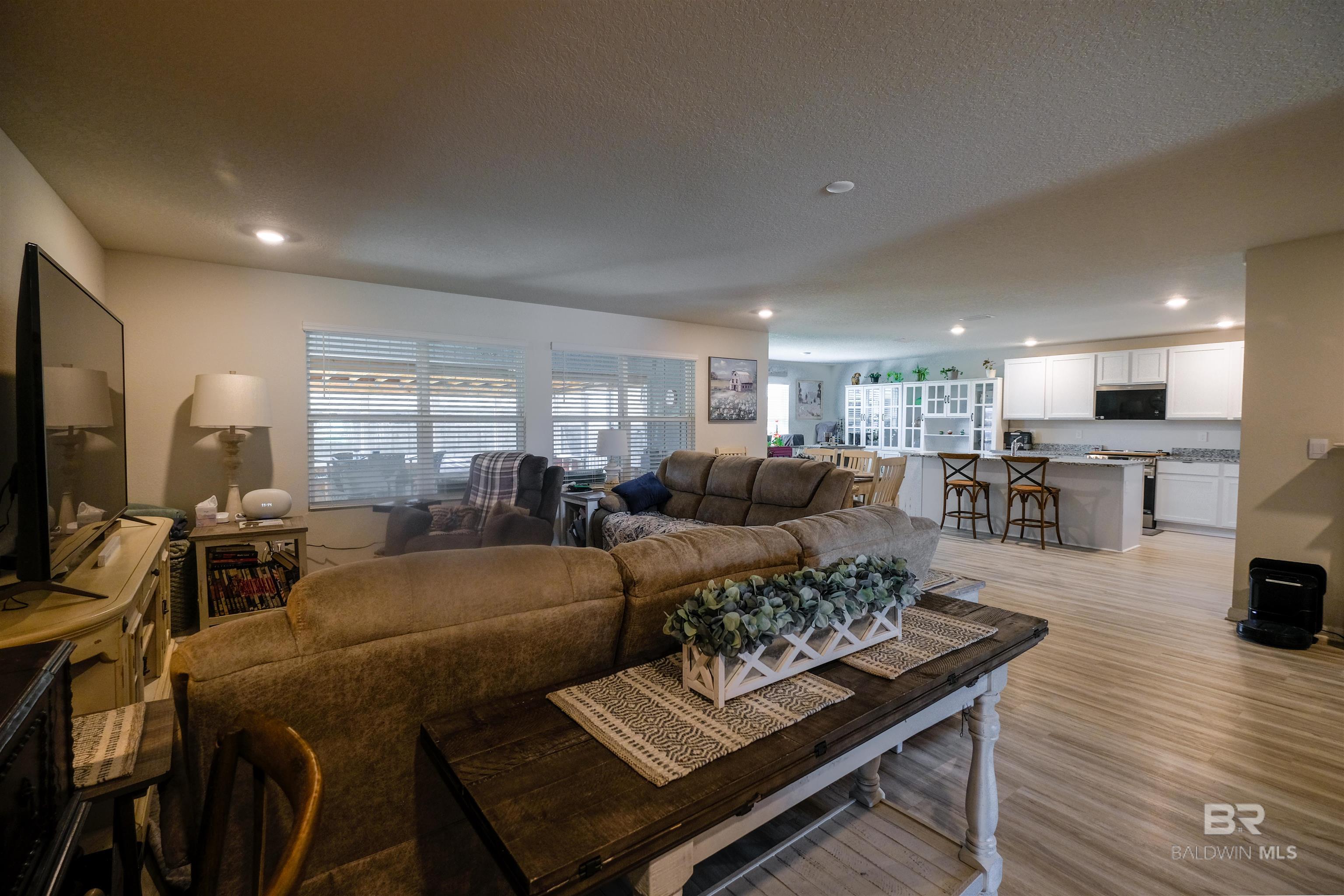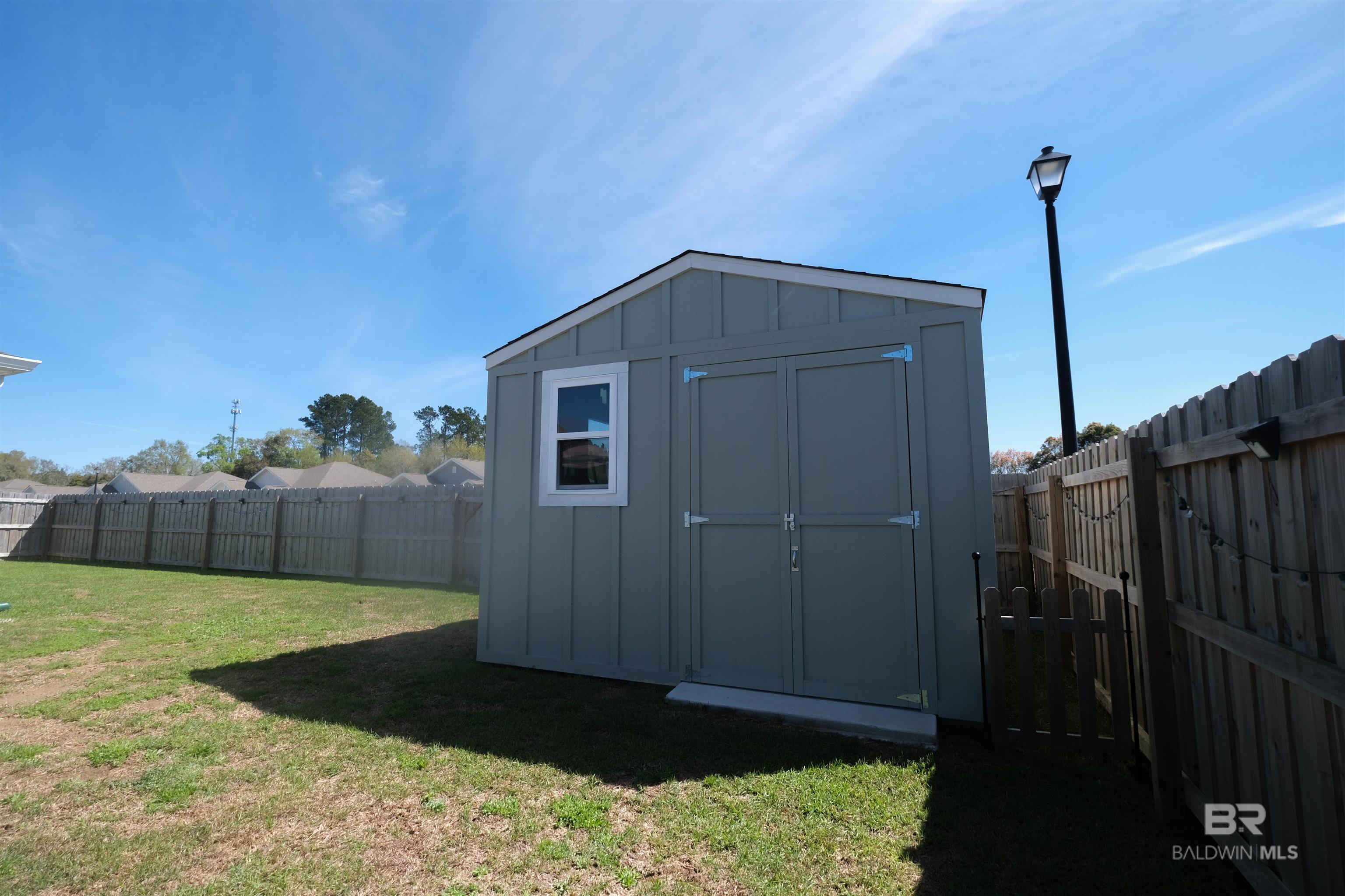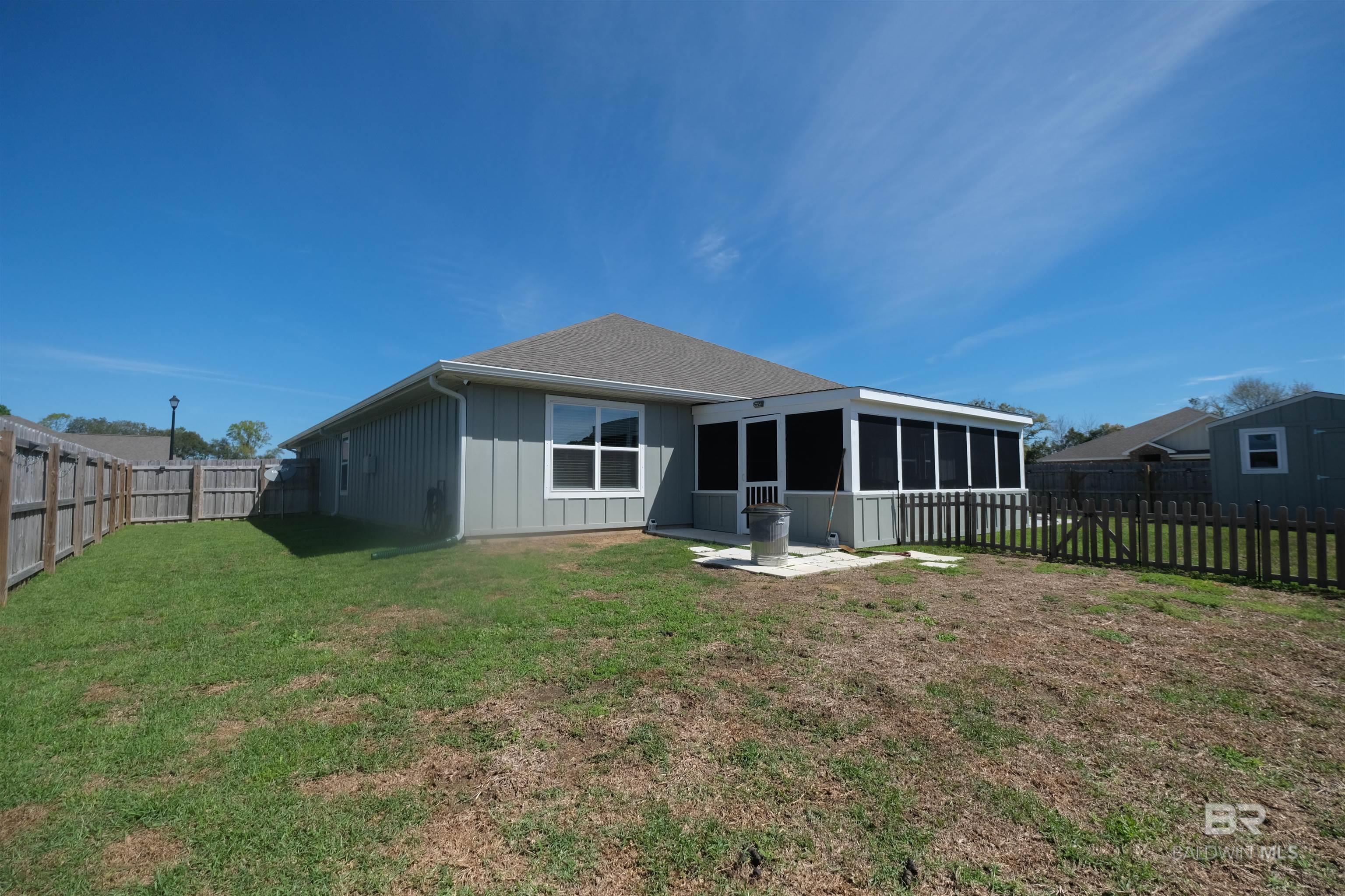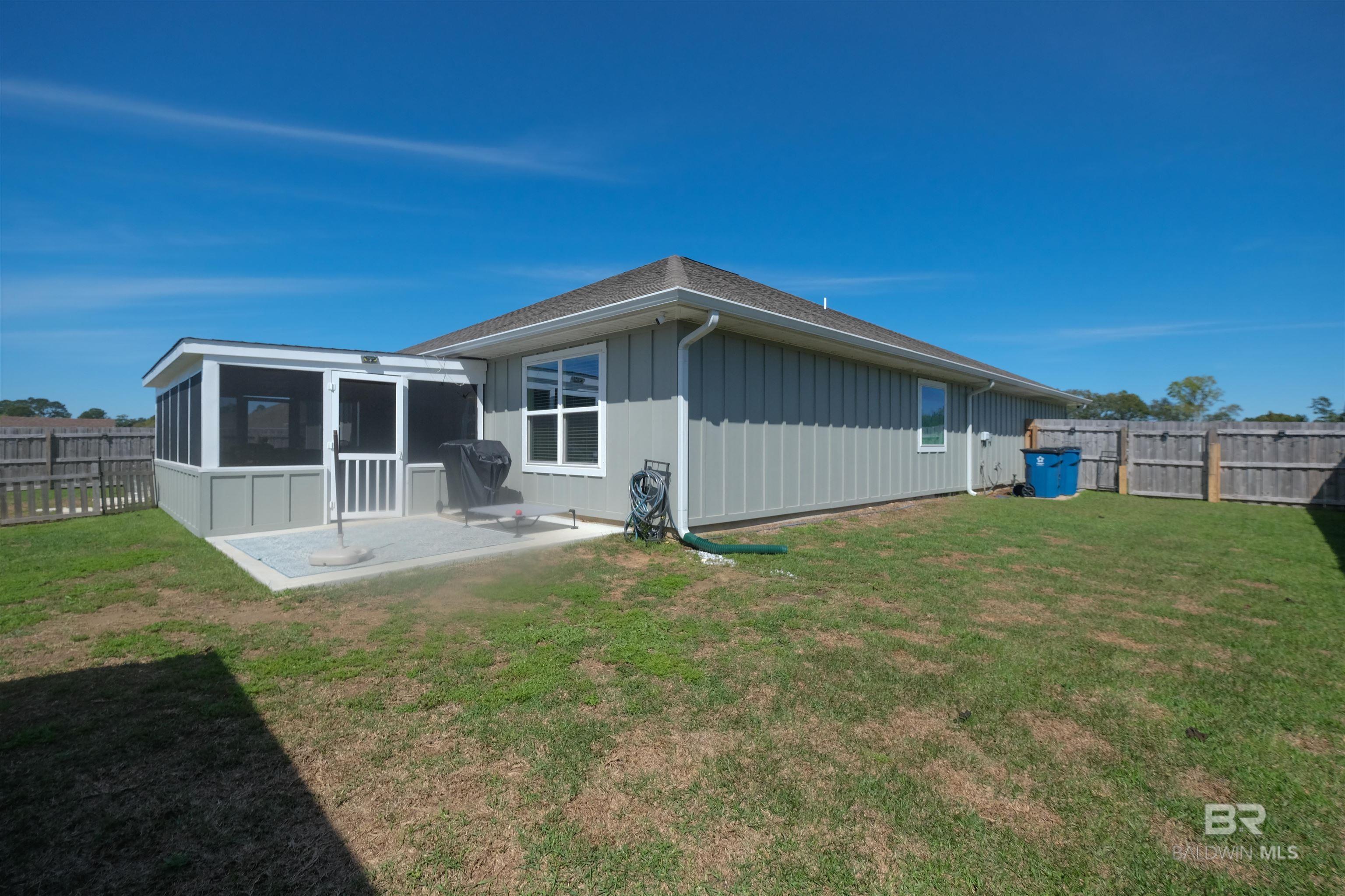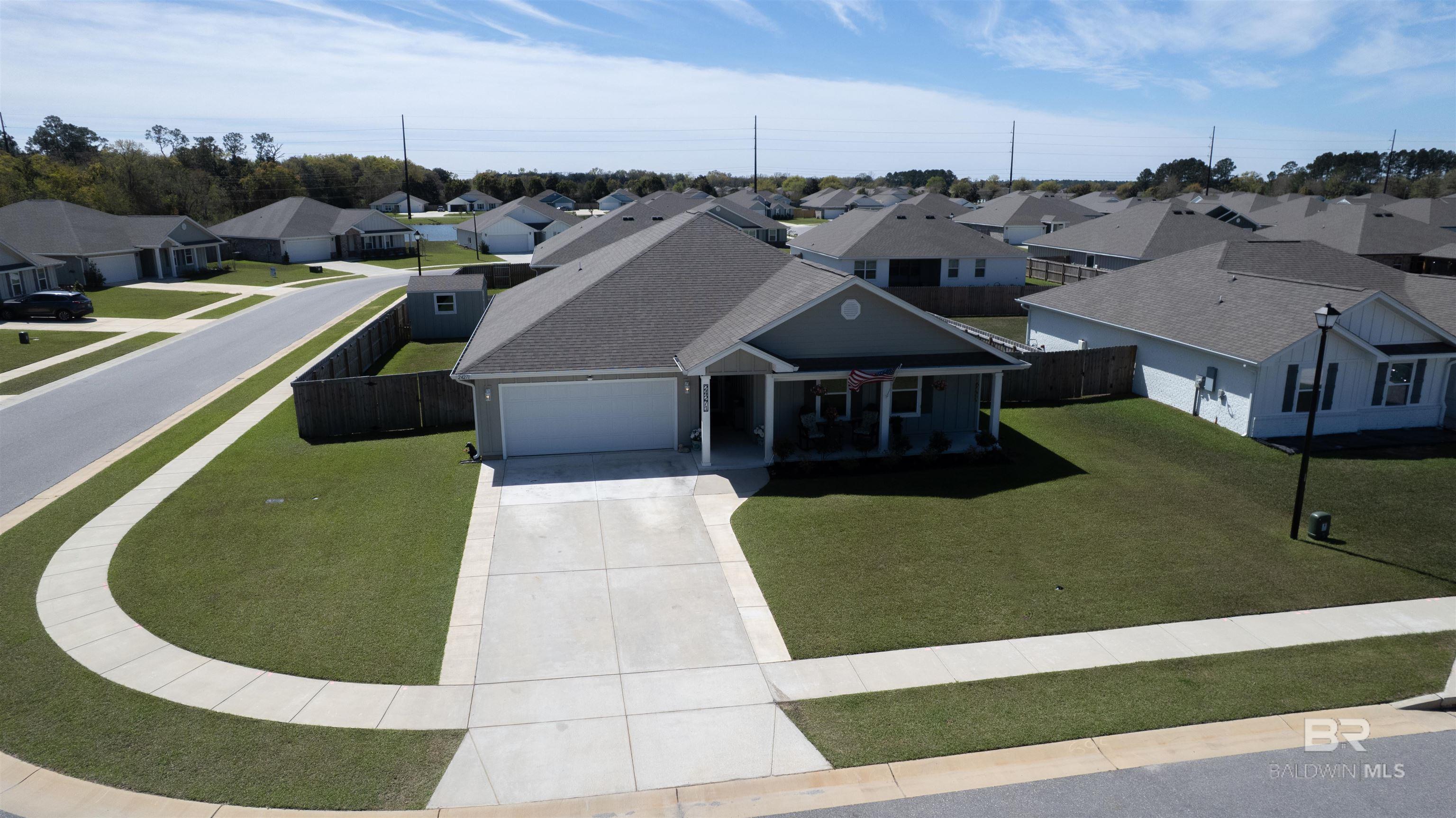 Welcome to 24271 Ringneck Loop in Elberta, a Gold Fortified home that blends modern construction, thoughtful upgrades, and inviting outdoor living. Situated on a huge corner lot in Baldwin County, this well-maintained property offers the feel of new construction with numerous improvements already in place. Step inside to discover 8-foot ceilings and a bright, open layout designed for both everyday comfort and easy entertaining. The kitchen serves as a central gathering space and features granite countertops, upgraded stainless steel appliances including a cooktop range, flush-mounted microwave, refrigerator, and dishwasher, along with under-cabinet lighting that adds both warmth and functionality. The dining area showcases a custom lighted cabinet with additional storage, puck lighting, and a convenient slide-out coffee bar, creating a distinctive space that blends style with practicality. Bathrooms include rainfall shower heads for a relaxing touch, while a whole-home air purification system provides enhanced indoor comfort. Outdoor living is just as inviting. Enjoy mornings or evenings on the 12’ x 20’ screened-in patio, perfectly positioned on an extended 12’ x 36’ concrete slab that offers plenty of space for seating, grilling, or gathering with friends. The fenced backyard with gate also includes a 12’ x 10’ storage building, providing convenient space for tools and upgrades throughout the property include:• Gold Fortified construction, recognized for potential insurance benefits along the Gulf Coast• Full gutter system installed on all four sides of the home• Permanent soffit lighting (“Forever Lights”) along the roofline• Motion-activated lighting installed along the fence line• Irrigation system for convenient lawn care• Expanded driveway with an additional two feet of concrete on both sides for extra parking• Security system with window sensors that may be transferable Buyer to verify all information. Buyer to verify all information during due diligence.