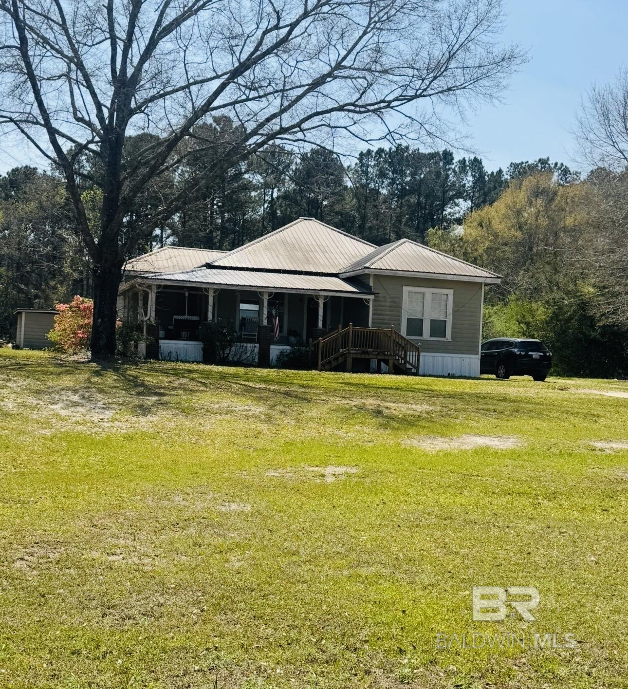 COUNTRY LIVING WHERE OPPORTUNITY KNOCKS! If you've been dreaming of peaceful country living with room to spread out, this property offers endless possibilities. Spacious home situated on 4.8 beautiful acres featuring 4 Bedrooms, 2 Bathrooms, & 2-Car Garage-for storage, hobbies, or outdoor equipment. Inside, you'll find a large country kitchen with custom-built cabinets, an eat-in bar, a new stove, and all stainless steel kitchen appliances. The spacious family room is great for gatherings, and the dining room features beautiful built-ins. All bedrooms and living areas are generously sized, providing plenty of space throughout the home. Washer and dryer, bar stools, and a leather sectional sofa will remain—making this home move-in ready. The home was remodeled in the late 1990s, when the kitchen and 24x24 garage were added, along with updates to wiring and plumbing. Recent improvements include a new metal roof, new gutters, and new double-paned windows with new blinds throughout, offering added efficiency and peace of mind. The garage also features cabinets and additional storage space. The guest bathroom offers ample closet space and has been updated with a new toilet and sink faucet, along with a heated fan/light to keep the space comfortable. Step outside and enjoy the beauty and possibilities of country living. The property features fig, apple, blueberry, peach, and pecan trees, providing opportunities for gardening and outdoor enjoyment. You'll also find a 12x20 storage shed and a garden shed over the well for added convenience. Additional features include county water as well as well water, providing flexibility and reliability. The home is located on a power grid designed to maintain service, offering added peace of mind during outages. This property offers the perfect blend of space, comfort, updates, and country charm-all with room to grow! Buyer to verify all information during due diligence.