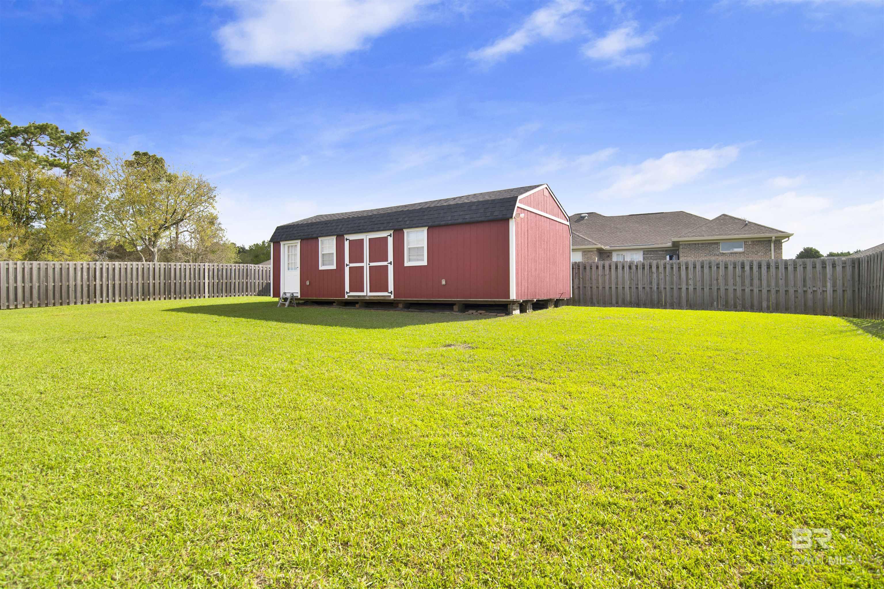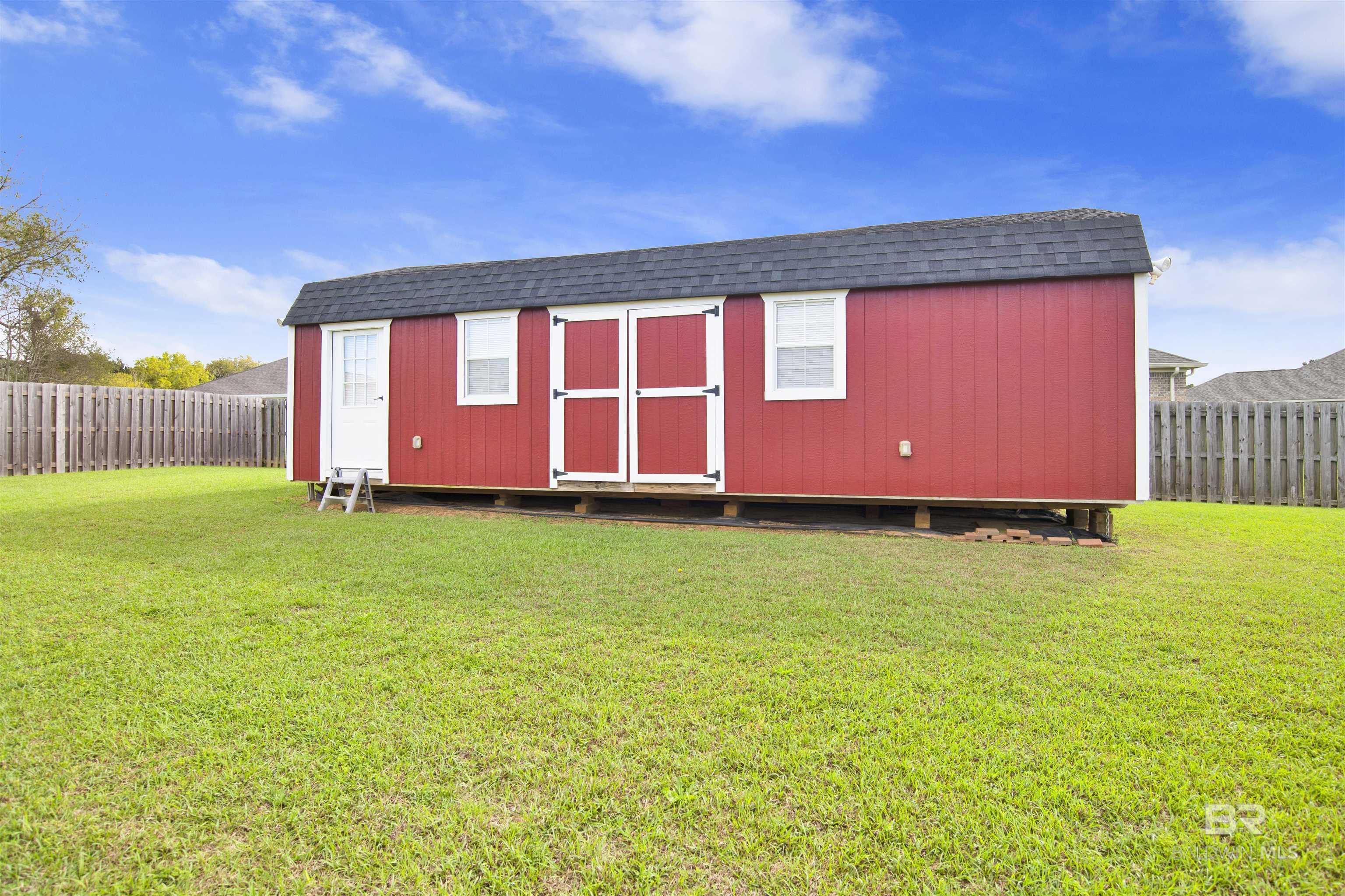Welcome to this charming, single-level home at 27224 Lashay Dr, Daphne, AL in the sought-after Madison Place subdivision. This 3-bedroom, 2-bathroom home has been well maintainedand is in excellent condition. The home is heated and cooled with an HVAC system that is onlythree years old. The heart of the home features a functional open floor plan designed forcomfortable, relaxed living and entertaining. The kitchen is gourmet-ready with granitecountertops, stainless steel appliances that are three years old, a breakfast bar, and a brightbreakfast nook. The spacious living and dining areas flow together, creating an inviting, airyatmosphere. This private retreat features a split-bedroom layout for maximum privacy. Theprimary suite has a walk-in closet, and an ensuite bath with a separate soaking tub and shower.Step out into the ultimate backyard sanctuary where beyond the large fenced yard lies theproperty’s “X-factor”: a 16’ x 32’ climate-controlled bonus building. This versatile space is fullyinsulated and heated/cooled by a brand-new mini-split system. The high-end finishes includetongue-and-groove pine ceilings, drywall, and stylish shiplap walls. For tech and comfort there isan integrated speaker system, recessed lighting, and a retractable ceiling mount for up to a 70”TV. The workshop area has pegboard walls for organization and ample space for projects.Indoor-outdoor potential has elegant barn doors already in place, ready to open onto a futuredeck of your design. There is also an in-ground sprinkler system with a separate meter to helpwith easy lawn irrigation. Buyer to verify all information during due diligence.