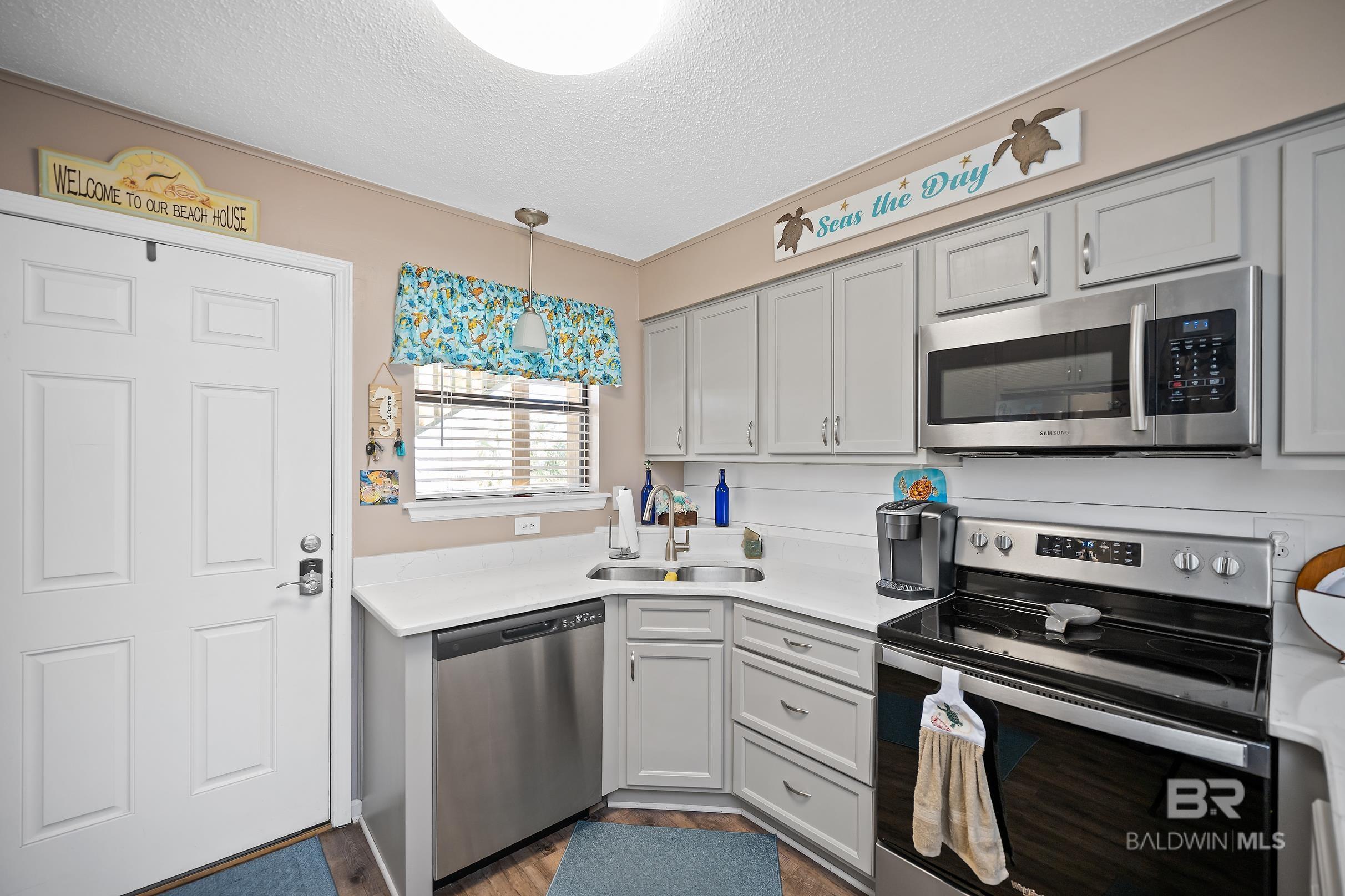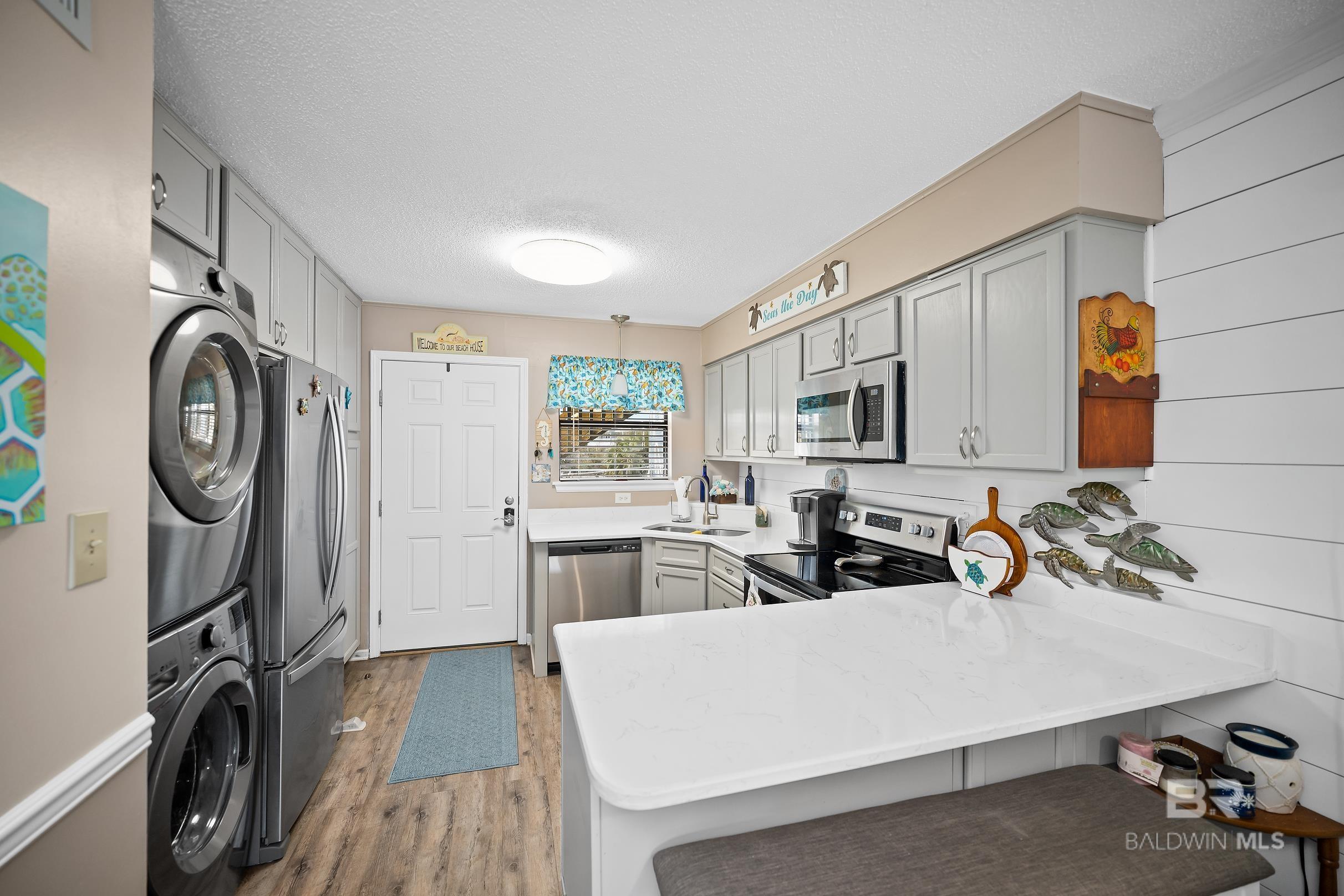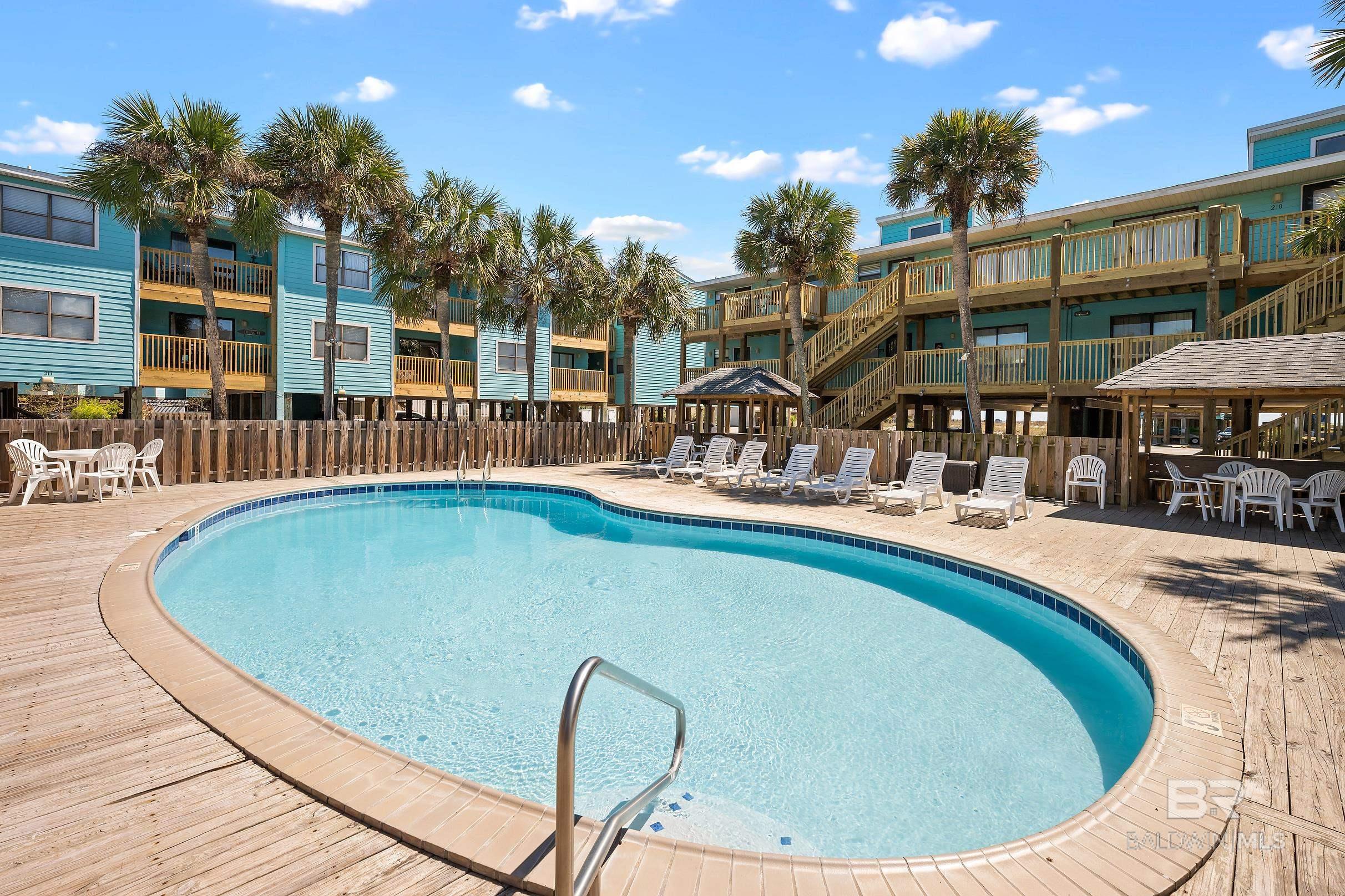 Recently renovated two bedrooms located in Popular Lani Kai in Gulf Shores, Alabama. New cabinets, quartz counters, appliances, ship lap walls, new LVP flooring and new lighting. This adorable condo has a private balcony with great views of both of the pools and just a short walk to the deeded beach access! Lani Kai offers two outdoor pools, a family pool and an adult pool, has new exterior updates including new balconies, new walkways and new stairs. This is a great investment with covered parking and deeded beach access and would make an awesome short term rental opportunity. Unit is currently not on a rental program. Buyer to verify all information during due diligence.