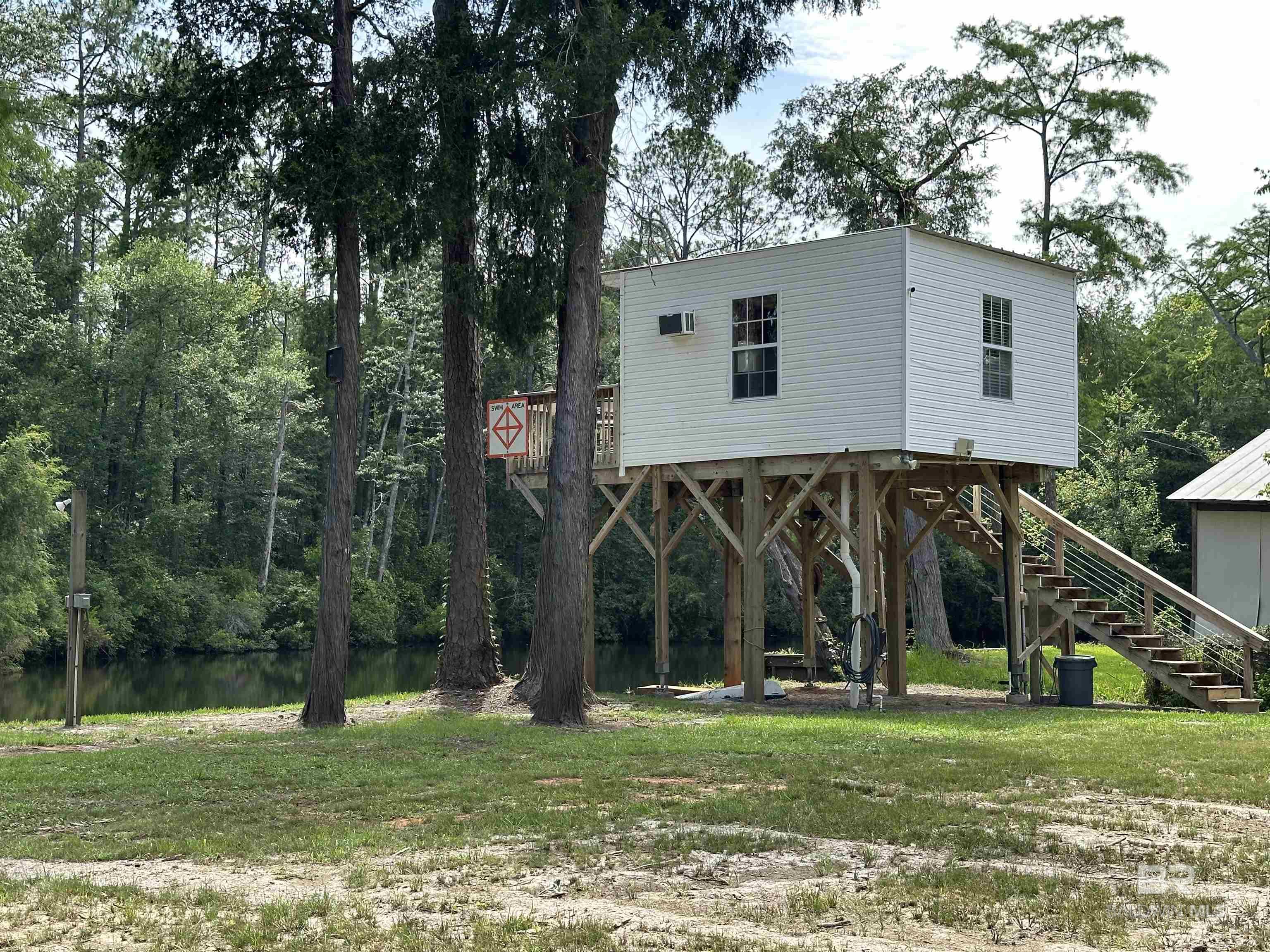 Beautiful Waterfront Property on the Blackwater River. This offering includes 3 lots totaling .99 acres, and 190' of waterfront. There are two full canals on the property, perfect for pulling your watercraft off the river, without having to take it out of the water. There are also two raised bunkhouses. One is outfitted with a kitchen, bath, and window unit for cooling, and water supply is public water. It's the perfect spot to spend a weekend on the water. The Blackwater provides deep water access (15 feet deep) to Perdido River and then on to Perdido Bay, so you'll be sure to experience great fishing! The property is also an ideal spot to build your dream home and have complete privacy, while still being close enough to the shopping, restaurants, or other activities in either Pensacola or Robertsdale. Check out this property soon so you can enjoy this summer on your own little piece of paradise. Buyer to verify all information during due diligence.