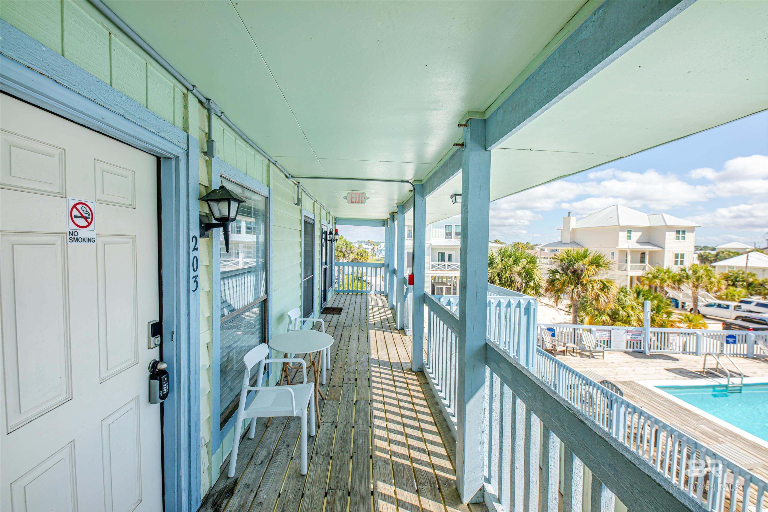 Welcome to B203, your new coastal getaway in Gulf Shores! This beautifully updated, 2 bed - 2 bath condo is located directly between the Gulf beaches and Little Lagoon giving you the best of both! This condo has been recently refreshed with newly painted cabinets & interior walls. The layout is functional with spacious bedrooms and a front porch overlooking the pool. B203 features include LVP & Tile Flooring, New HVAC in June of 2025 & a Newly installed 2nd floor window by COA. The Cove is a low-density complex offering amenities that include assigned covered parking, private lagoon access, launch/dock, community pool, covered BBQ/picnic area, additional parking lot, low HOA, and more! Conveniently located within a mile of the Hangout and near Pier33 grocery store, restaurants, popular attractions, shops and public beaches, this prime location makes it ideal for both owners and guests. Wether you’re searching for a personal beach retreat or a turn-key income-producing property, this unit checks all the boxes and is priced to sell! Buyer to verify all information during due diligence.