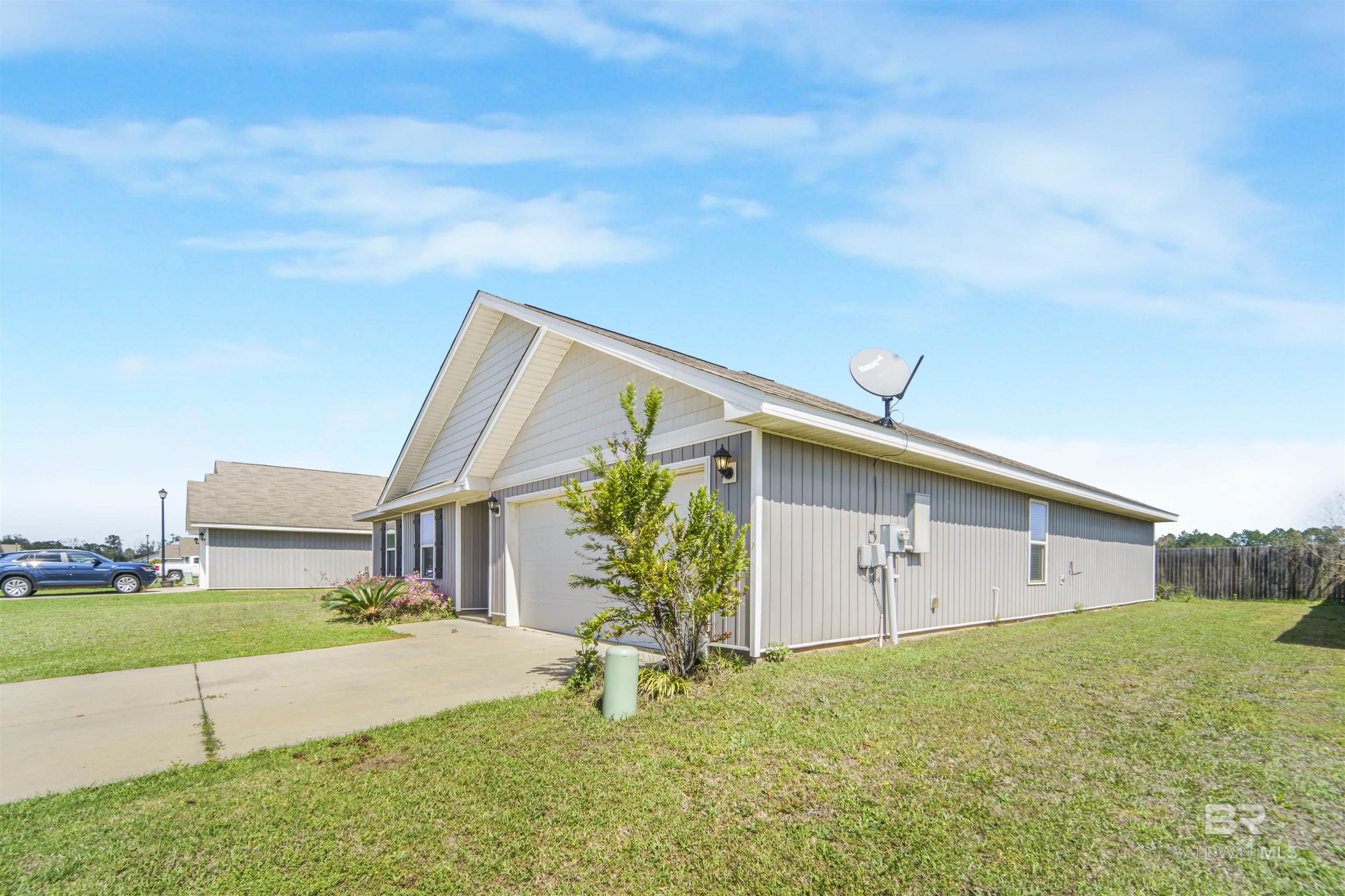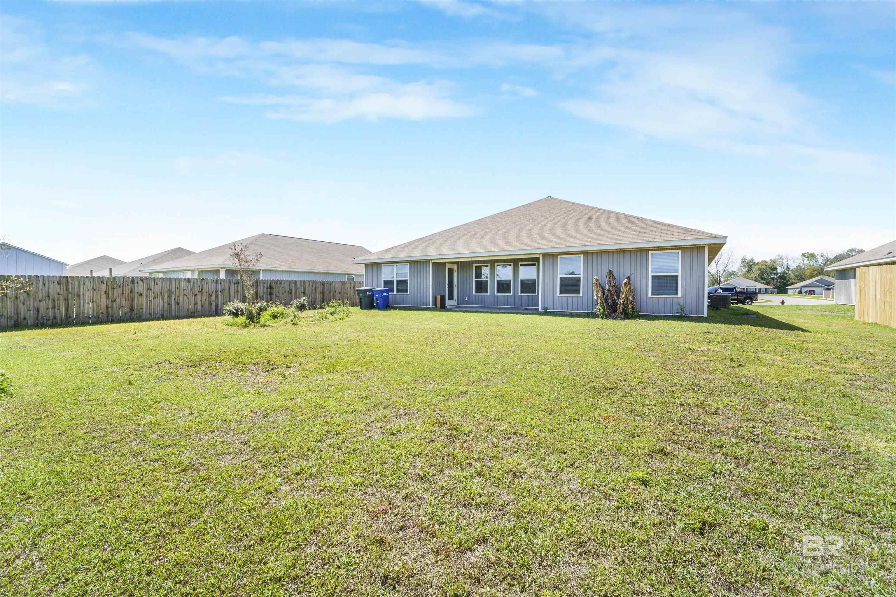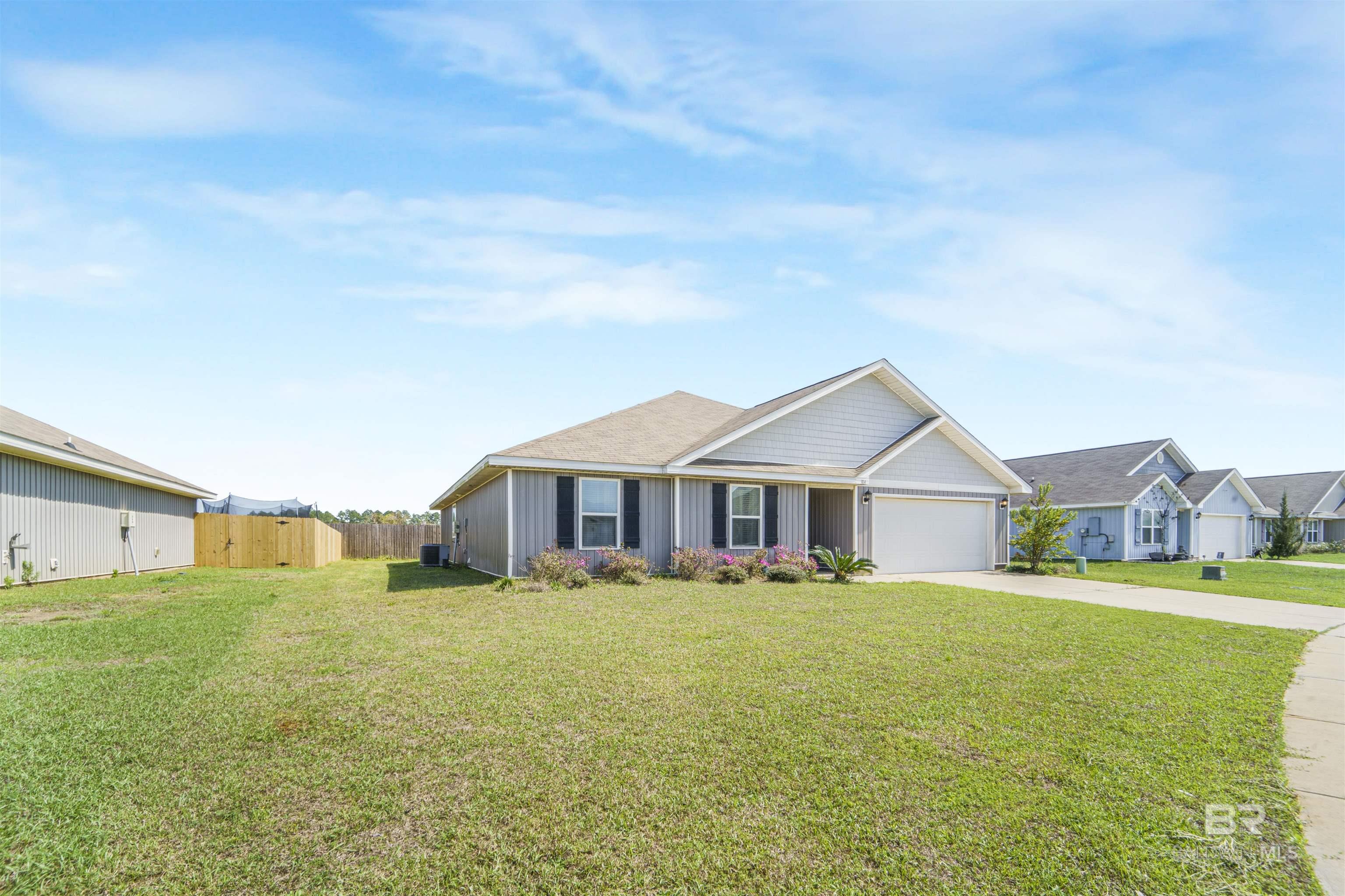 4 bedroom, 2 bathroom smart home featuring an open floor plan, situated on a spacious lot with a two-car garage and convenient access to downtown Foley. The kitchen offers stainless steel appliances and flows seamlessly into the living and dining areas, overlooking the partially fenced backyard.The primary suite includes a bathroom with double vanities, a separate water closet, walk-in shower, soaking tub, and a large walk-in closet. All four bedrooms are generously sized and thoughtfully positioned within the layout.Additional features include Low-E double pane windows with storm protection, architectural shingles, and an active termite bond. This home is Gold Fortified. Buyer to verify all information during due diligence.
