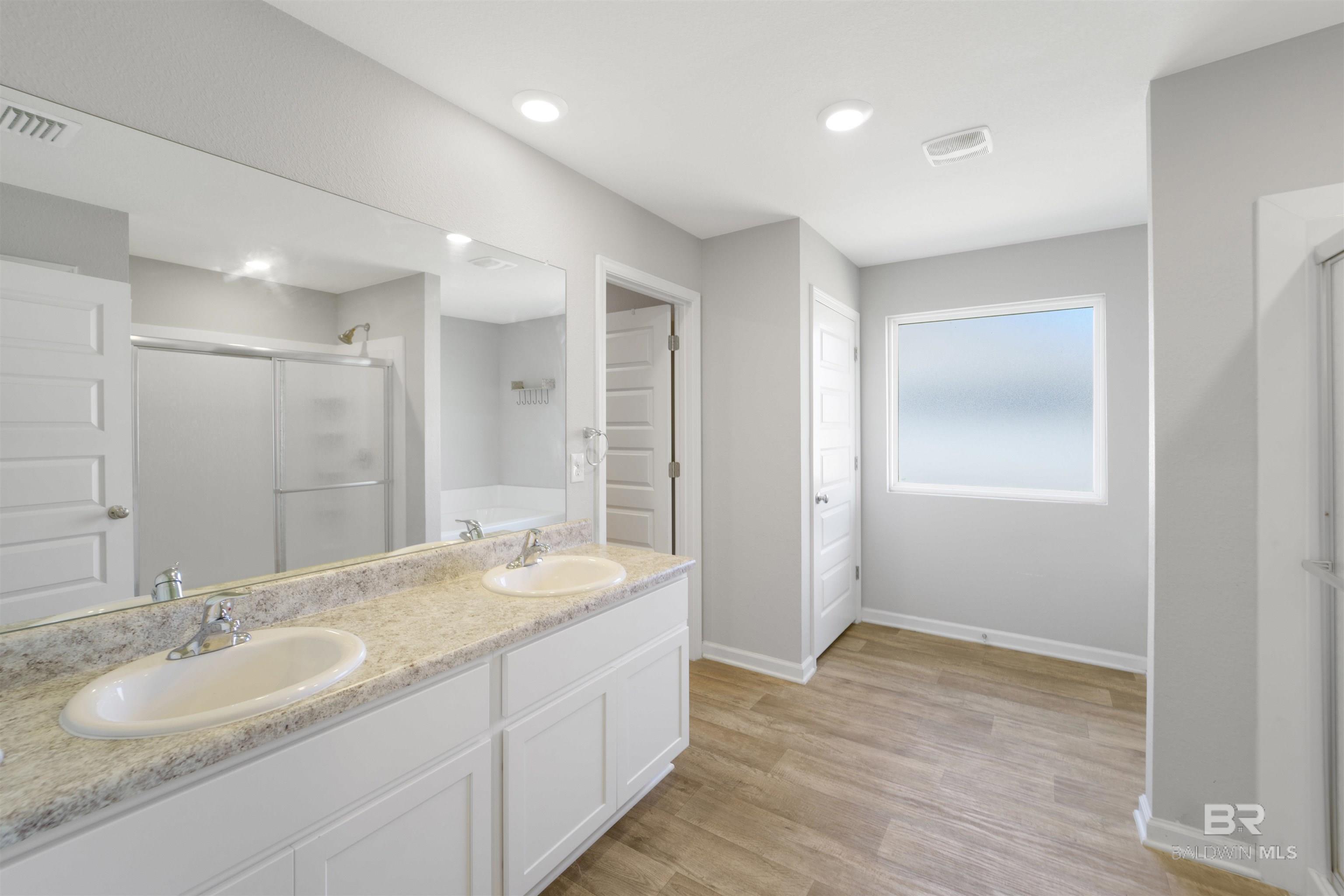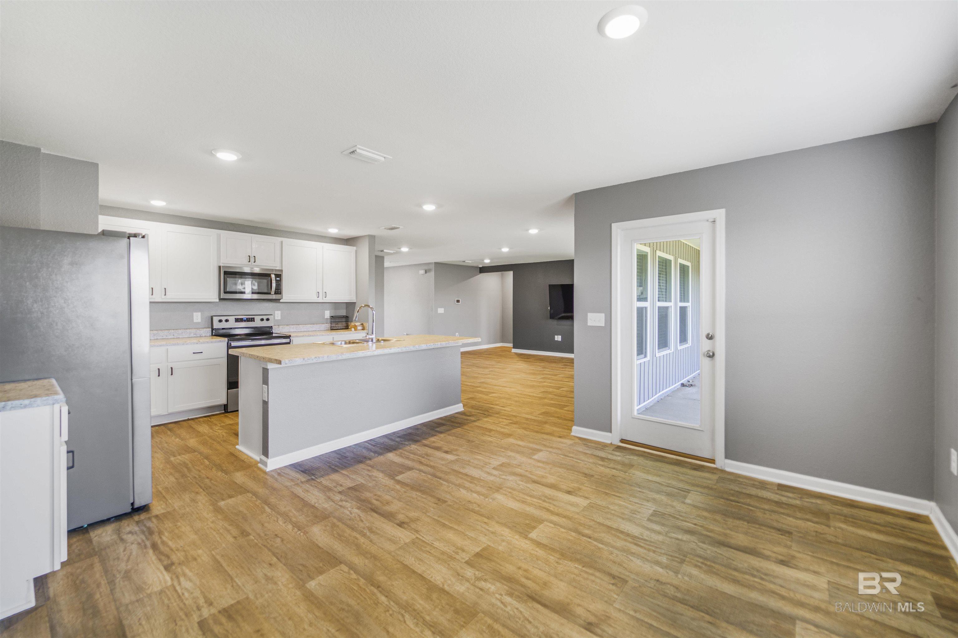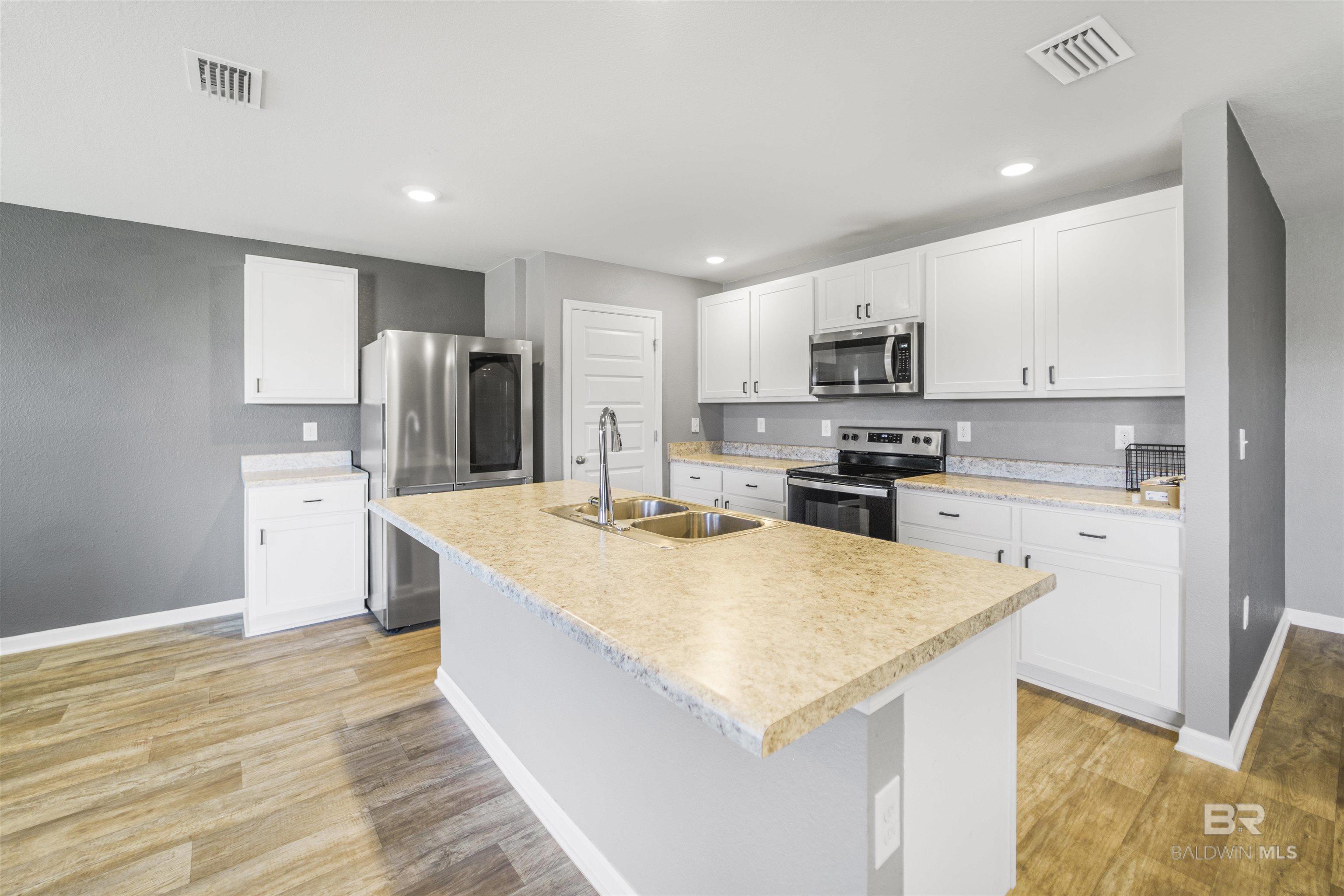4 bedroom, 2 bathroom smart home featuring an open floor plan, situated on a spacious lot with a two-car garage and convenient access to downtown Foley. The kitchen offers stainless steel appliances and flows seamlessly into the living and dining areas, overlooking the partially fenced backyard.The primary suite includes a bathroom with double vanities, a separate water closet, walk-in shower, soaking tub, and a large walk-in closet. All four bedrooms are generously sized and thoughtfully positioned within the layout.Additional features include Low-E double pane windows with storm protection, architectural shingles, and an active termite bond. This home is Gold Fortified. Buyer to verify all information during due diligence.