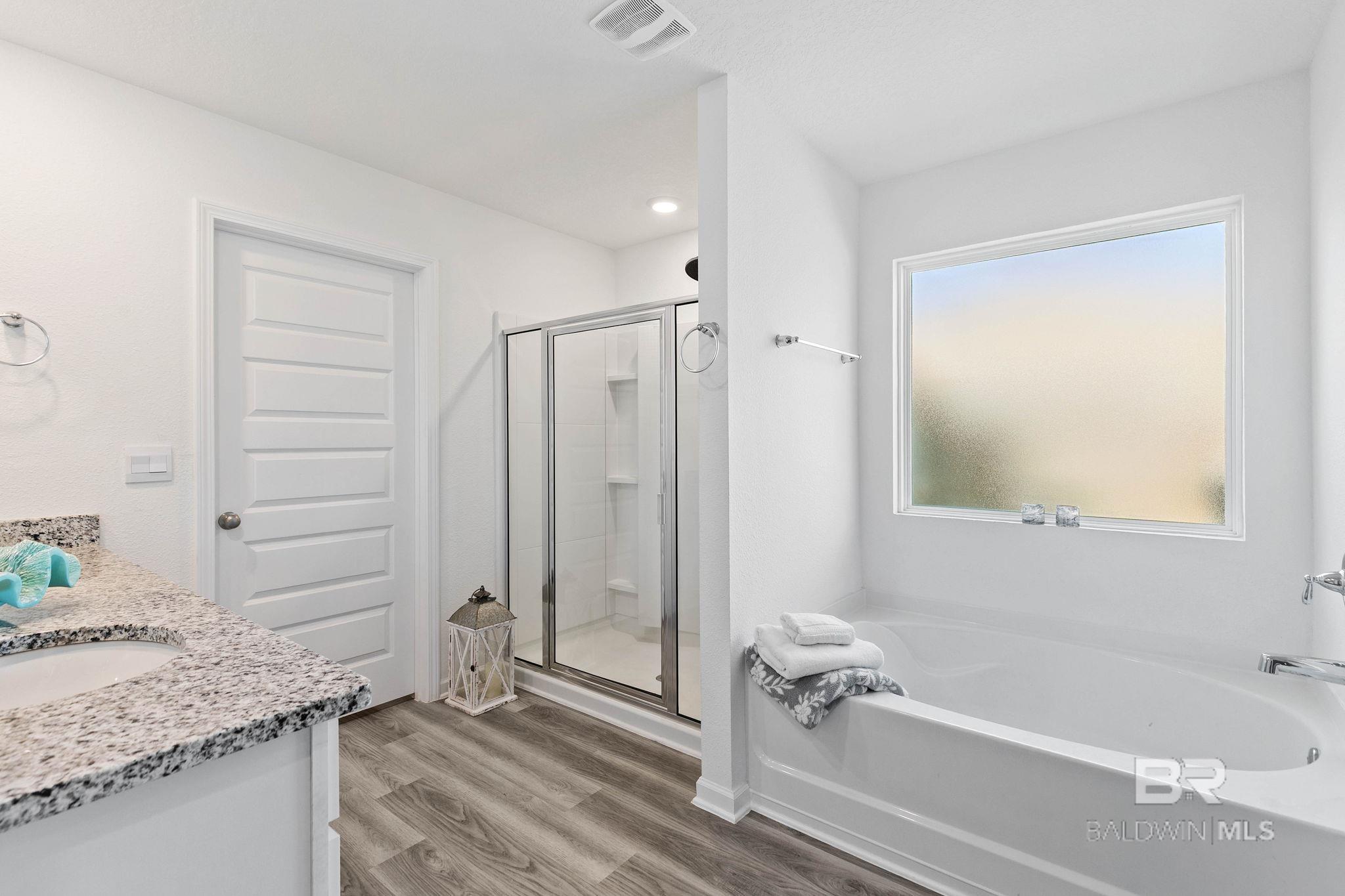 Welcome to 12692 Mikado Circle in the peaceful Pheasant Run community of Elberta beautifully maintained, move-in-ready home offering comfort, style, and outdoor living at its finest. A backyard large enough for a boat, pool, storage,…. Oh the possibilities! This pristine property features a Gold Fortified Certificate, helping provide potential savings on homeowner’s insurance while offering added peace of mind. Step outside and fall in love with the backyard oasis-fully FENCED with no rear neighbors, just a serene tree-lined view. Whether you’re hosting friends or unwinding after a long day, enjoy the inviting entertaining area complete with Adirondack seating and a firepit (which can convey). The SCREENED IN BACK PATIO is perfect for morning coffee, reading, or birdwatching—without the nuisance of mosquitoes.Inside, you’ll find a bright open-concept floor plan designed for both everyday living and entertaining. The kitchen is a standout with GRANITE countertops, a spacious island, pantry, and a full suite of appliances—including a refrigerator that truly impresses.This home offers 4 bedrooms and 2 full baths, with durable and stylish LVP flooring flowing seamlessly throughout. The primary suite is a relaxing retreat, featuring dual vanities, a soaking tub, and a separate walk-in shower.Meticulously cared for and thoughtfully designed, this home also offers the option for coastal wall décor to convey—adding to its charm and move-in readiness.Enjoy quiet streets, sidewalks, and a welcoming neighborhood atmosphere in Pheasant Run. This one truly checks all the boxes—schedule your showing today! Buyer to verify all information during due diligence.