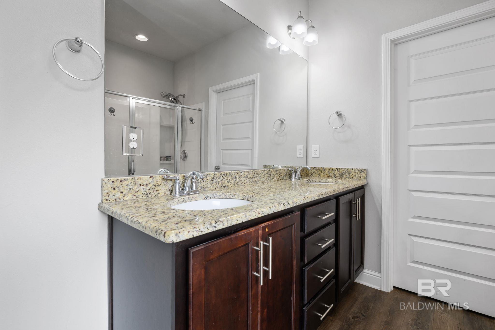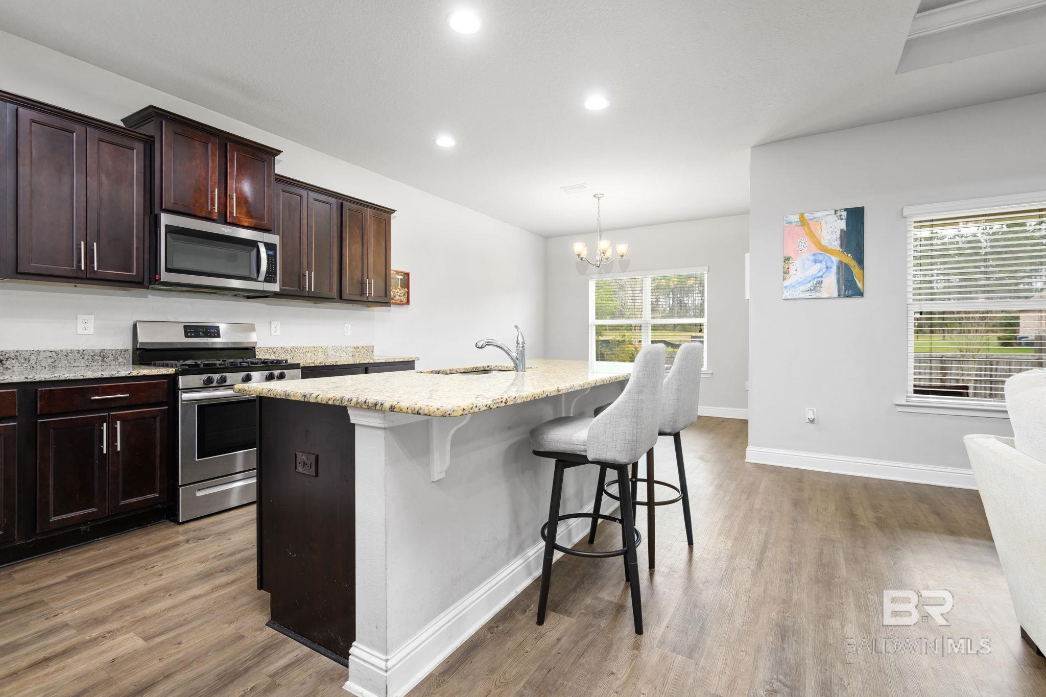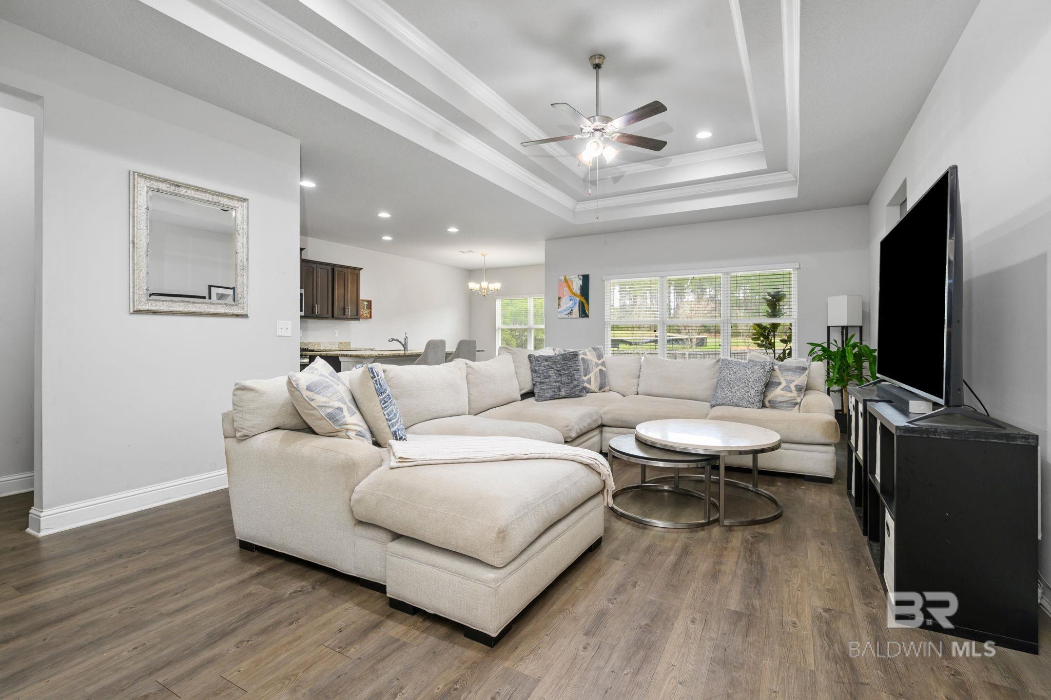 ASSUMABLE VA LOAN AT 4.124%!!! Beautifully maintained 4 bedroom, 2 bath home with an open, split floor plan, located in a great, established Stonebridge subdivision with top rated schools. The split layout provides privacy, with the primary bedroom suite thoughtfully located on one side of the home and three additional bedrooms with a full bath on the opposite side.The well designed kitchen offers excellent flow, featuring granite countertops, stainless steel appliances, a gas range, and crown molding, and opens seamlessly to the dining area and large living room. This open layout is great for entertaining and provides easy access to the backyard for indoor outdoor living.Enjoy a spacious, fully fenced backyard with no backyard neighbor across from you. A convenient backyard gate opens directly to the basketball, baseball, and sports fields, allowing for immediate and convenient access to Stonebridge’s excellent amenities. The home is also right around the corner and a very short walk to the resort style pool, fitness center, and playground. Relax on the covered back patio and enjoy beautiful Alabama sunsets.Additional features include a side loading two car garage, extended driveway for extra parking, double gate access to the backyard, white 2" blinds, gutters, tankless water heater, and ceiling fans throughout. Built to Gold Fortified standards, offering potential insurance savings.Move in ready and ideally located — schedule your showing today! Buyer to verify all information during due diligence.