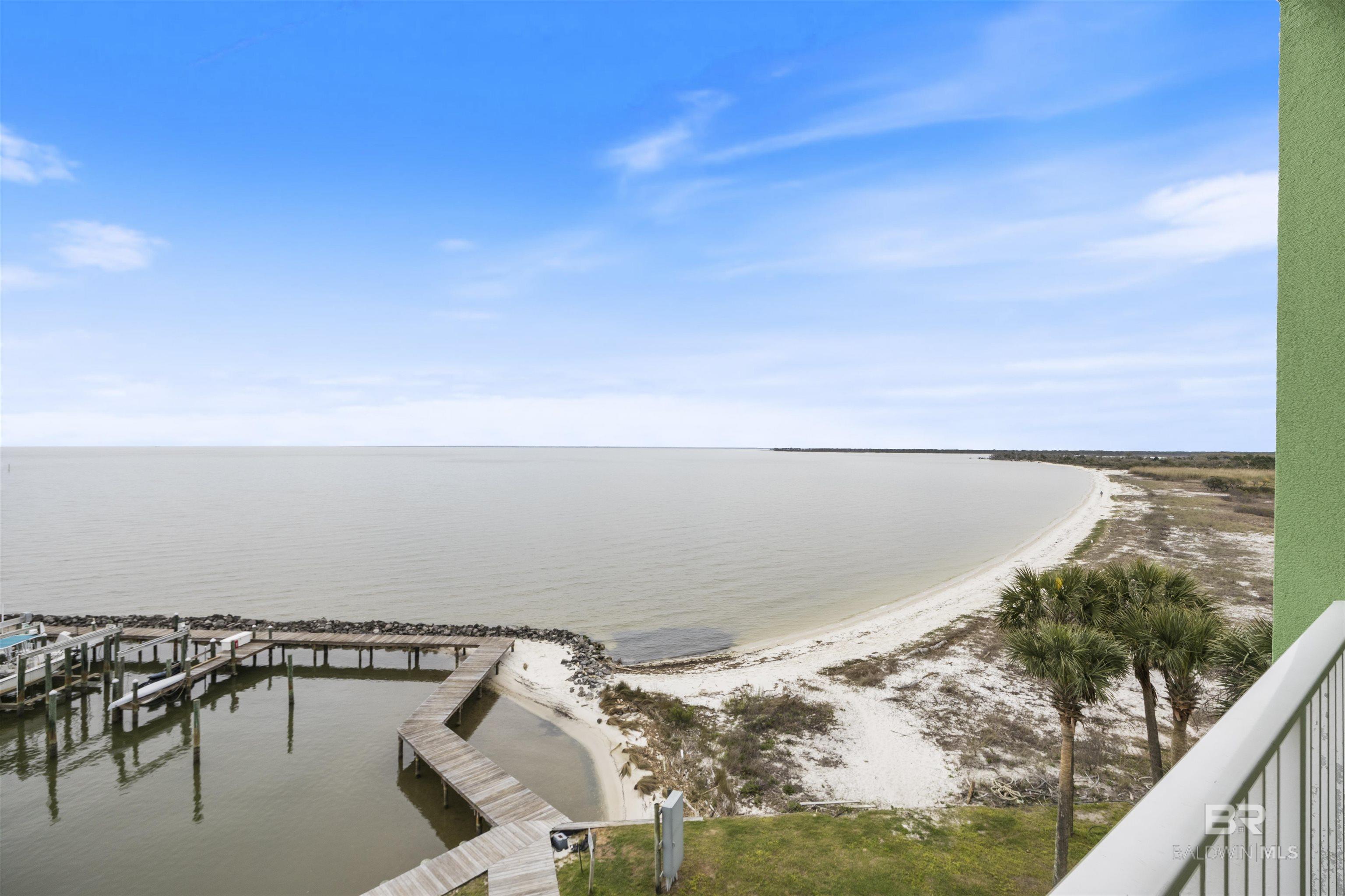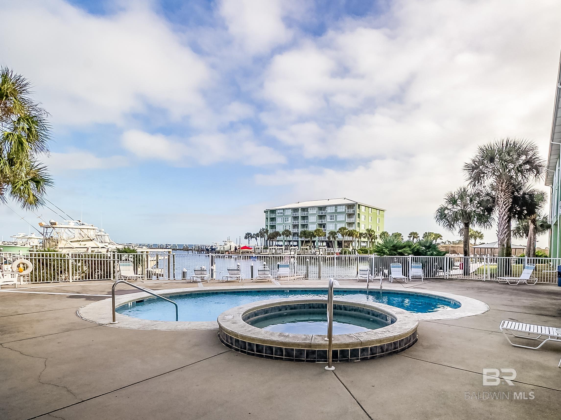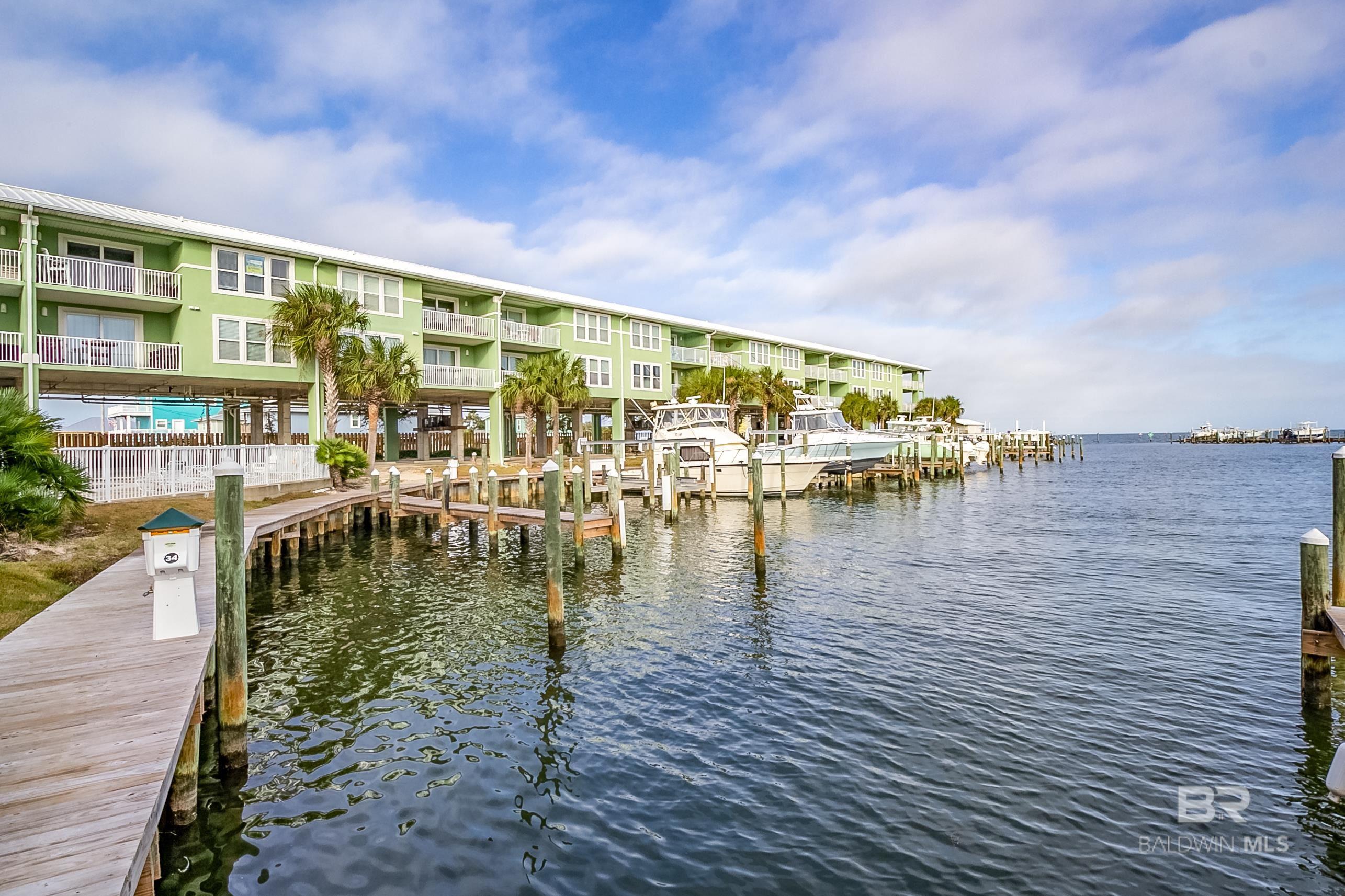 Welcome to Unit 1307 at Navy Cove Harbor Condominiums in Fort Morgan. Enjoy breathtaking bay-front views and Deeded Boat Slip #7 from this western-view corner unit featuring two private balconies with stunning marina and sunset views. This 2 bedroom / 2 bathroom condo offers an open floor plan with spacious kitchen and living areas designed for comfortable coastal living. The kitchen features Samsung stainless appliances, updated cabinet pulls, and a custom bar with upper cabinetry and pantry not commonly found in other units in the building. Both bedrooms include ensuite bathrooms, providing privacy and convenience for owners and guests. HVAC replaced in 2024. Community highlights include two pools, two hot tubs, a private boat launch, fish cleaning station, boat slips, trailer storage, and gated entry, making this an ideal property for boating enthusiasts. Dogs are allowed for owners, vacation rentals are permitted, and the community is golf cart friendly. Owners enjoy beach access directly south of the condo, plus a large expansive beach immediately east of the property owned by the United States government and open to the public 24/7, offering incredible space to enjoy the Gulf Coast shoreline. The beach is just a short walk or golf cart ride away. Units in this western corner stack at Navy Cove rarely come on the market, making this a unique opportunity for a personal coastal retreat or income-producing investment.Buyer to verify all information during due diligence. Buyer to verify all information during due diligence.