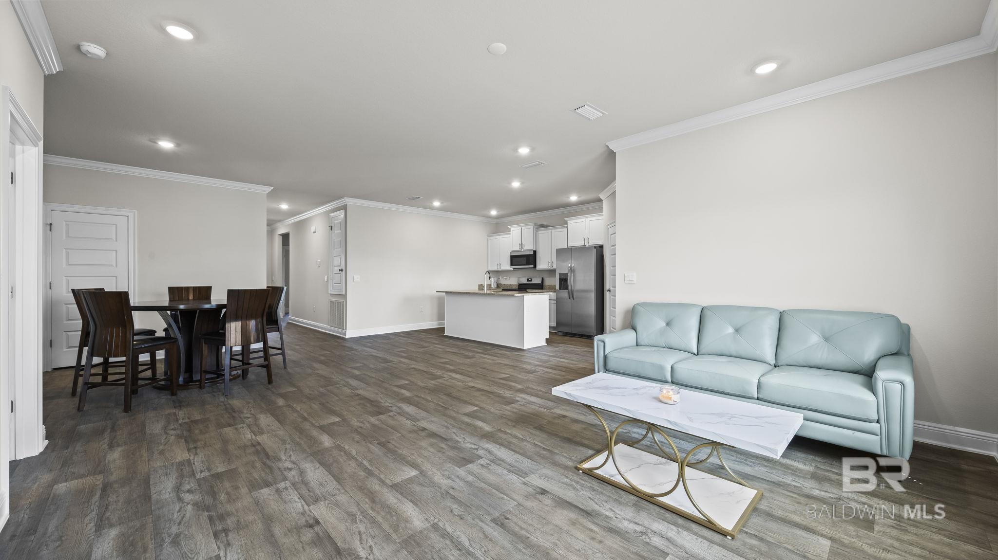 Better than NEW!!! Skip the wait and uncertainty of new construction with this move-in ready home in one of Foley’s newest communities. Only lived in 3 months has blinds, appliances including fridge and washer and dryer, fenced in backyard and gutters on exterior of the home. Located in Paxton Farms, new community is near shopping, Foley Medical Center and just 15 min from the Gulf beaches. This open living floor plan offers 3 bed/2 bath with 1510 sq ft built in 2025 to GOLD FORTIFIED STANDARDS (lower insurance costs) and with SMART HOME CAPABILITIES. Features include vinyl flooring throughout, crown molding, LARGE kitchen island, Stainless Dishwasher, Stainless refrigerator, Stainless Over the Range Microwave, and Stainless Smooth Top Electric Range. A LARGE Primary Bedroom and Large Primary Bath boasts a 5 ft. Shower, Double Vanities and Spacious Primary Walk-In Closet! 10-Year LED Lighting throughout the home, Double Car Garage w/ 2 Openers, vinyl clad LOW-E DOUBLE PANE WINDOWS, and 25 Year Shingles, Termite contract in place, and Fabric Shields for the windows & doors. This home features Connected (SM) Smart Home Technology, which includes control panel, doorbell, smart code lock, two smart light switches, and thermostat, all controlled by one app. Don’t miss your chance to get into Paxton Farms NOW instead of waiting on a new build! Buyer to verify all information during due diligence.