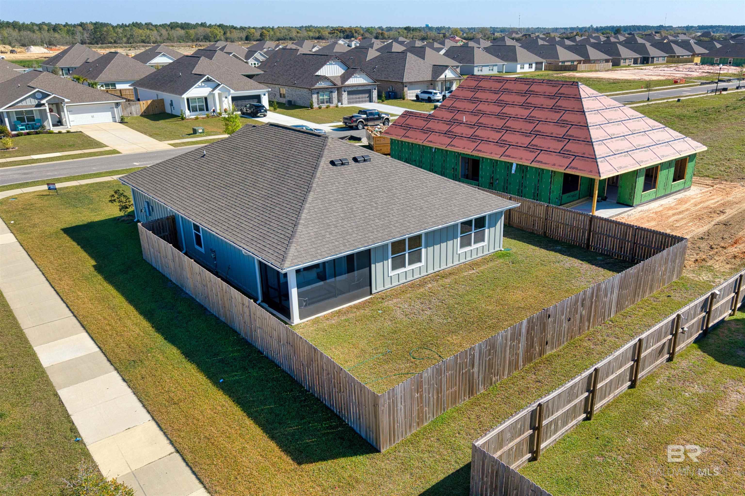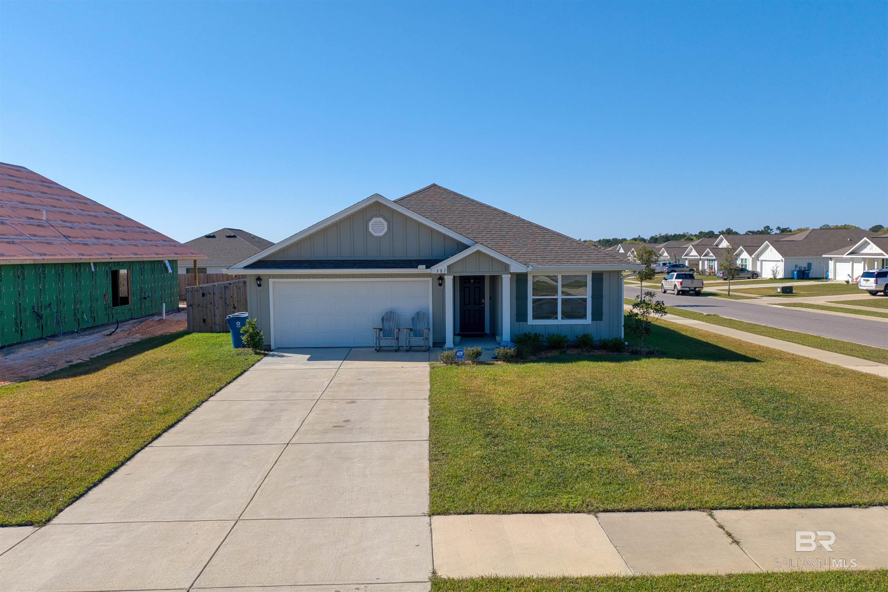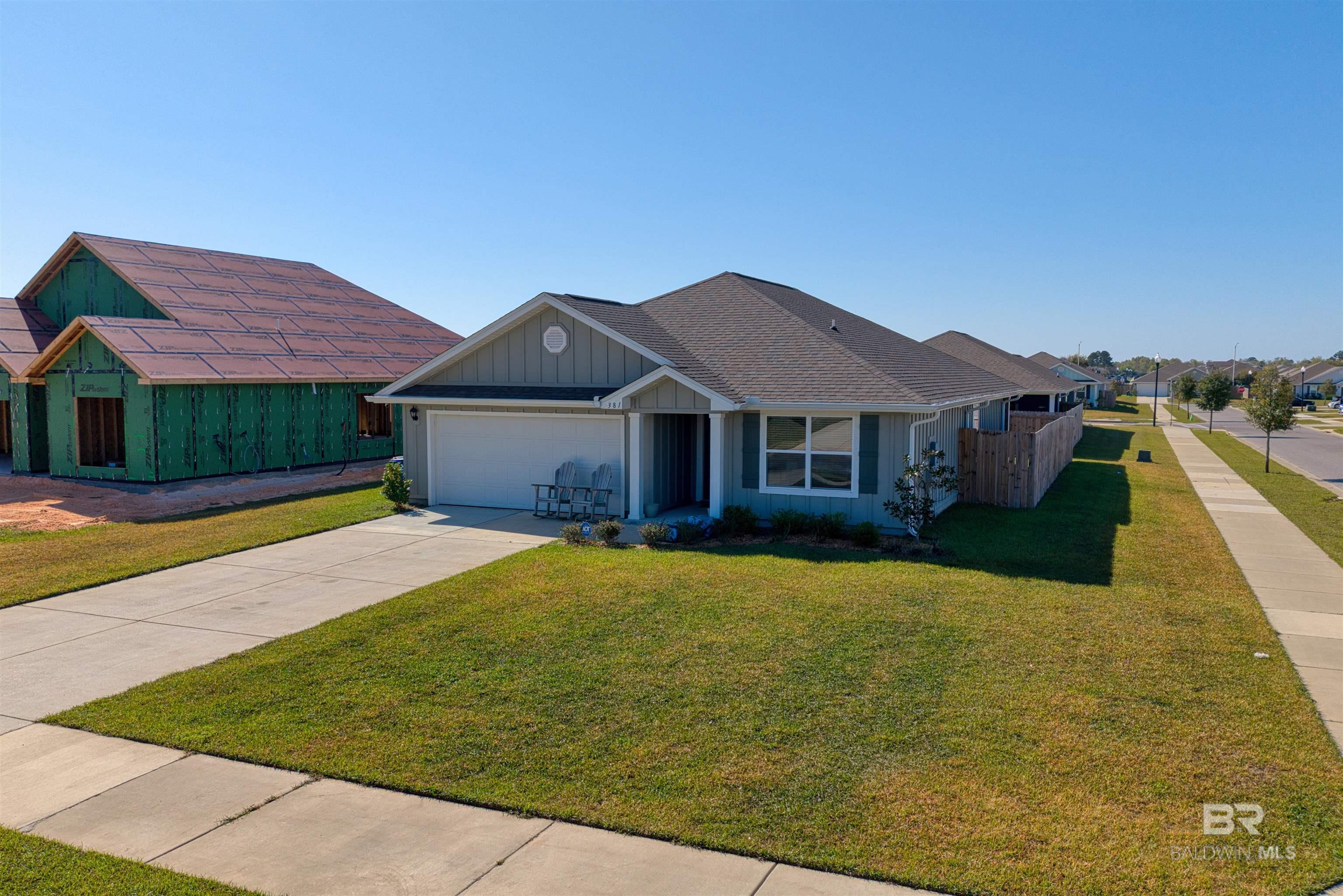 CORNER LOT in Phase 1 of Raley Farms. Well-kept, Gold Fortified house built in 2024. Only Owner purchased upgrades including new appliance package, blinds package, LVP flooring throughout as well as Fenced Back Yard and Gutter system. Security system with multiple cameras and Smart Home technology available for activation. Subdivision features a zero-entry owner's pool and lake views and walking areas. Subdivision entrances and exits from Coastal Gateway Blvd to either Foley Beach Expressway or Gulf Shores Parkway (59) and near new High School. Raley Farms is GREAT location to access Orange Beach, Gulf Shores, Foley and north, or to Mobile to Pensacola. Seller to consider Closing Costs contribution with commensurate offer. Professional photos and virtual tour coming 3/23. Buyer to verify all information prior or during due diligence. All offers on BCAR Purchase Agreement. Buyer to verify all information during due diligence.