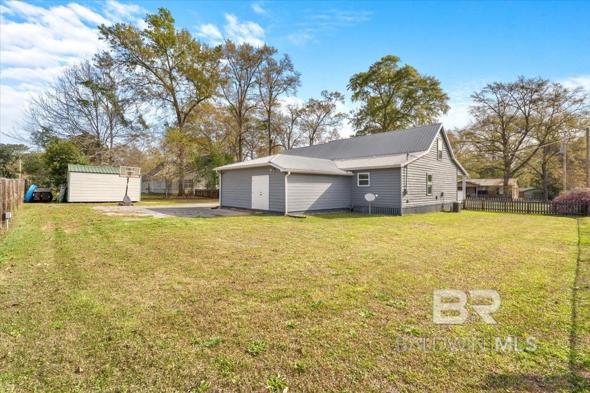 Don't miss this one! Spend your afternoons on the covered front porch, enjoying the comfort of a porch swing and the views around you. Inside, the open floor plan connects the kitchen, dining, and living areas—ideal for entertaining! Features include vaulted ceilings with exposed beams, a fireplace, handcrafted backsplash, granite countertops, and a large kitchen island.Two main-floor bedrooms with en-suites provide comfort and privacy. There is also a versatile bonus room above one of the ensuites that can serve as an office, playroom, or additional bedroom. Across the house is another bedroom upstairs. The attached shop/storage area and exterior shed offer plenty of space for hobbies or storage. The fenced backyard is ideal for pets and outdoor fun.Perfectly situated off HWY 90 between the Beach Express and HWY 59, this home offers easy access to Orange Beach, Gulf Shores, Fairhope, Daphne, Spanish Fort, Pensacola, and Mobile. You'll fall in love with this blend of charm, modern comfort, and convenience. Don't wait, schedule your showing! Buyer to verify all information during due diligence.