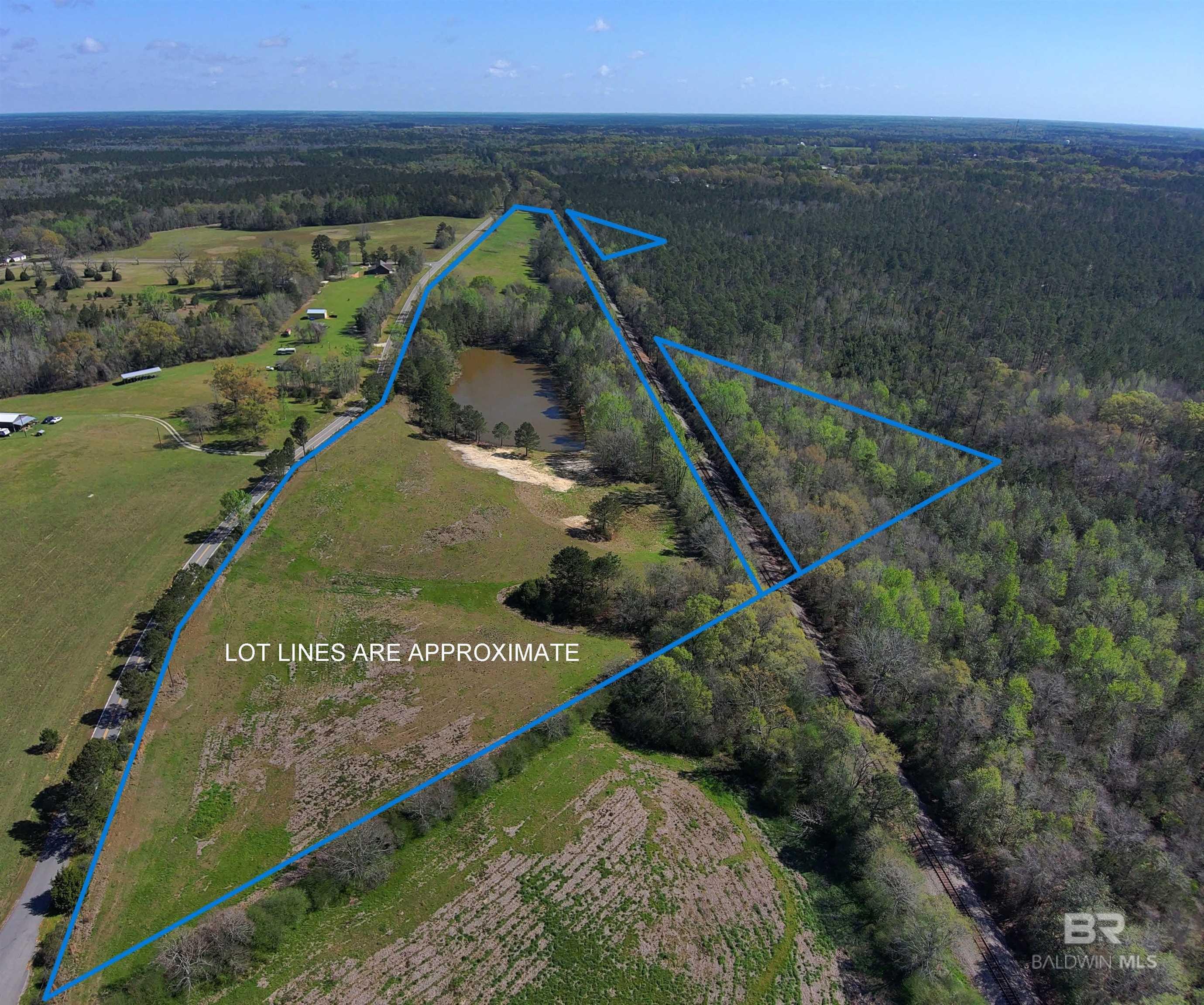 This rural property features a beautiful pond stocked with catfish. This versatile property offers open pasture land perfect for livestock, recreation, or building your dream home. It is centrally located between Bay Minette and Atmore and only a few miles from Hwy 31 and I-65. Perdido School (K-8) is also only minutes away and the new South Alabama MegaSite/Novelis Plant is just 15 minutes away. Call the listing agent to view this property or if you have any questions.UTILITIES- Water well and septic to be installed by buyer if needed.No mobile homes or manufactured homes. Buyer to verify all information during due diligence.