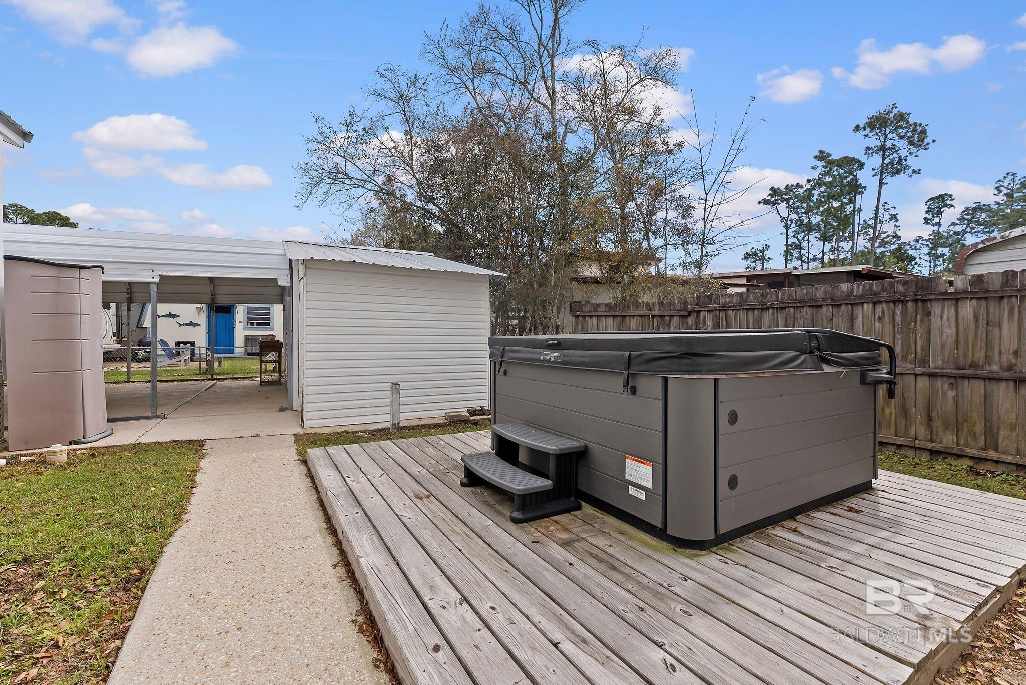 Well-maintained mobile home on a spacious double lot in the Spanish Cove community of Lillian, AL! This property features a double carport, outdoor storage, and a fully updated cottage with new plumbing, electrical wiring, and panel box—perfect for guests or extra space. Recent upgrades include new electrical service from the road to the mobile home, plus a 50-amp RV hookup, generator hookup, and hot tub connection. Plumbing updates include a new main water line, all new plumbing under the mobile home, and a tankless water heater. Additional improvements include new tie-downs, anchors, and a 2025 certification sticker. Fresh paint on both the mobile home and cottage, and A/C serviced in 2024.Enjoy Spanish Cove amenities including a clubhouse, fishing pier, private beach, and a community pool that is covered and heated in the winter. Buyer to verify all information during due diligence.