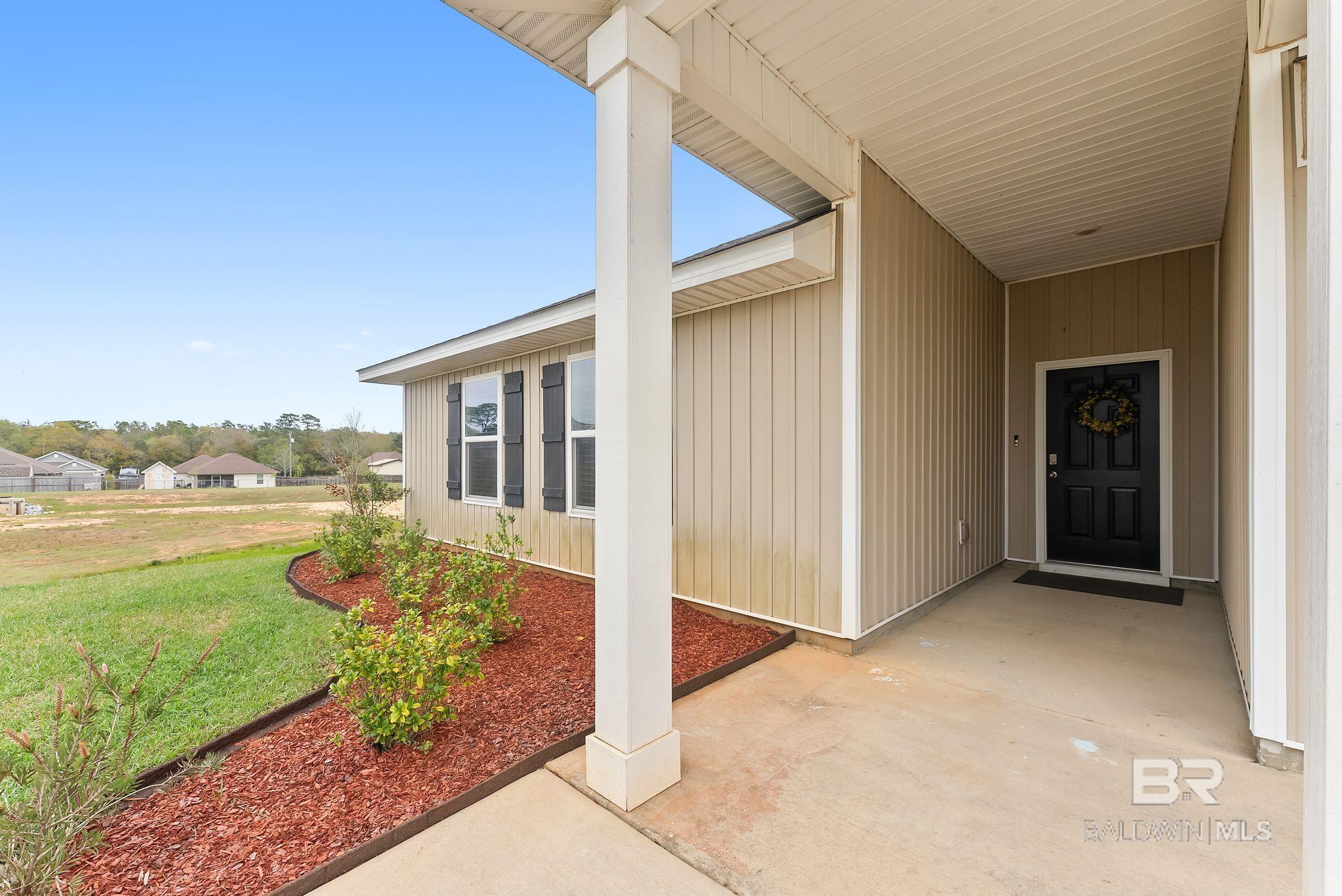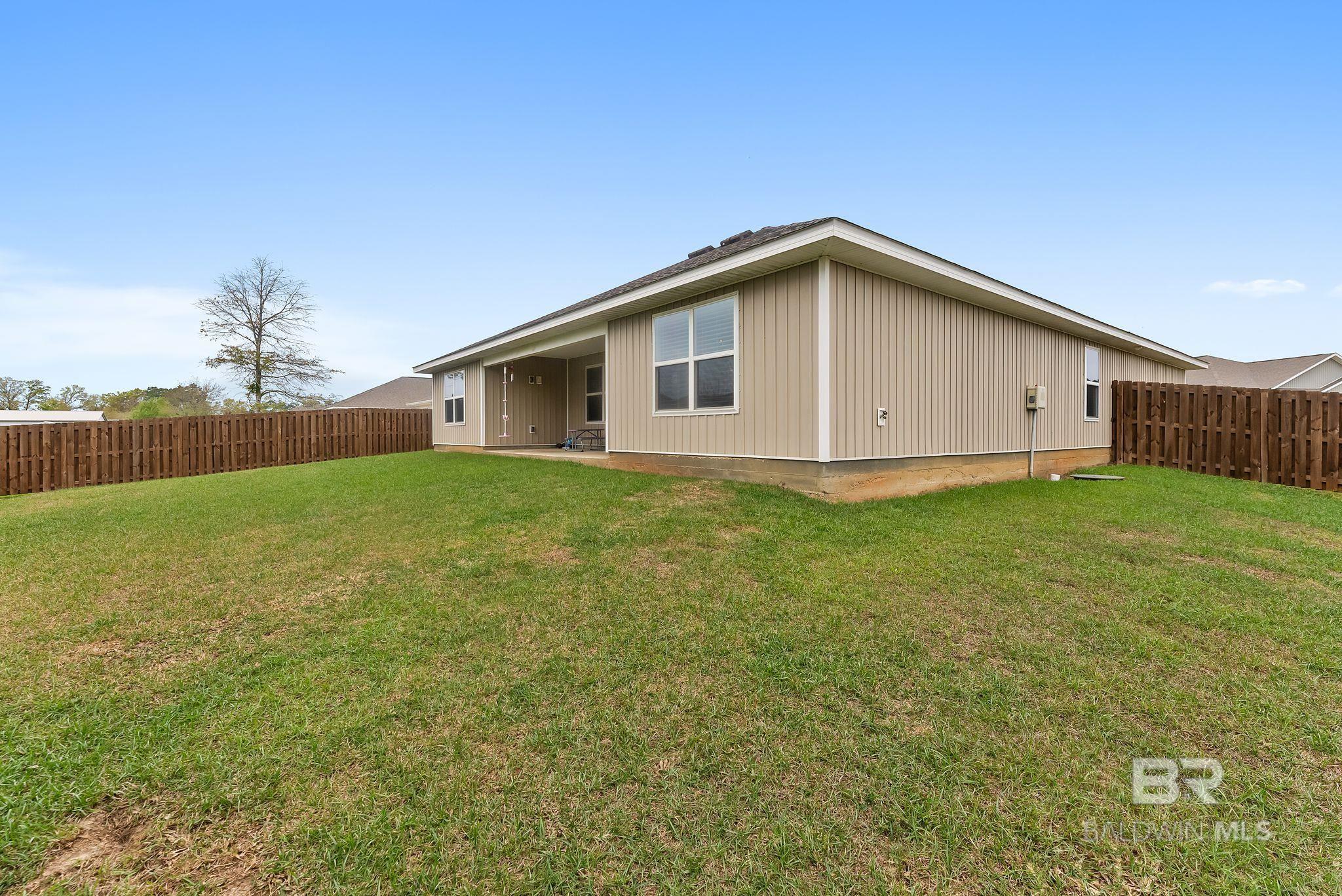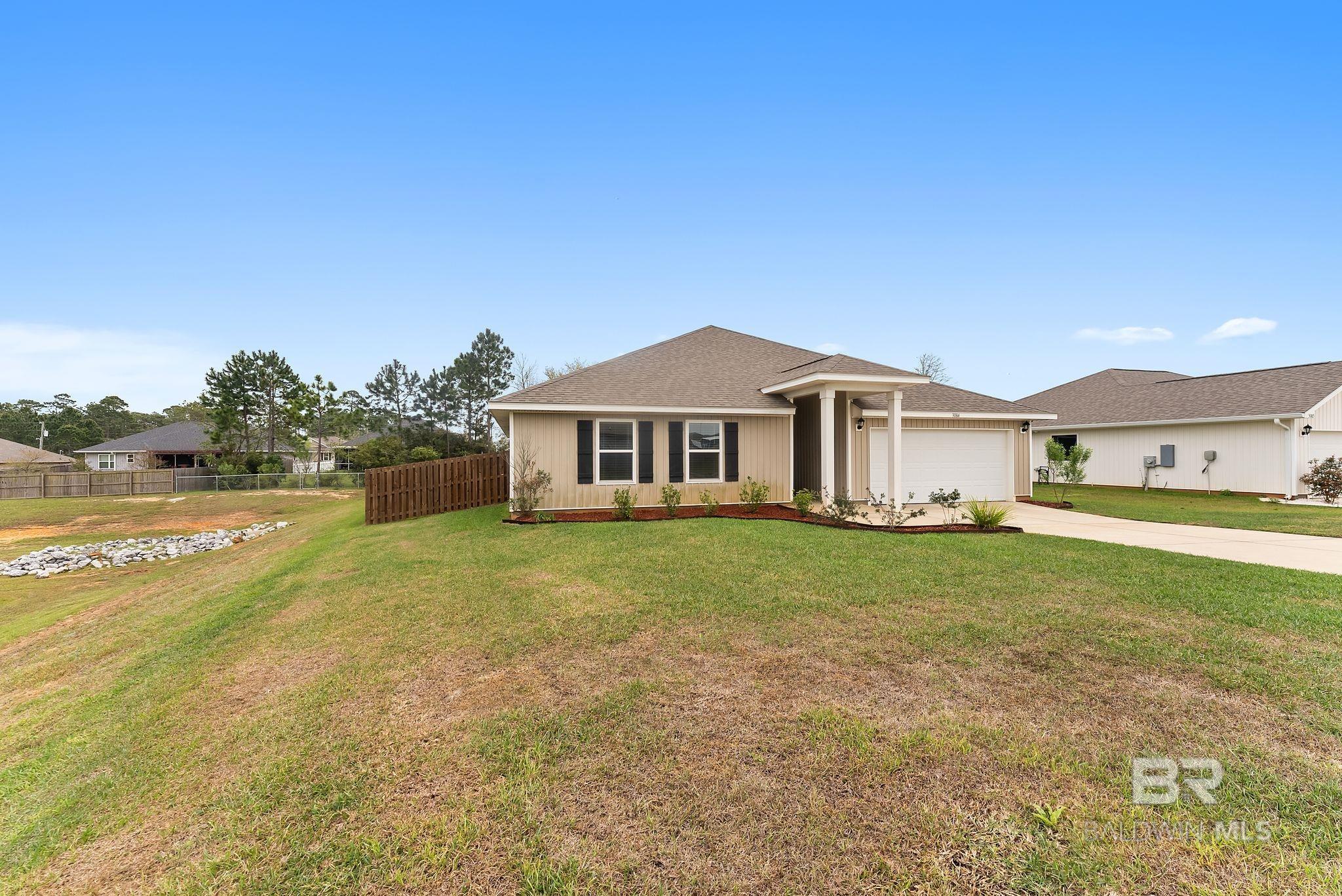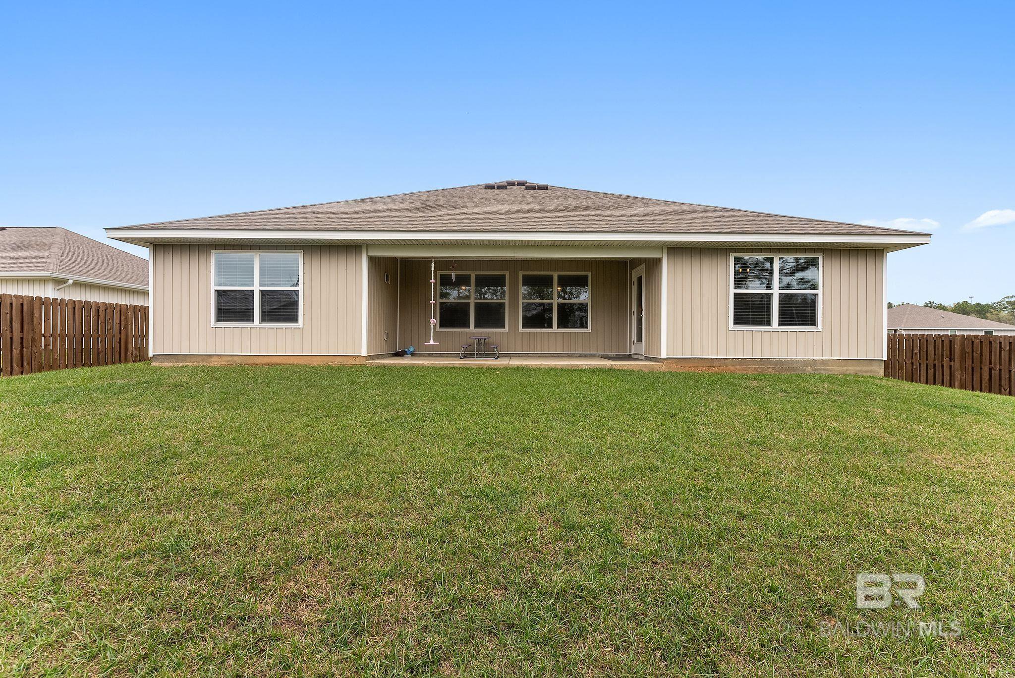 Experience the perfect blend of coastal charm in this immaculate and freshly painted 2022-built "Denton" floor plan! Located in the highly sought-after Spanish Cove community of Lillian, AL, this 4-bedroom, 2-bathroom residence is the gold standard for move-in-ready living. Built to strict Gold Fortified standards, this home offers superior storm protection and significant annual savings on homeowners insurance; a massive plus for the Gulf Coast market. The Denton layout is celebrated for its seamless flow and functional design. Step through the foyer into a sprawling open-concept great room bathed in natural light. The chef-inspired kitchen is the true centerpiece, featuring a massive granite-topped island with a breakfast bar, stainless steel appliances, and a walk-in pantry. Whether you are prepping a beach day lunch or hosting a holiday dinner, this kitchen keeps you at the heart of the action. Vinyl flooring flows through the main living areas, offering both beauty and durability for easy coastal cleanup. The split-bedroom floor plan ensures the primary suite remains a private sanctuary, complete with a spacious walk-in closet and a double-vanity ensuite. This home is fully integrated with Smart Home technology, allowing you to control your environment with ease, and features an optional security system for added peace of mind. This property comes with a fully fenced-in backyard, providing a secure space for pets, play, or evening BBQs. Best of all, all appliances stay! The Spanish Cove lifestyle is second to none; you are just 1.5 miles from the private community pier on Perdido Bay, a year-round heated pool, and a clubhouse with fitness facilities. Enjoy the best of both worlds with Alabama’s low taxes and Florida’s world-class recreation. You are a scenic 20-minute drive from the sugar-white sands of Johnson’s Beach in Perdido Key and just minutes from the Lillian boat launch. Buyer to verify all information during due diligence.