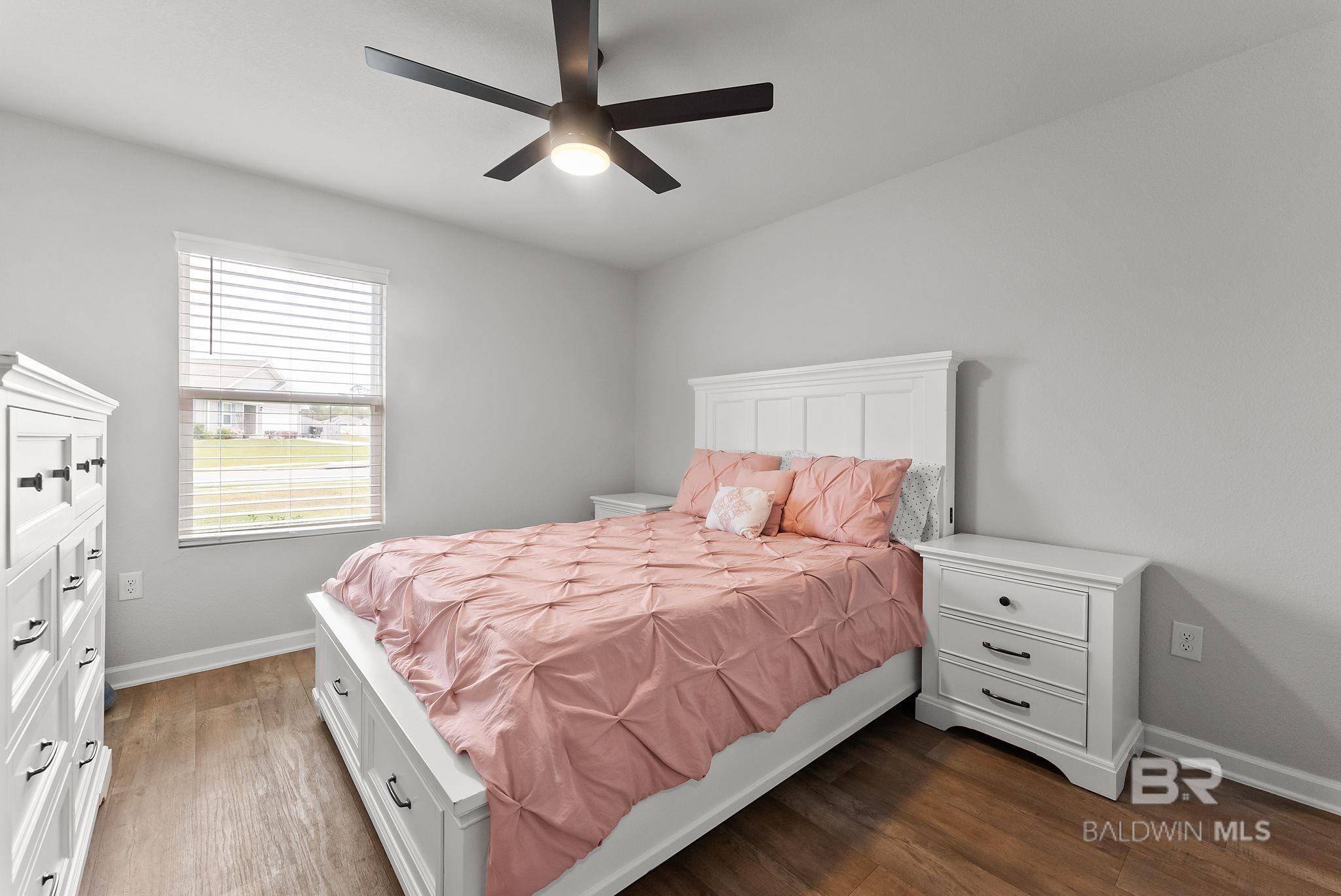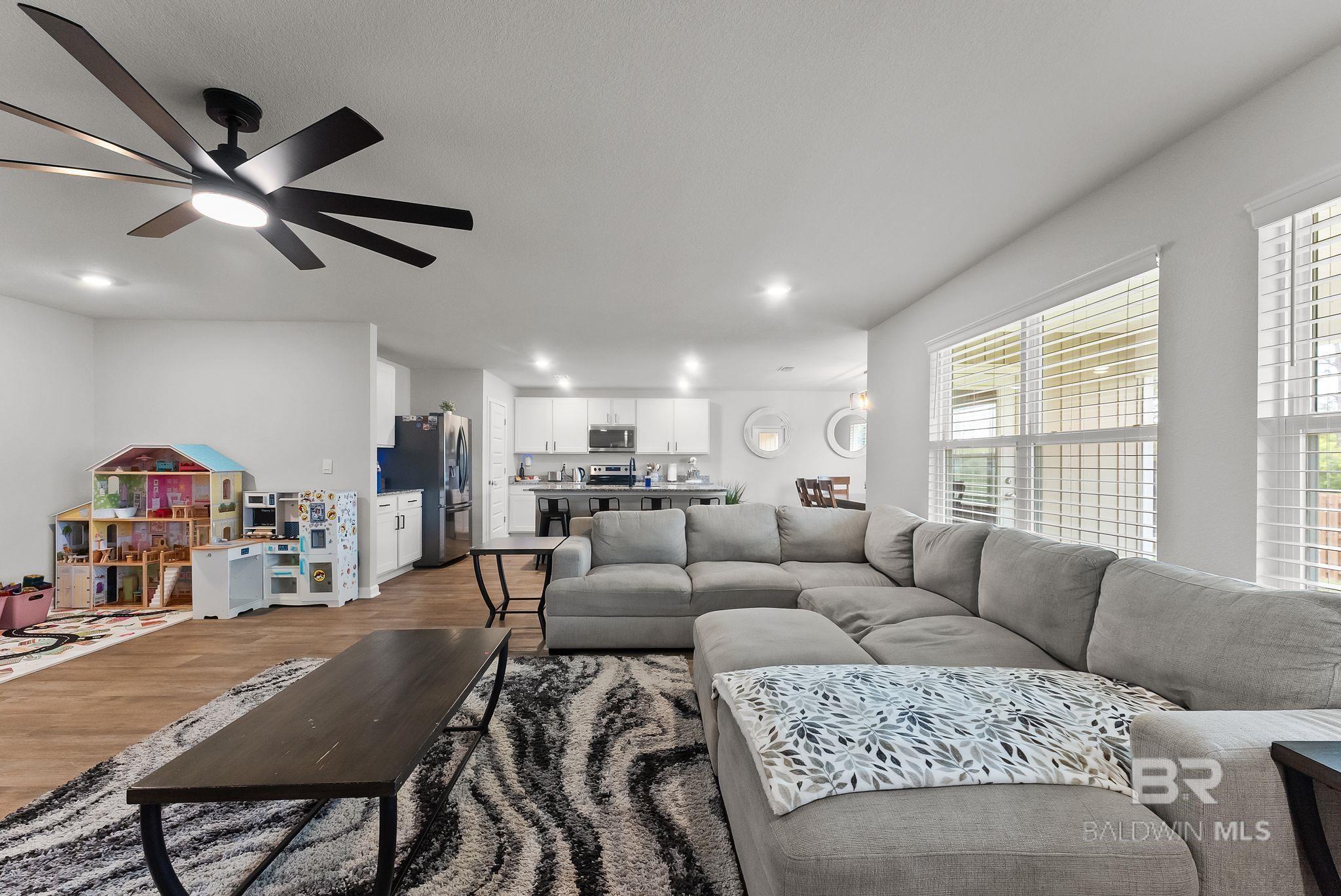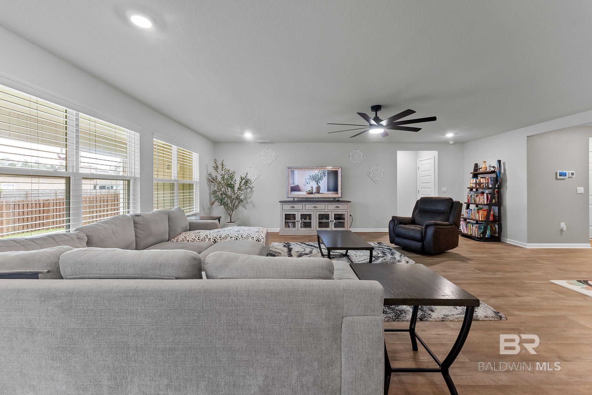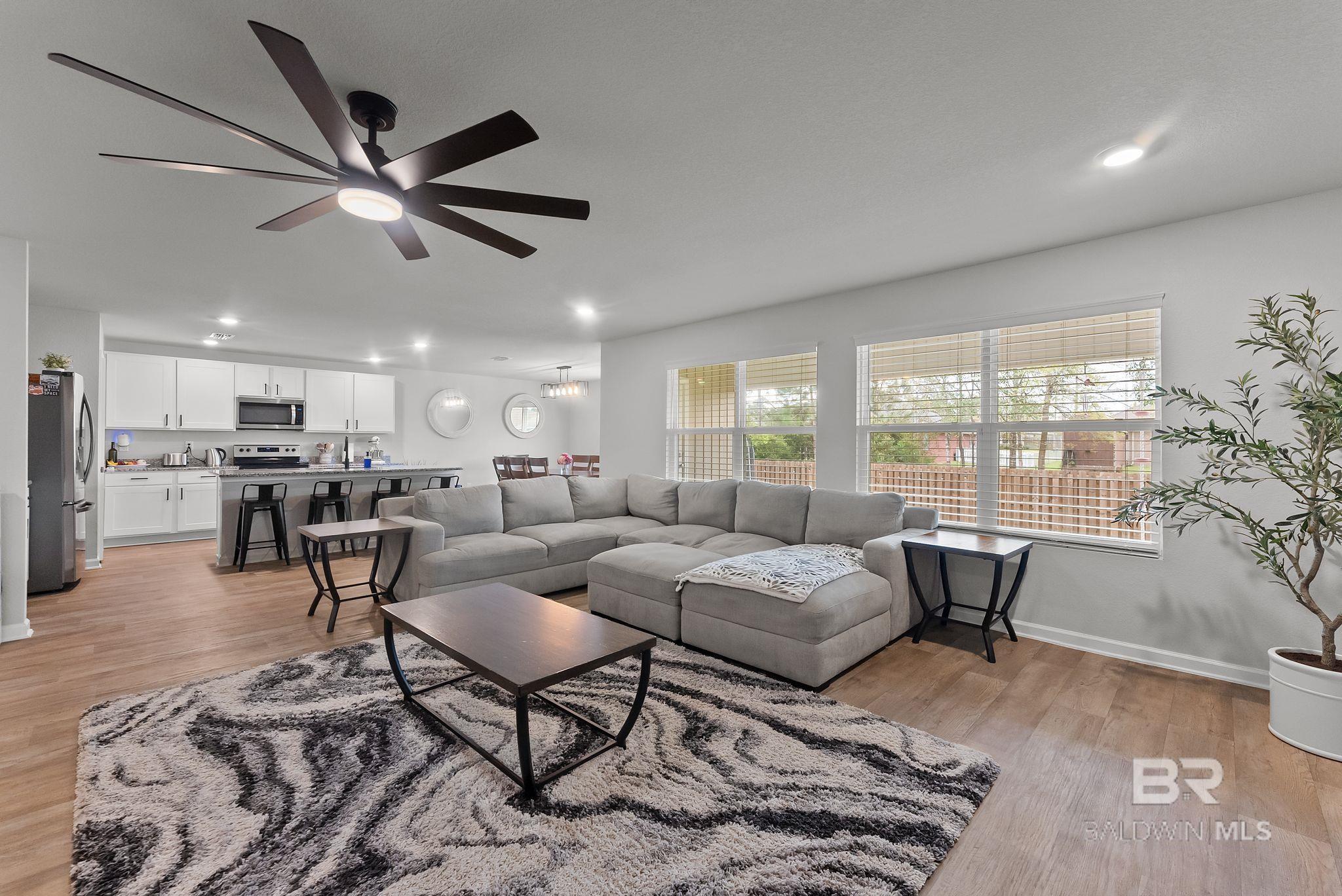 Experience the perfect blend of coastal charm in this immaculate and freshly painted 2022-built "Denton" floor plan! Located in the highly sought-after Spanish Cove community of Lillian, AL, this 4-bedroom, 2-bathroom residence is the gold standard for move-in-ready living. Built to strict Gold Fortified standards, this home offers superior storm protection and significant annual savings on homeowners insurance; a massive plus for the Gulf Coast market. The Denton layout is celebrated for its seamless flow and functional design. Step through the foyer into a sprawling open-concept great room bathed in natural light. The chef-inspired kitchen is the true centerpiece, featuring a massive granite-topped island with a breakfast bar, stainless steel appliances, and a walk-in pantry. Whether you are prepping a beach day lunch or hosting a holiday dinner, this kitchen keeps you at the heart of the action. Vinyl flooring flows through the main living areas, offering both beauty and durability for easy coastal cleanup. The split-bedroom floor plan ensures the primary suite remains a private sanctuary, complete with a spacious walk-in closet and a double-vanity ensuite. This home is fully integrated with Smart Home technology, allowing you to control your environment with ease, and features an optional security system for added peace of mind. This property comes with a fully fenced-in backyard, providing a secure space for pets, play, or evening BBQs. Best of all, all appliances stay! The Spanish Cove lifestyle is second to none; you are just 1.5 miles from the private community pier on Perdido Bay, a year-round heated pool, and a clubhouse with fitness facilities. Enjoy the best of both worlds with Alabama’s low taxes and Florida’s world-class recreation. You are a scenic 20-minute drive from the sugar-white sands of Johnson’s Beach in Perdido Key and just minutes from the Lillian boat launch. Buyer to verify all information during due diligence.
