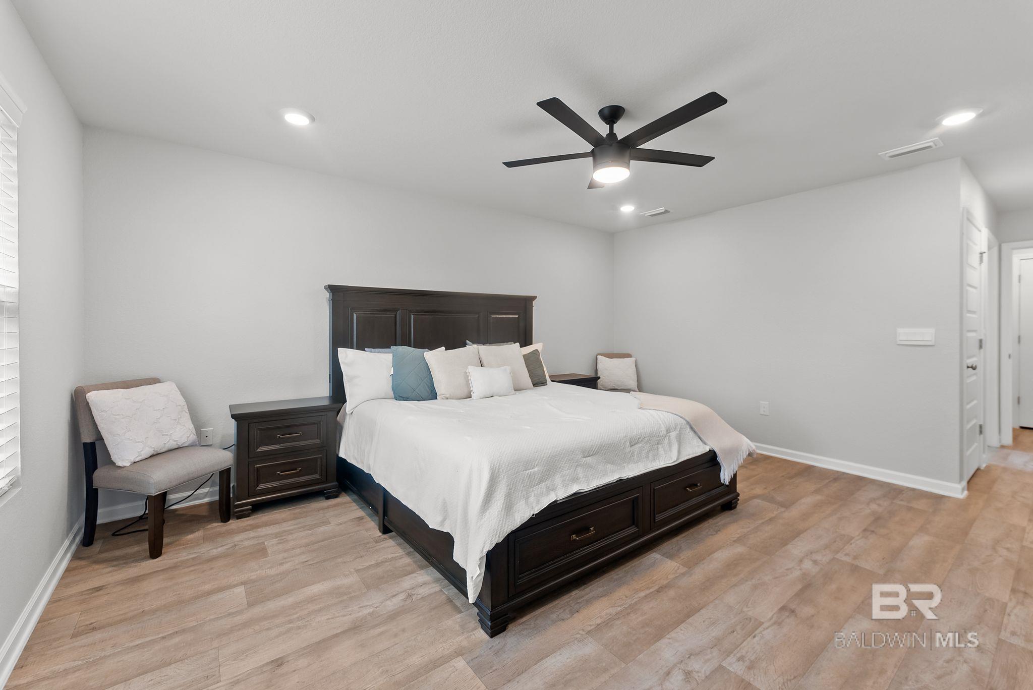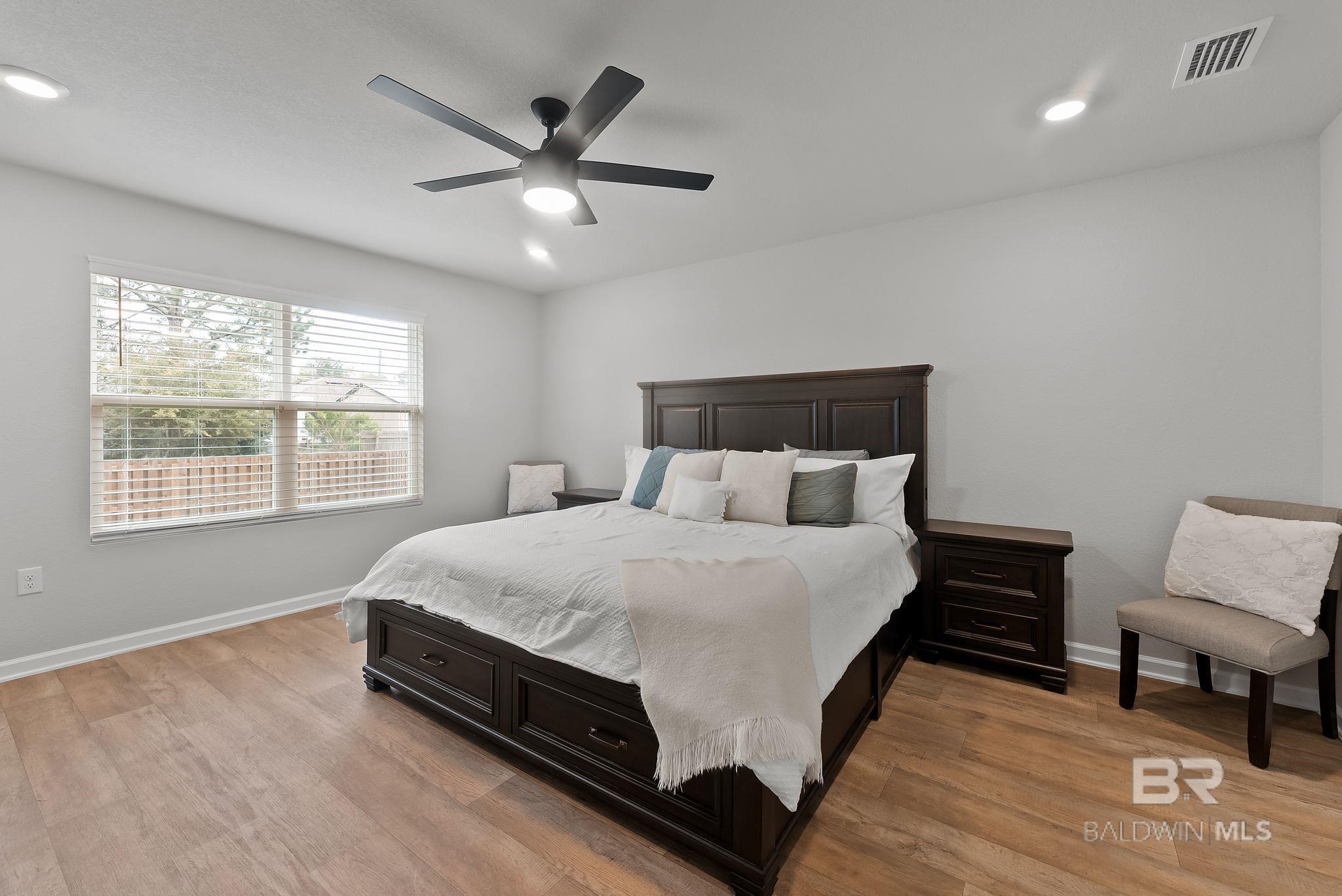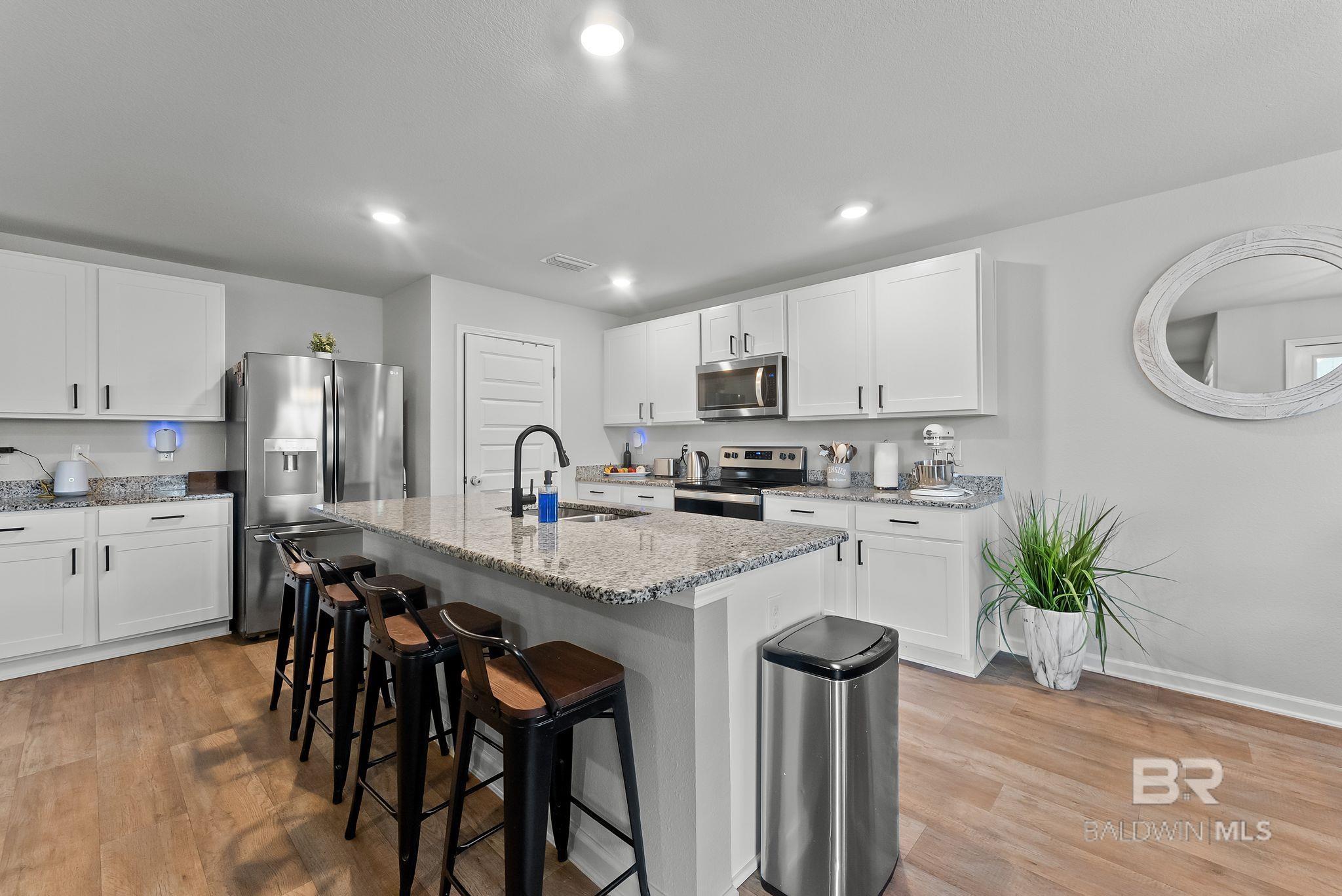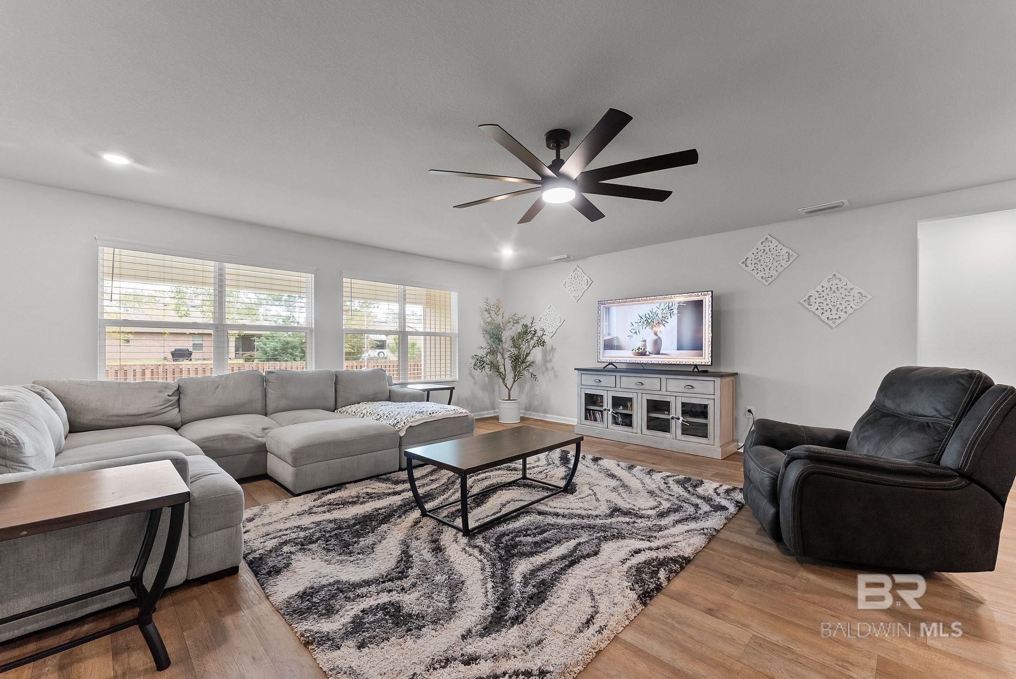 Experience the perfect blend of coastal charm in this immaculate and freshly painted 2022-built "Denton" floor plan! Located in the highly sought-after Spanish Cove community of Lillian, AL, this 4-bedroom, 2-bathroom residence is the gold standard for move-in-ready living. Built to strict Gold Fortified standards, this home offers superior storm protection and significant annual savings on homeowners insurance; a massive plus for the Gulf Coast market. The Denton layout is celebrated for its seamless flow and functional design. Step through the foyer into a sprawling open-concept great room bathed in natural light. The chef-inspired kitchen is the true centerpiece, featuring a massive granite-topped island with a breakfast bar, stainless steel appliances, and a walk-in pantry. Whether you are prepping a beach day lunch or hosting a holiday dinner, this kitchen keeps you at the heart of the action. Vinyl flooring flows through the main living areas, offering both beauty and durability for easy coastal cleanup. The split-bedroom floor plan ensures the primary suite remains a private sanctuary, complete with a spacious walk-in closet and a double-vanity ensuite. This home is fully integrated with Smart Home technology, allowing you to control your environment with ease, and features an optional security system for added peace of mind. This property comes with a fully fenced-in backyard, providing a secure space for pets, play, or evening BBQs. Best of all, all appliances stay! The Spanish Cove lifestyle is second to none; you are just 1.5 miles from the private community pier on Perdido Bay, a year-round heated pool, and a clubhouse with fitness facilities. Enjoy the best of both worlds with Alabama’s low taxes and Florida’s world-class recreation. You are a scenic 20-minute drive from the sugar-white sands of Johnson’s Beach in Perdido Key and just minutes from the Lillian boat launch. Buyer to verify all information during due diligence.