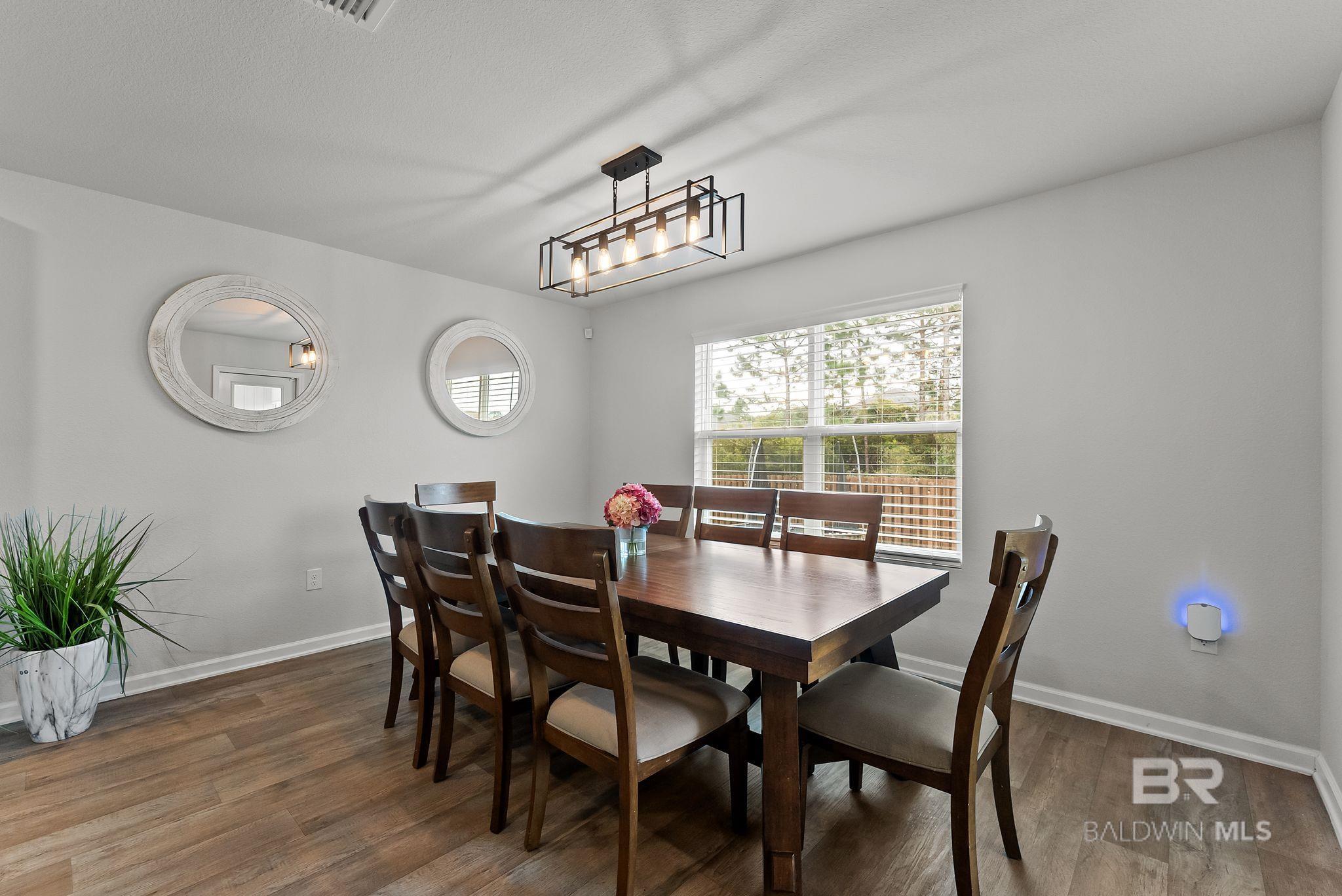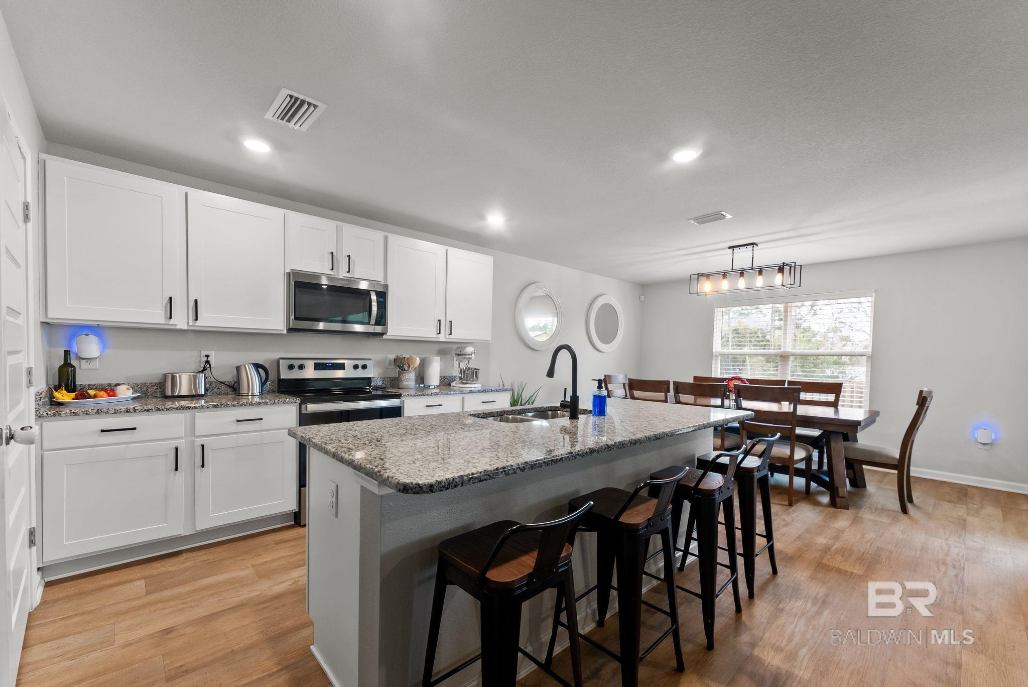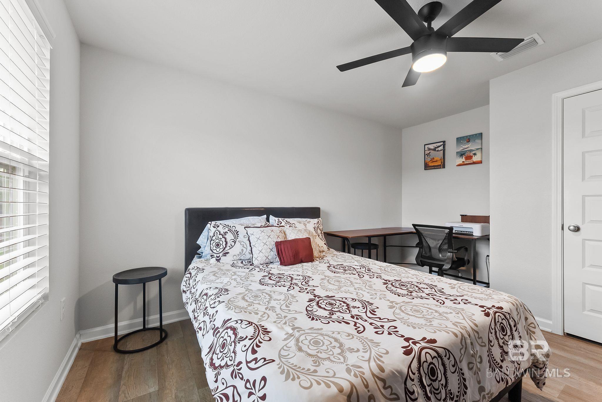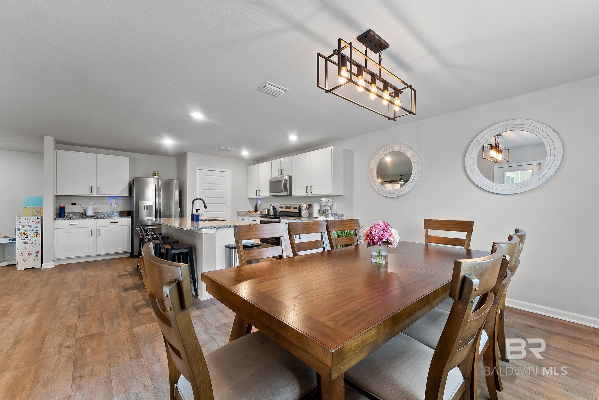 Experience the perfect blend of coastal charm in this immaculate and freshly painted 2022-built "Denton" floor plan! Located in the highly sought-after Spanish Cove community of Lillian, AL, this 4-bedroom, 2-bathroom residence is the gold standard for move-in-ready living. Built to strict Gold Fortified standards, this home offers superior storm protection and significant annual savings on homeowners insurance; a massive plus for the Gulf Coast market. The Denton layout is celebrated for its seamless flow and functional design. Step through the foyer into a sprawling open-concept great room bathed in natural light. The chef-inspired kitchen is the true centerpiece, featuring a massive granite-topped island with a breakfast bar, stainless steel appliances, and a walk-in pantry. Whether you are prepping a beach day lunch or hosting a holiday dinner, this kitchen keeps you at the heart of the action. Vinyl flooring flows through the main living areas, offering both beauty and durability for easy coastal cleanup. The split-bedroom floor plan ensures the primary suite remains a private sanctuary, complete with a spacious walk-in closet and a double-vanity ensuite. This home is fully integrated with Smart Home technology, allowing you to control your environment with ease, and features an optional security system for added peace of mind. This property comes with a fully fenced-in backyard, providing a secure space for pets, play, or evening BBQs. Best of all, all appliances stay! The Spanish Cove lifestyle is second to none; you are just 1.5 miles from the private community pier on Perdido Bay, a year-round heated pool, and a clubhouse with fitness facilities. Enjoy the best of both worlds with Alabama’s low taxes and Florida’s world-class recreation. You are a scenic 20-minute drive from the sugar-white sands of Johnson’s Beach in Perdido Key and just minutes from the Lillian boat launch. Buyer to verify all information during due diligence.