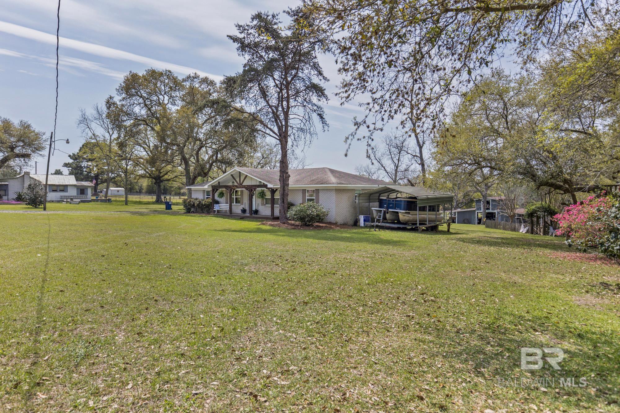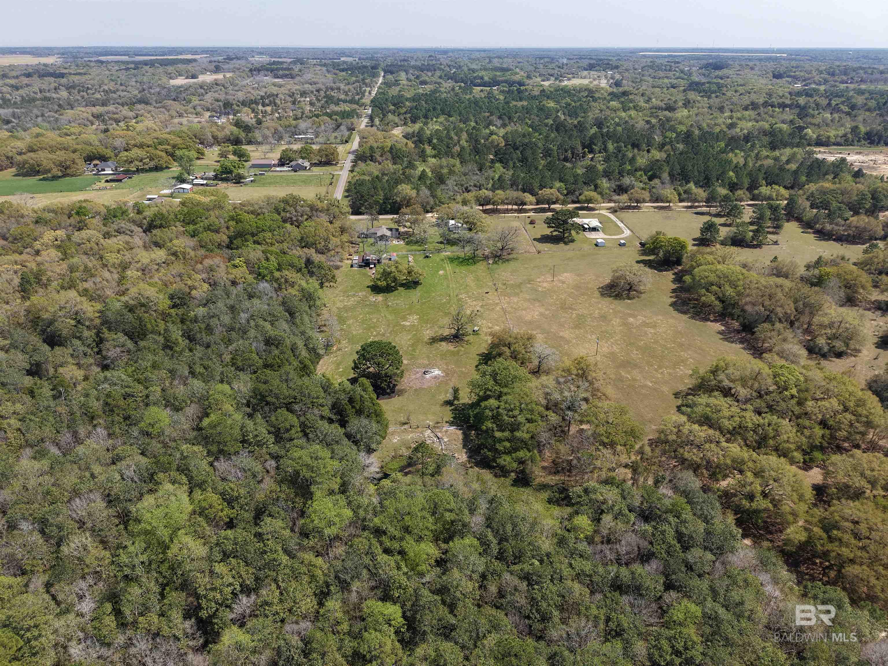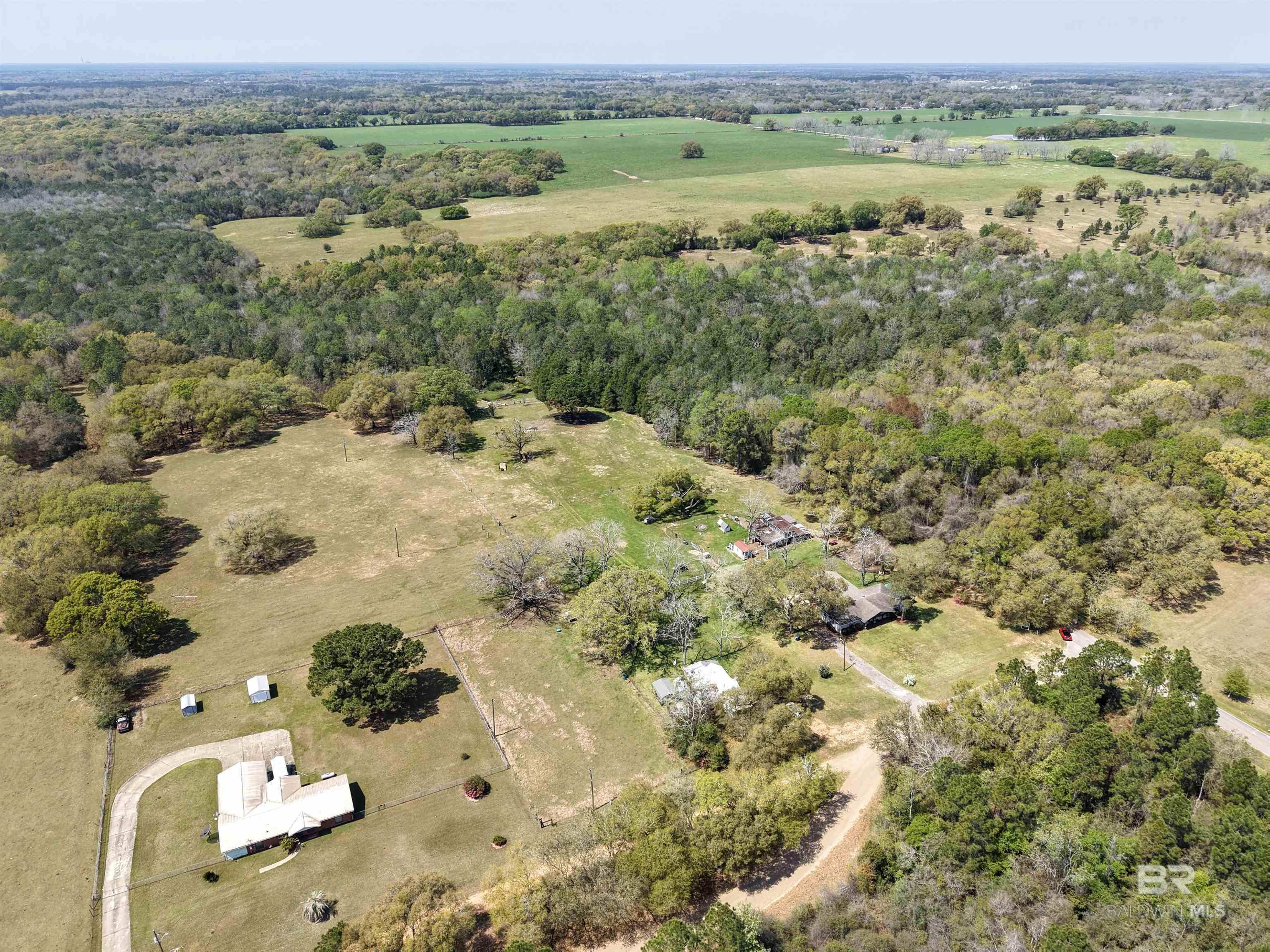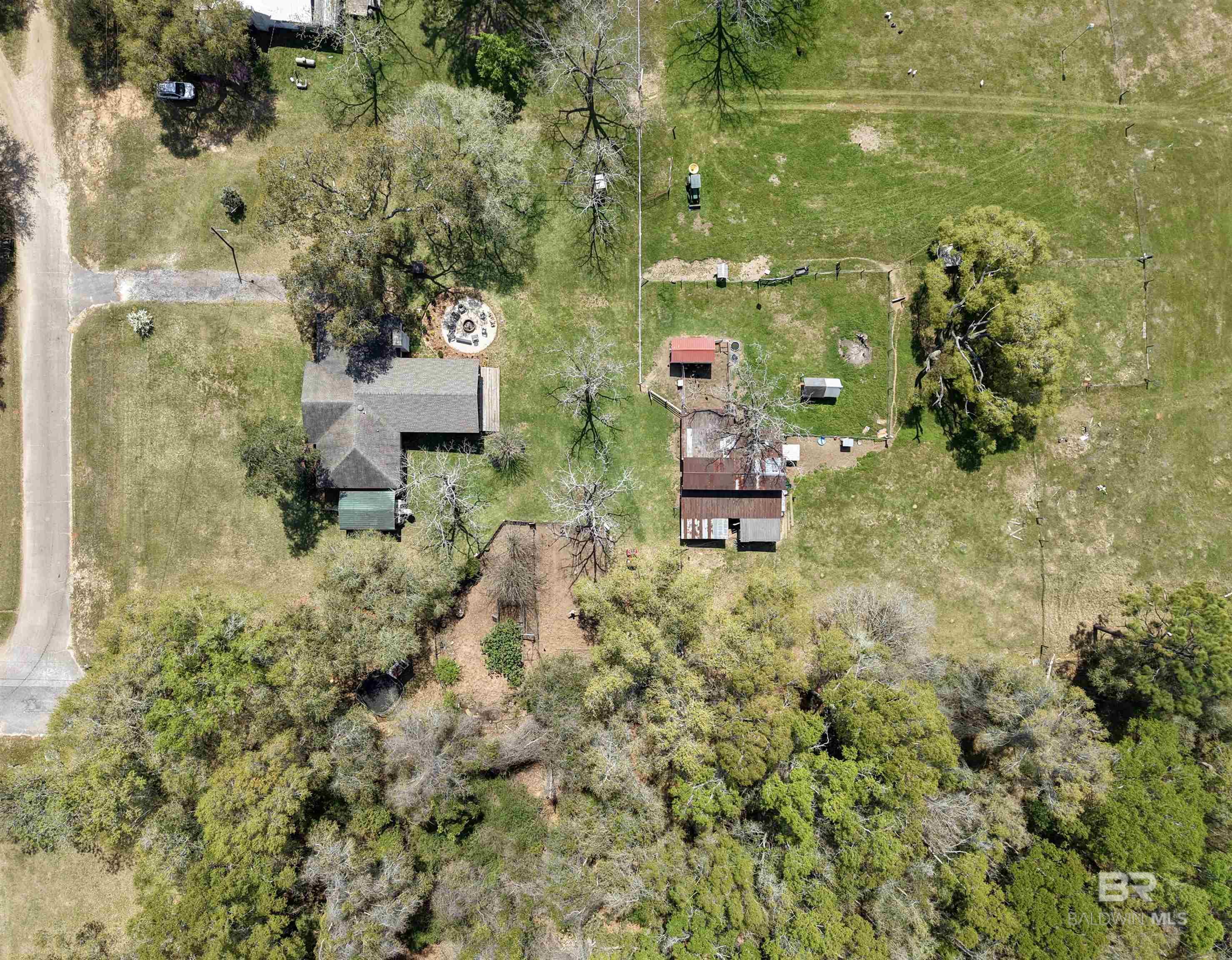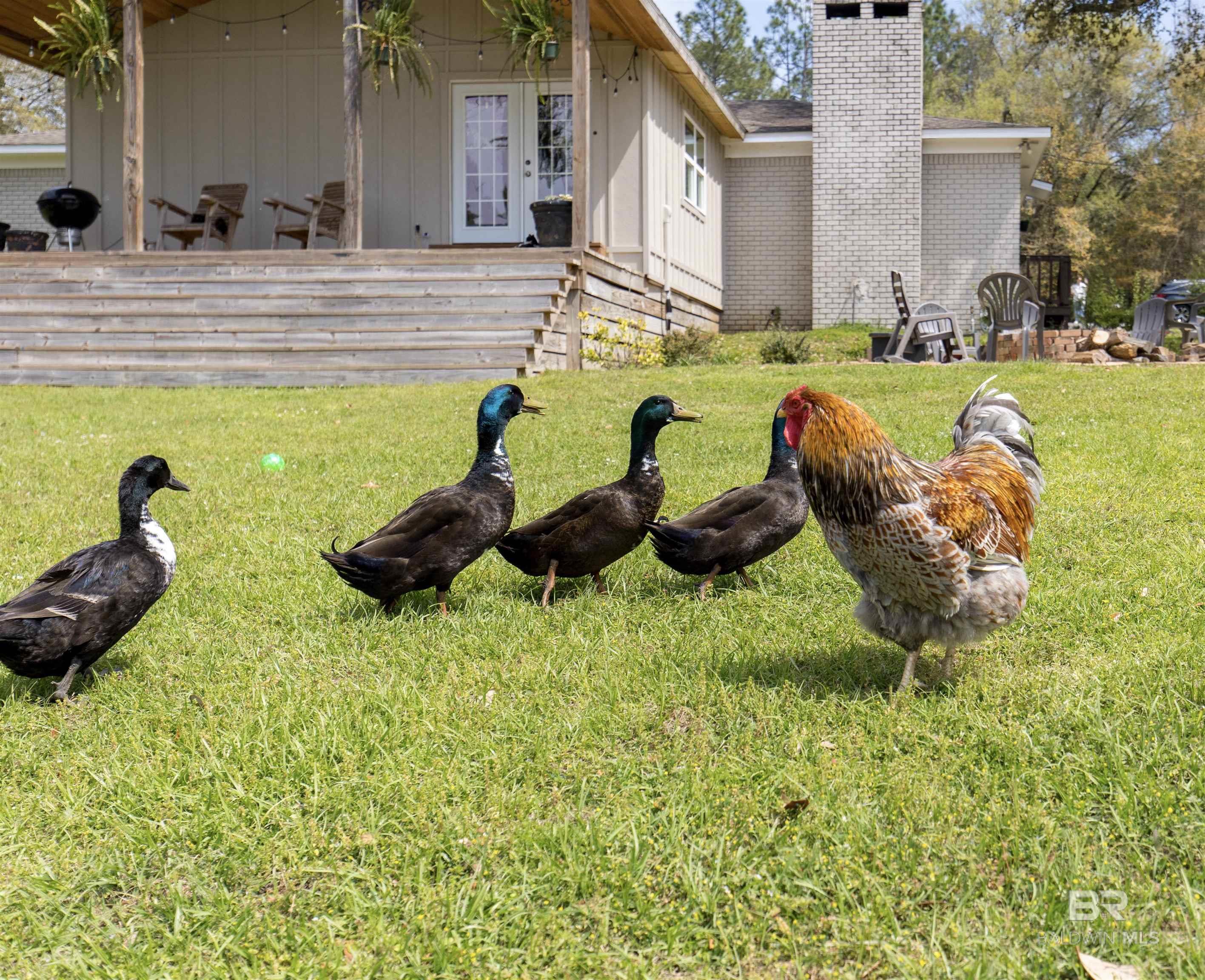 Welcome to this beautiful farmhouse-style ranch home in Theodore, AL, just minutes from I-10. This property features 6 acres of land, a huge, covered back deck, a flowing creek with some areas deep enough to swim, barn, chicken coop, storage shed, and a covered area for a boat or car. Inside, you'll find 4 bedrooms and 3 full baths, with a split bedroom layout and a sunroom off the primary suite. The open-concept living, dining, and kitchen area includes a spacious laundry room with office space off the living room, while the kitchen is equipped with an island, gas range, and pantry. Enjoy evenings on the back deck, overlooking the stunning oak trees and expansive acreage. The farm animals—pigs, goats, hens, a rooster—are optional with purchase. Per seller recent updates include: (roof 2019) windows (2023). Buyer or buyer's agent to verify all information deemed important to the buyer. Buyer to verify all information during due diligence.