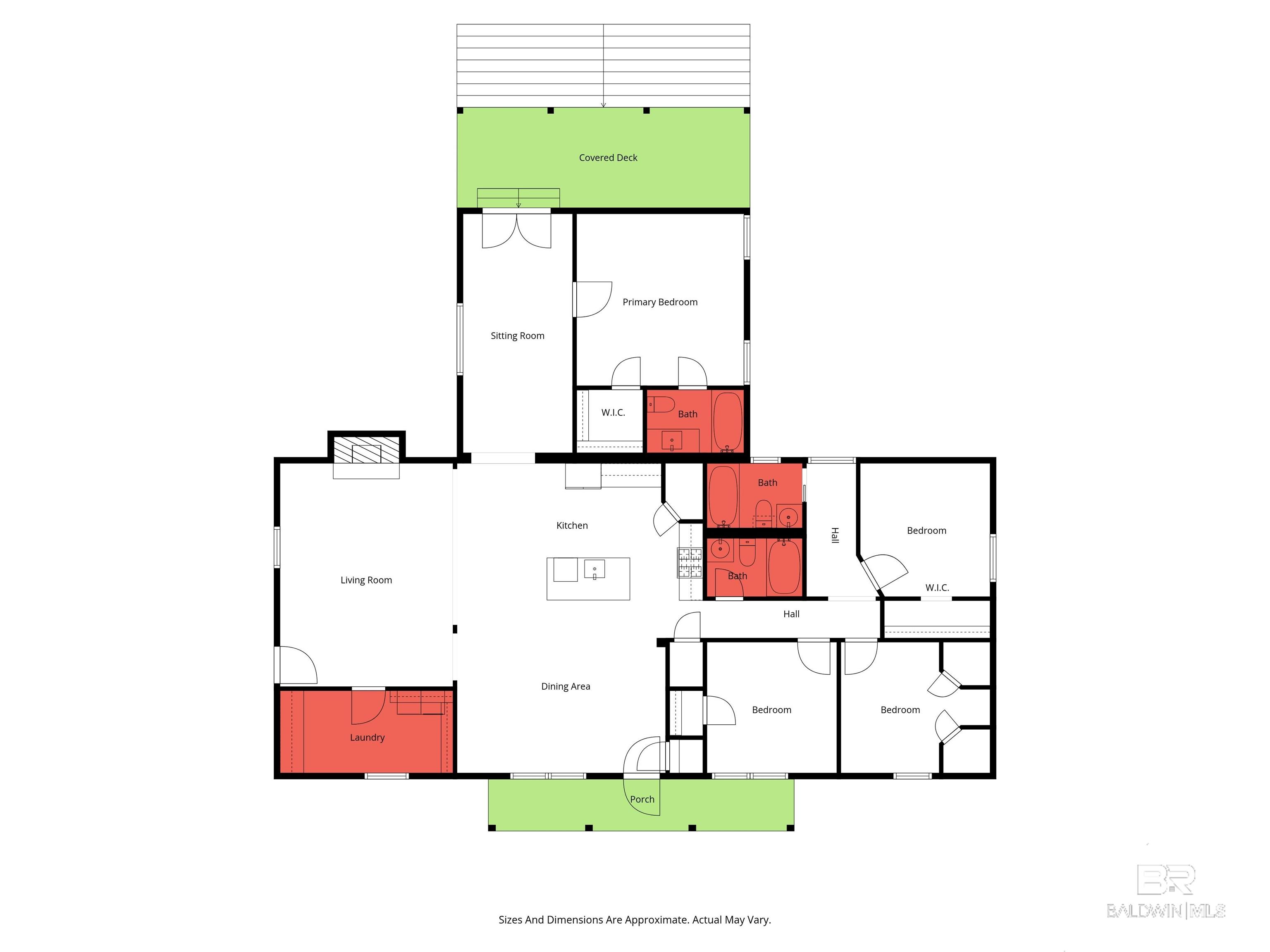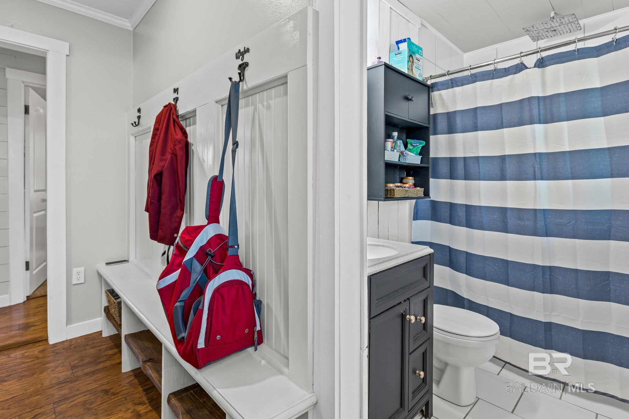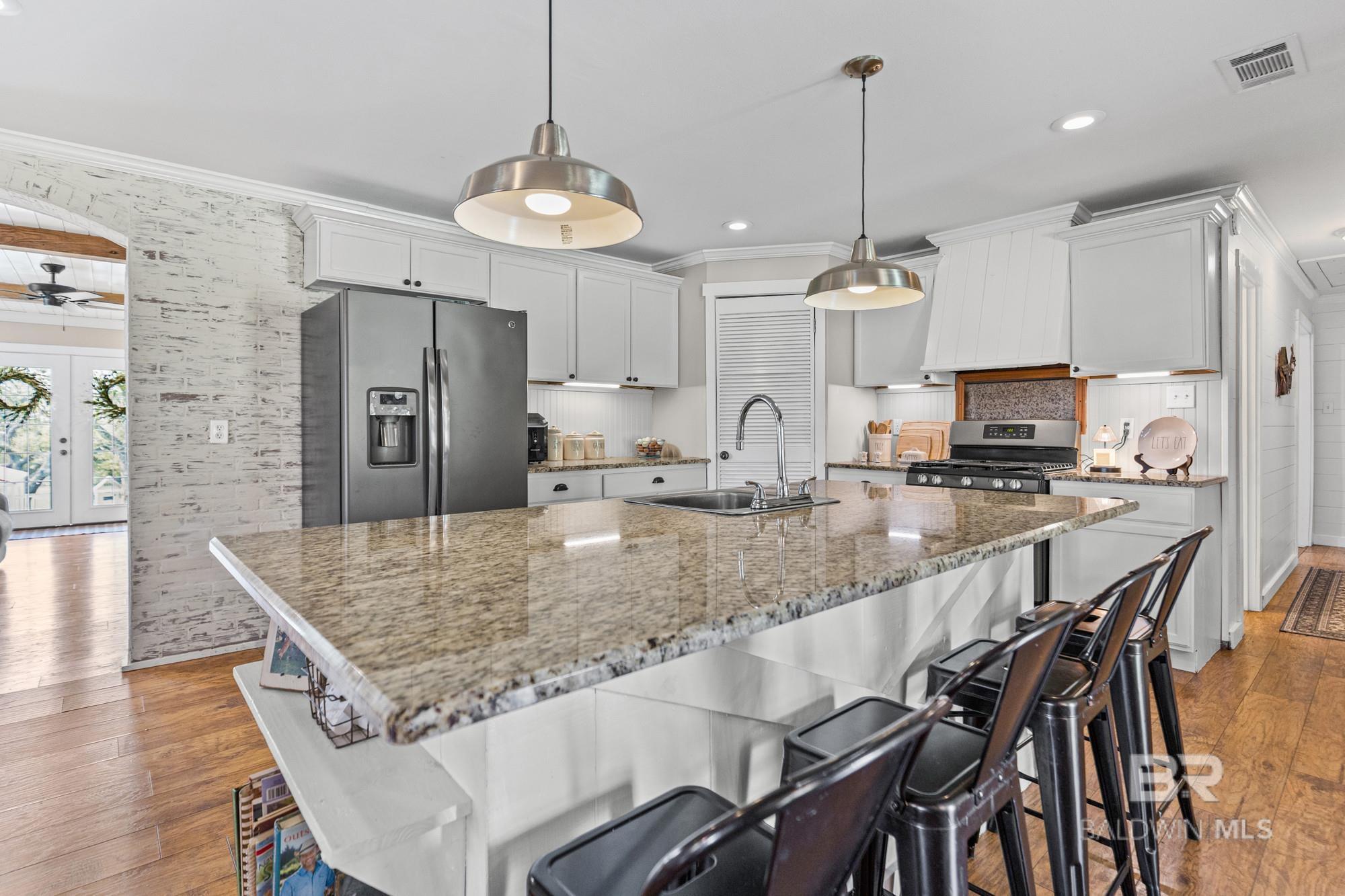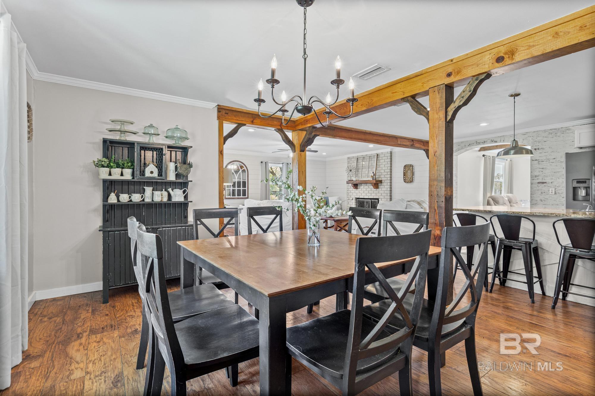 Welcome to this beautiful farmhouse-style ranch home in Theodore, AL, just minutes from I-10. This property features 6 acres of land, a huge, covered back deck, a flowing creek with some areas deep enough to swim, barn, chicken coop, storage shed, and a covered area for a boat or car. Inside, you'll find 4 bedrooms and 3 full baths, with a split bedroom layout and a sunroom off the primary suite. The open-concept living, dining, and kitchen area includes a spacious laundry room with office space off the living room, while the kitchen is equipped with an island, gas range, and pantry. Enjoy evenings on the back deck, overlooking the stunning oak trees and expansive acreage. The farm animals—pigs, goats, hens, a rooster—are optional with purchase. Per seller recent updates include: (roof 2019) windows (2023). Buyer or buyer's agent to verify all information deemed important to the buyer. Buyer to verify all information during due diligence.