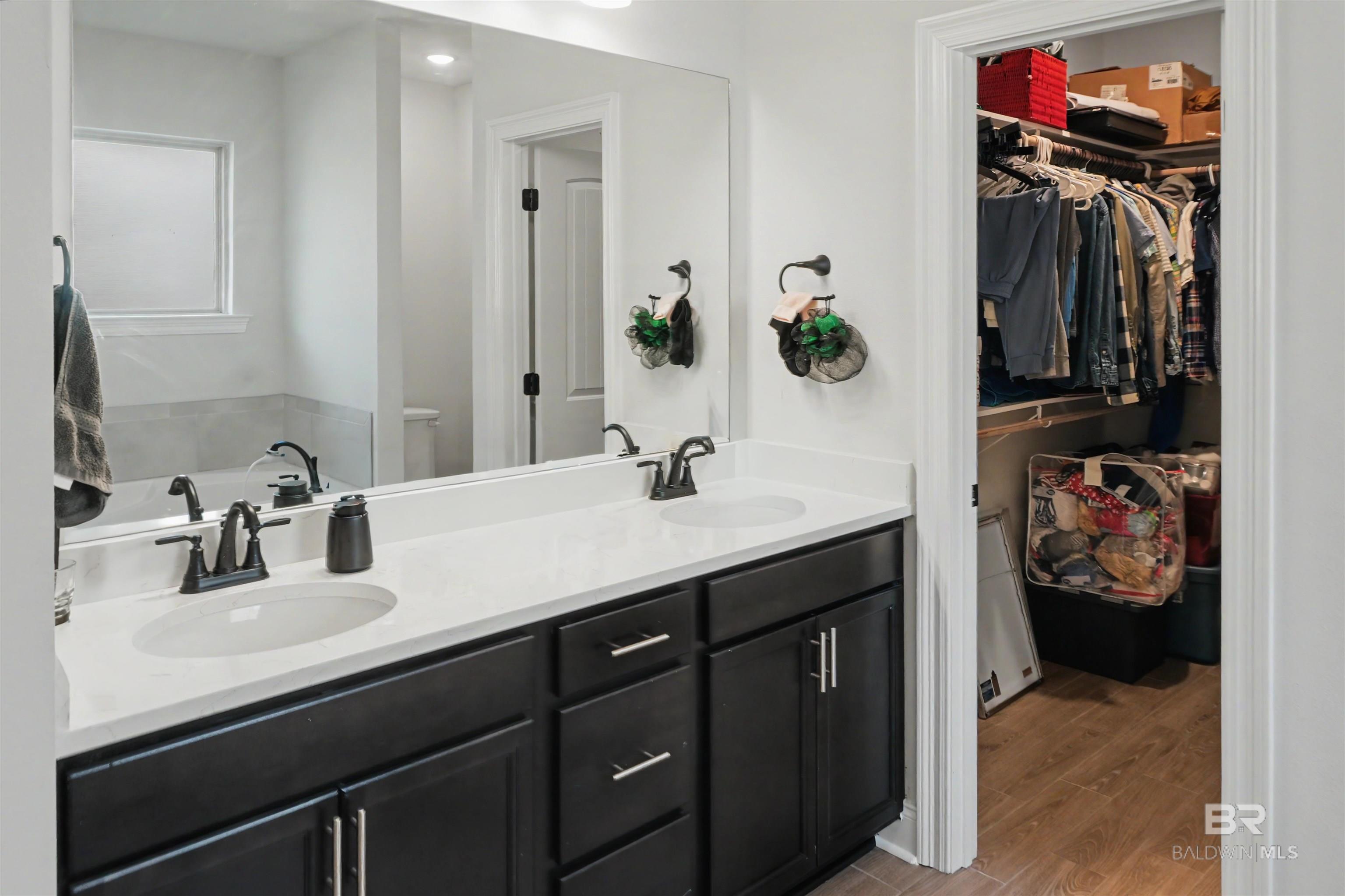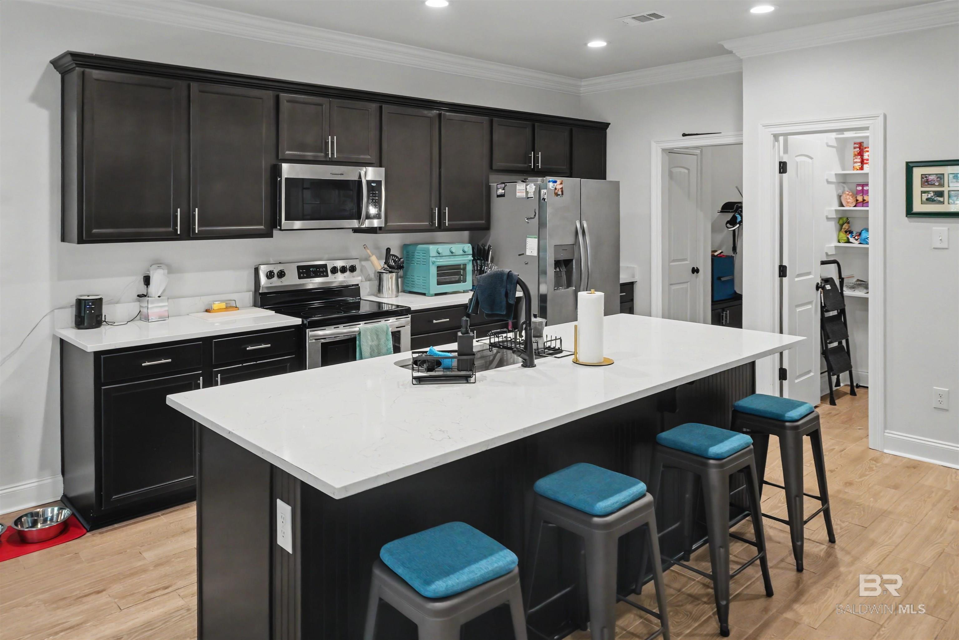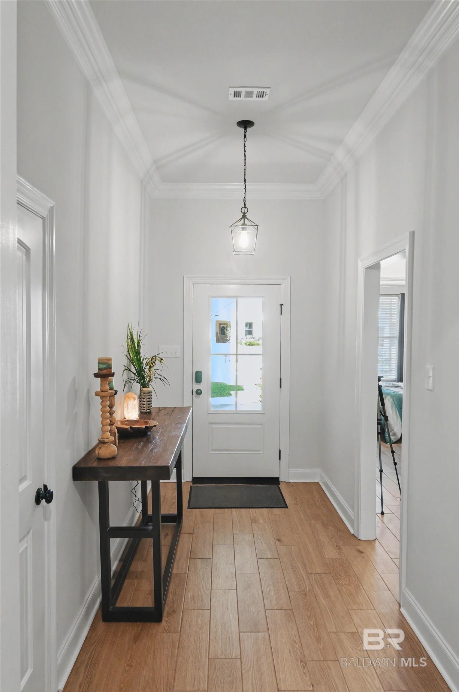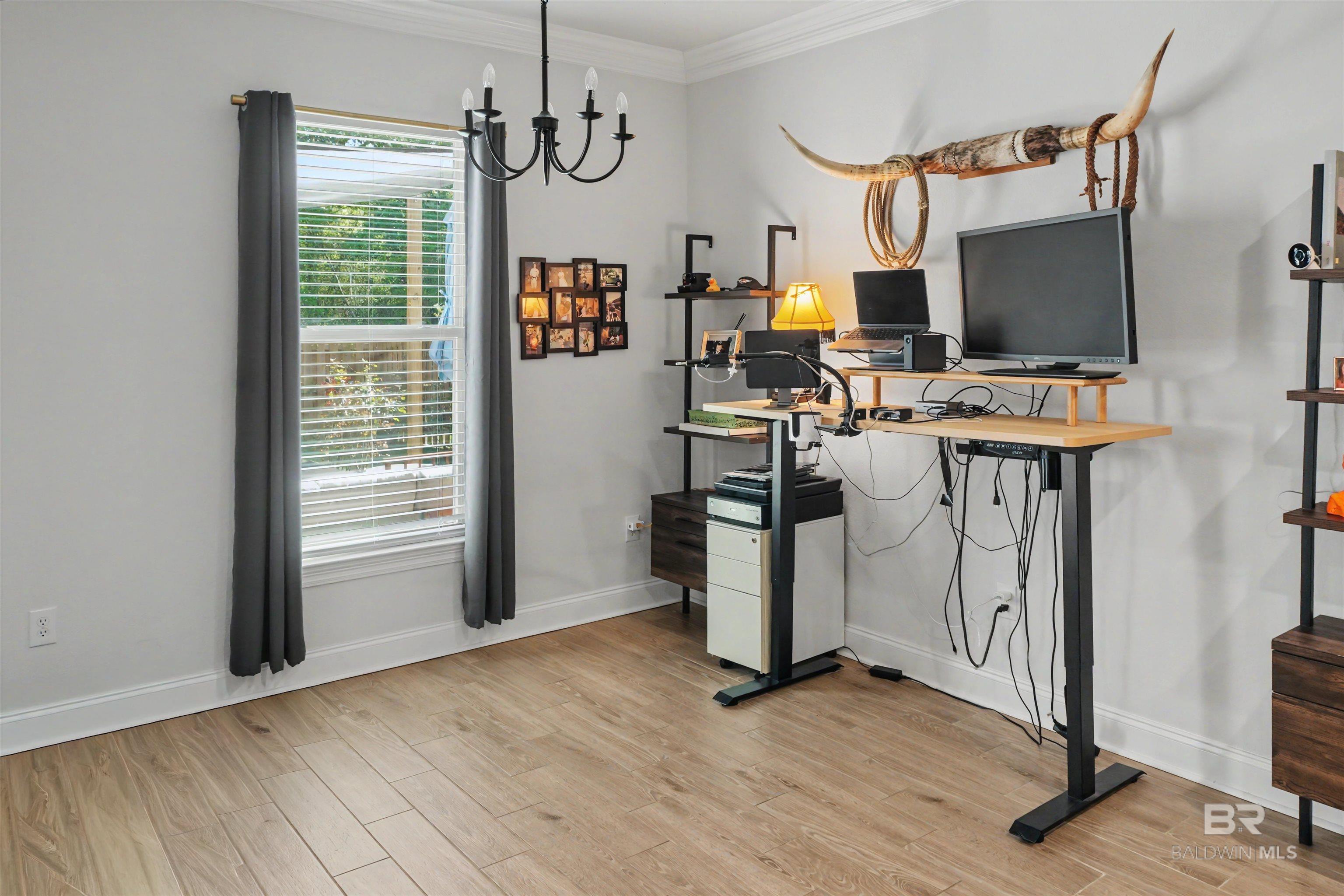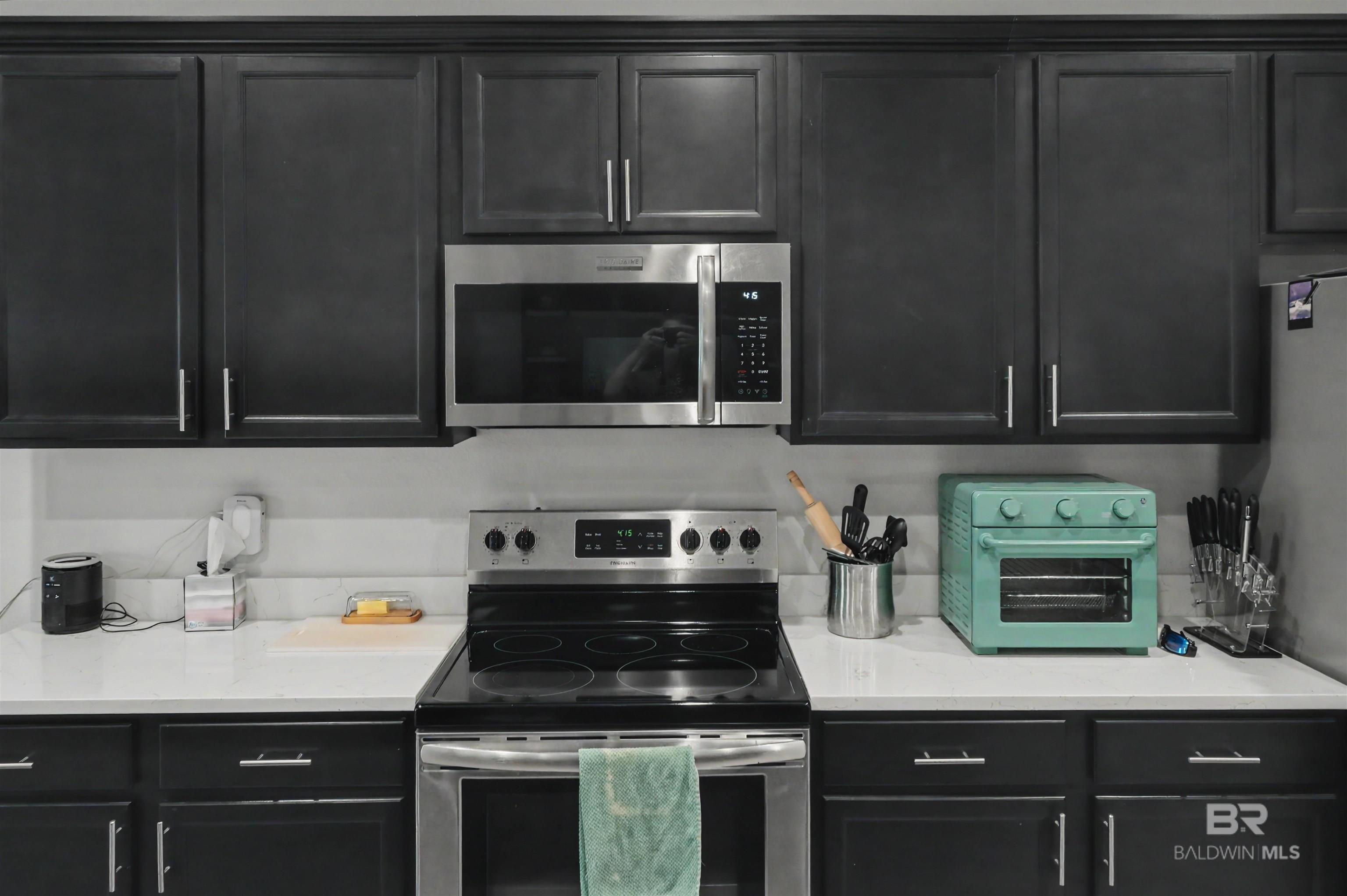 GOLD FORTIFIED 3BR/2BA home in Gulf Shores with premium upgrades throughout. Exterior features vibrant landscaping, gutters, LED coach lights, architectural 30-yr shingles, shadow-box fenced backyard, and an extended covered patio overlooking a private wood line. Inside, enjoy an open floor plan with custom ceramic tile flooring throughout, crown molding, quartz countertops, stainless steel appliances, a large kitchen island with undermount sink, and a walk-in pantry with wooden shelving. Primary suite includes a garden tub, separate walk-in shower, double vanity, and a spacious walk-in closet with wood shelving. Home also offers Low-E double-pane windows, energy-efficient appliances, and a reinforced insulated garage door. Zoned for Gulf Shores City Schools and just minutes to beaches, shopping, dining, and entertainment. Buyer to verify all information during due diligence.